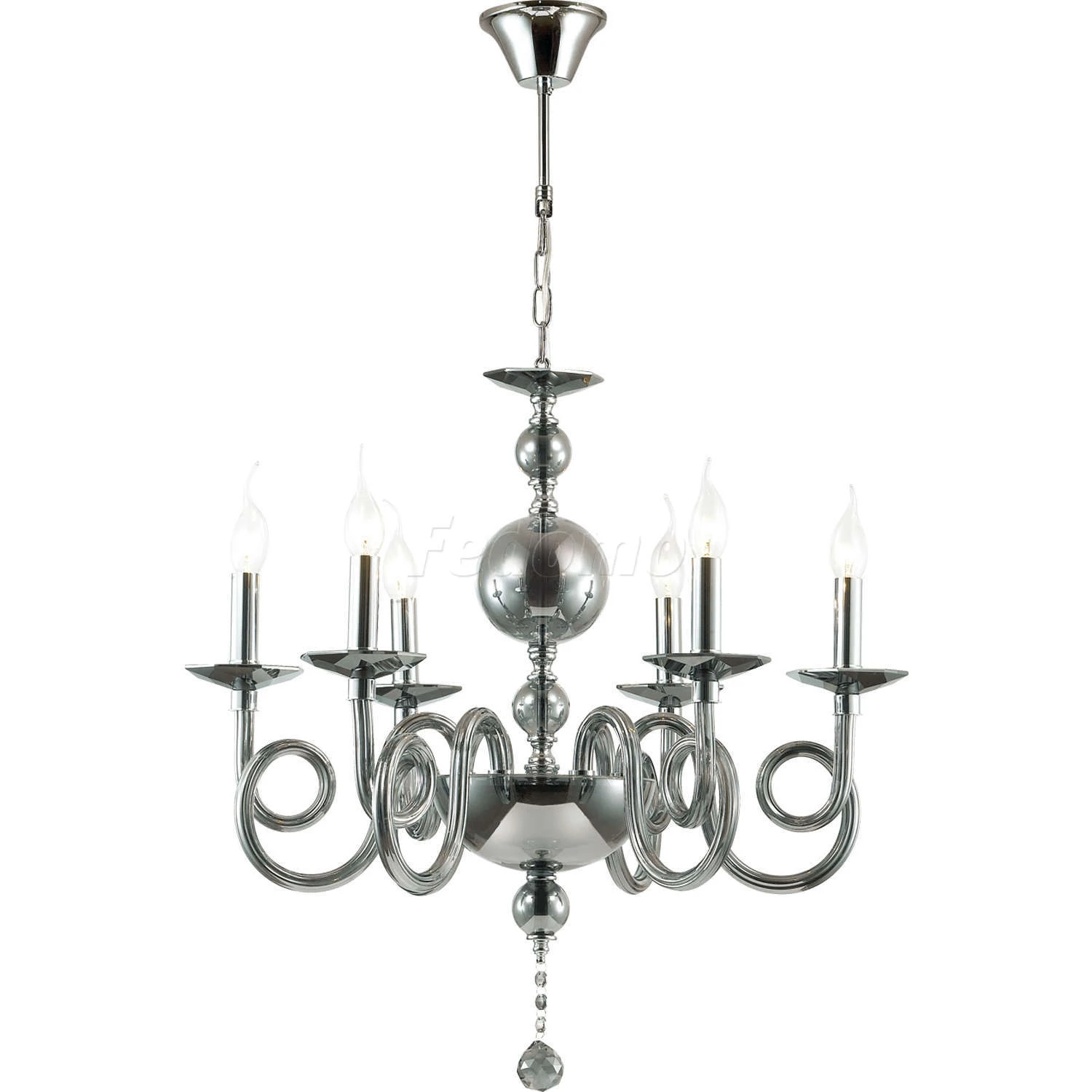Материалы исполнения арматура, декор: металл, стекло, хрусталь. Цвет арматуры хром. Декор подвеска, материал декора хрусталь, цвет серый. Оригинальный дизайн светильника Iria сочетает в себе элементы классики и модерна. Светильник полностью выполнен из стекла в красивом дымчатом цвете и металлического основания цвета хром, эффектно дополняющими друг друга. Открытые источники света создадут яркое освещение и осветят максимальный участок помещения. А завораживающие витиеватые формы стекла создадут интересный визуальный эффект. Наименование 4601/6 ODL19 263 хром/дымчатый/хрусталь Люстра E14 6*40W IRIA.
