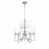 Люстра подвесная каскадная 4630 из серии Loewe от компании Mantra регулируется по высоте и устанавливается на металлический крюк. Современная люстра прекрасно подойдет в качестве источника основного света для гостиной, прихожей и коридора, кафе, кабинета, оформленных в стиле модерн. Основной цвет модели - белый, материал арматуры - металл. Люстра имеет 9 абажуров со свечением вверх, материал изготовления - стекло, органза. Модель оснащена цоколем E14, имеет 9 лампочек с общей мощностью 117W и напряжением 220V. Светильник поддерживает подключение диммера. Габариты: диаметр - 750 мм. Лучшая цена и условия доставки на Mantra 4630 в интернет-магазине Fedomo.ru.
