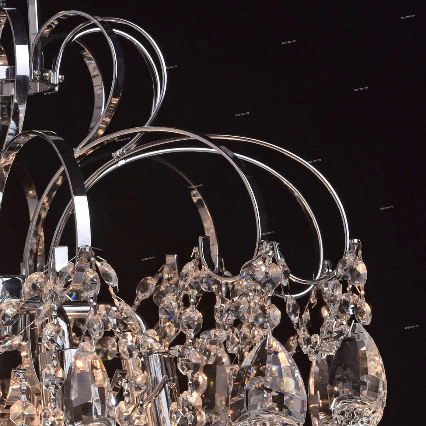 Люстра потолочная хрустальная 464017106 из серии Бриз от компании De City устанавливается на монтажную пластину. Классическая люстра украшена хрусталем и прекрасно подойдет в качестве источника основного света для прихожей и коридора, кафе, кухни, оформленных в стиле арт-деко. Основной цвет модели - хром, материал арматуры - металл. Люстра имеет 1 декоративный плафон. Модель оснащена цоколем E14, имеет 6 лампочек с общей мощностью 360W и напряжением 220V. Светильник поддерживает подключение диммера. Габариты: диаметр - 500 мм. Лучшая цена и условия доставки на De City 464017106 в интернет-магазине Fedomo.ru.