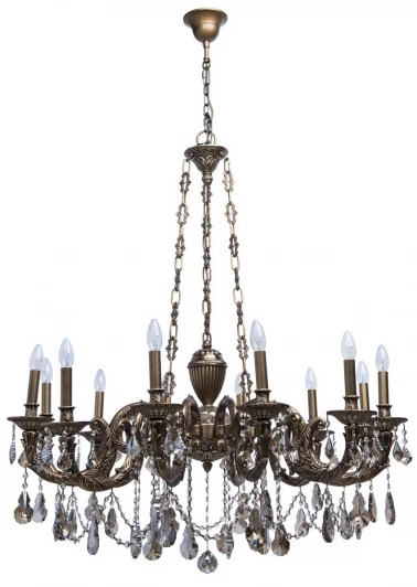 Люстра подвесная 491010712 из серии Габриэль от компании Chiaro устанавливается на металлический крюк. Классическая люстра в виде подсвечника украшена хрусталем и прекрасно подойдет в качестве источника основного света для гостиной, холла, оформленных в стиле арт-деко, замковый. Основной цвет модели - бронза, материал арматуры - металл. Модель оснащена цоколем E14 (12хE14), имеет 12 лампочек с общей мощностью 720W и напряжением 220V. Светильник поддерживает подключение диммера. Габариты: высота - 2400 мм, диаметр - 1000 мм. Лампочки в комплект не входят. Лучшая цена и условия доставки на Chiaro 491010712 в интернет-магазине Fedomo.ru.