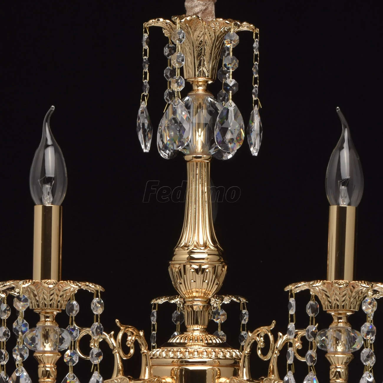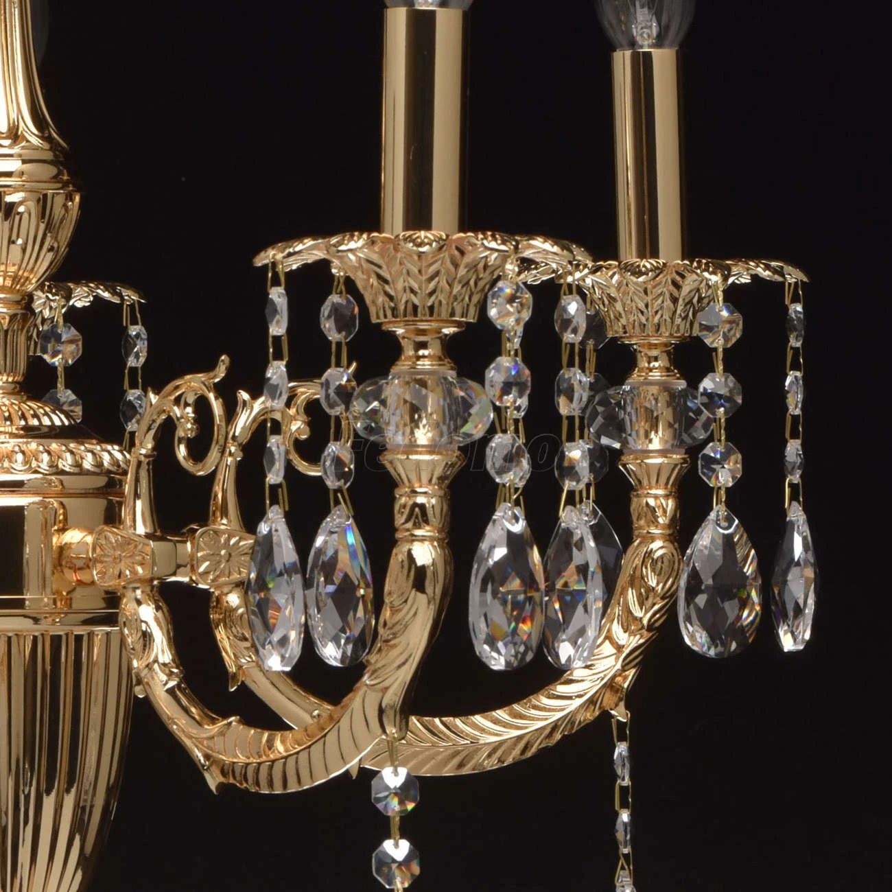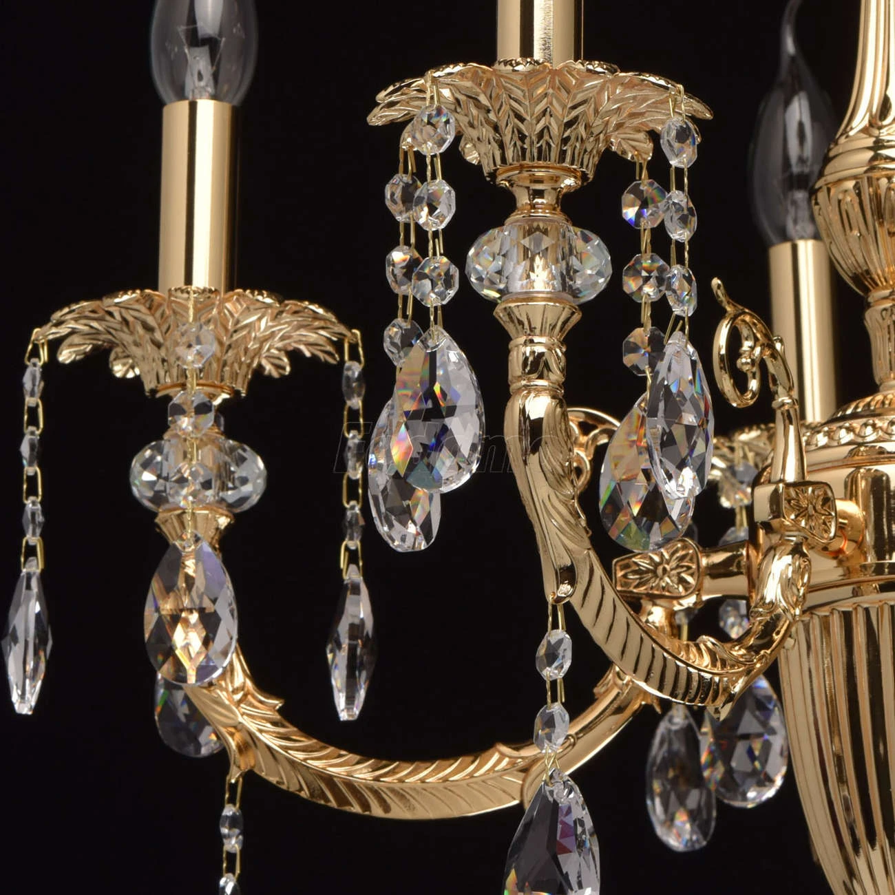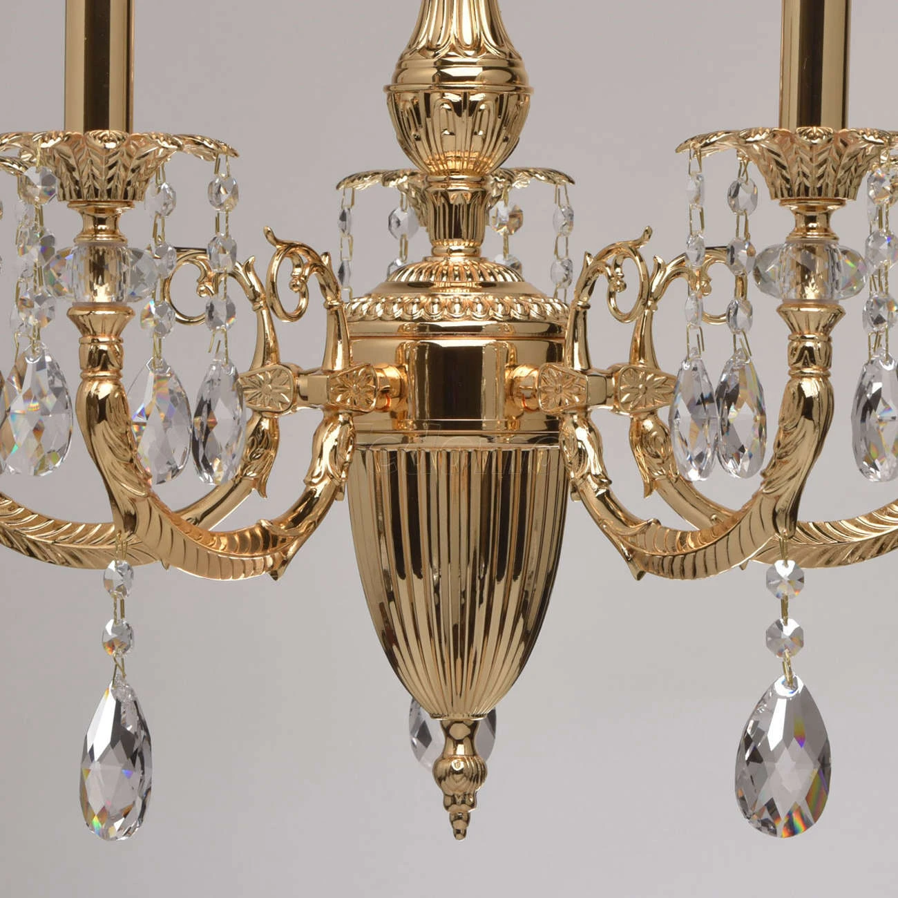 Люстра из коллекции «Габриэль» - воплощение роскоши и изысканной красоты. Утонченное металлическое основание, выполненное из благородной латуни, гальванизировано в цвет золота оригинального оттенка. Грациозные витые рожки подчеркнуты изящными розетками, б