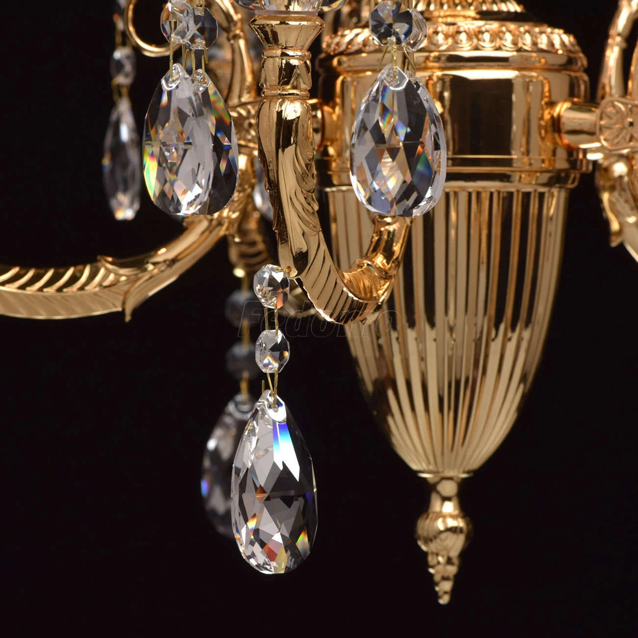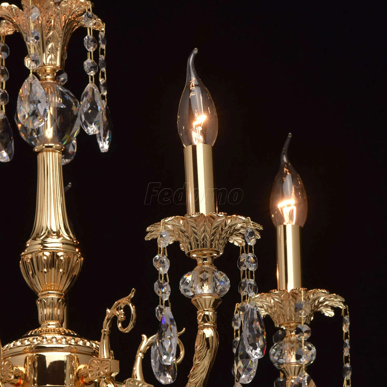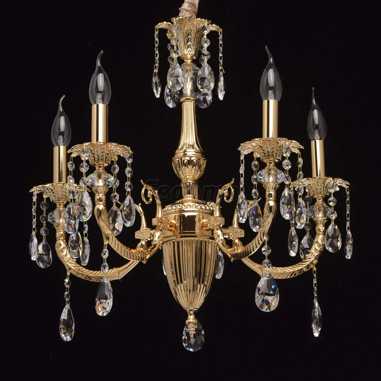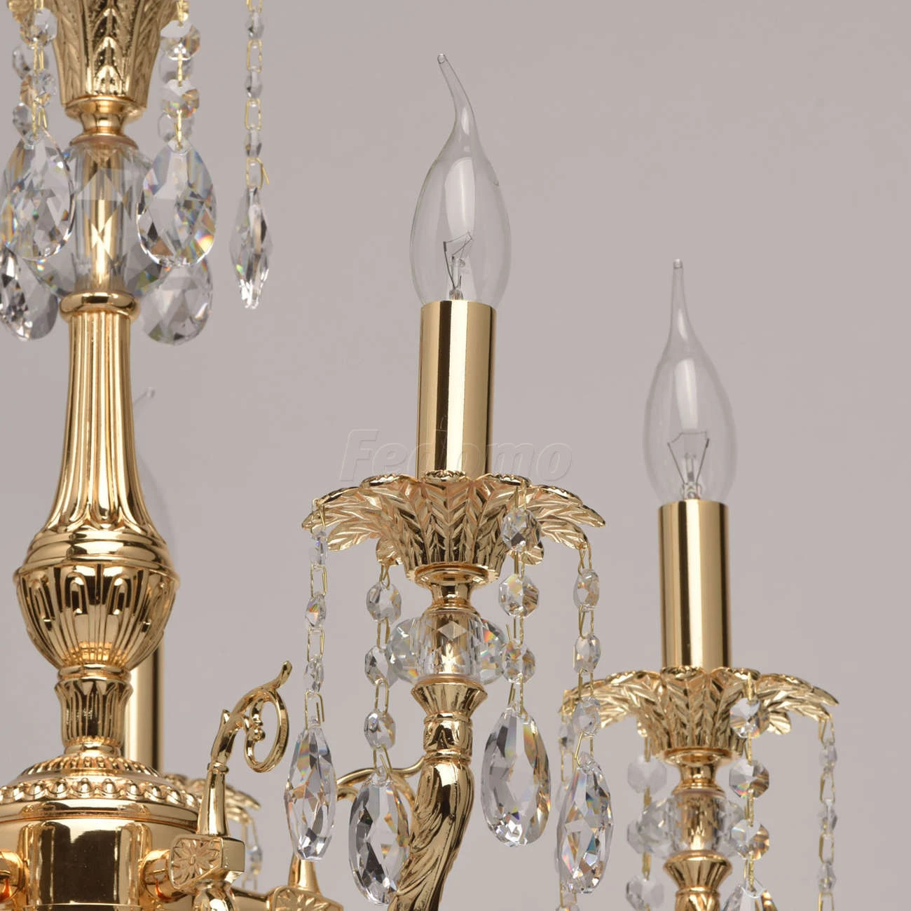 Люстра из коллекции «Габриэль» - воплощение роскоши и изысканной красоты. Утонченное металлическое основание, выполненное из благородной латуни, гальванизировано в цвет золота оригинального оттенка. Грациозные витые рожки подчеркнуты изящными розетками, б