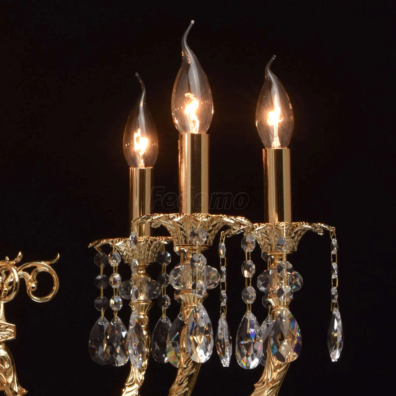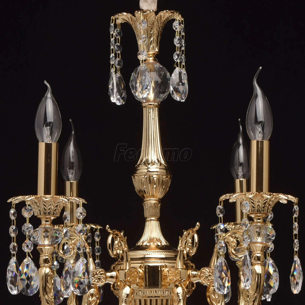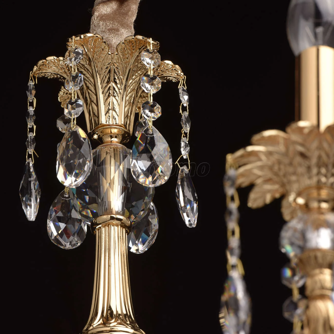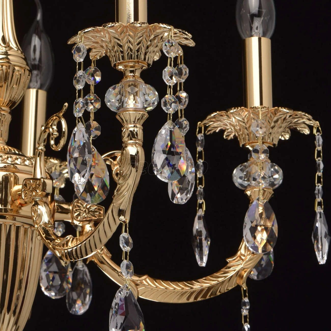Люстра из коллекции «Габриэль» - воплощение роскоши и изысканной красоты. Утонченное металлическое основание, выполненное из благородной латуни, гальванизировано в цвет золота оригинального оттенка. Грациозные витые рожки подчеркнуты изящными розетками, б