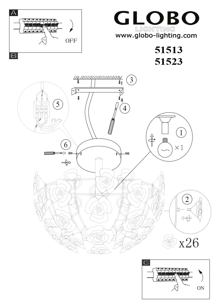 Потолочный светильник фигурный 51513 из серии Globo Clara от компании Globo подойдет для освещения кафе, кухни, оформленных в стиле современный, флористика. Материал плафона - акрил. Рассчитан на 1 лампочку с цоколем E27 и освещает площадь до 3 кв. м. Модель поддерживает установку диммера. Лучшая цена и условия доставки на Globo Clara 51513 в интернет-магазине Fedomo.ru.