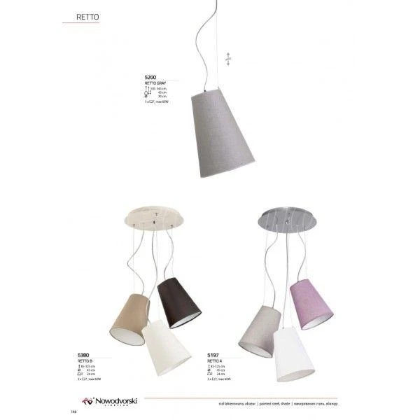 Каскадный подвесной светильник 5380 из серии Nowodvorski Retto от компании Nowodvorski подойдет для освещения гостиной, кафе, кухни, офиса, оформленных в стиле современный. Основной цвет изделия - матовый белый, материал абажура - ткань. Рассчитан на 3 лампочки с цоколем E27 и освещает площадь до 9 кв. м. Модель поддерживает установку диммера. Лучшая цена и условия доставки на Nowodvorski Retto 5380 в интернет-магазине Fedomo.ru.
