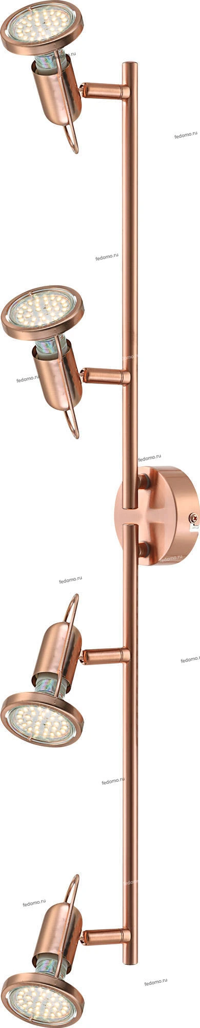 Спот на штанге 54383-4 из серии Anne от компании Globo удачно впишется в интерьер экспозиции, гостиной, кабинета, кухни, спальни, оформленных в стиле модерн. Спот имеет 4 плафона и 4 лампочки с цоколем GU10 с мощностью 3W, напряжением 220V. Светильник устанавливается на монтажную пластину. Основной цвет и материал арматуры - металл цвета меди. Лампочки имеются в комплекте. Габариты модели: длина - 700 мм, высота - 130 мм. Лучшая цена и условия доставки на Globo 54383-4 в интернет-магазине Fedomo.ru.