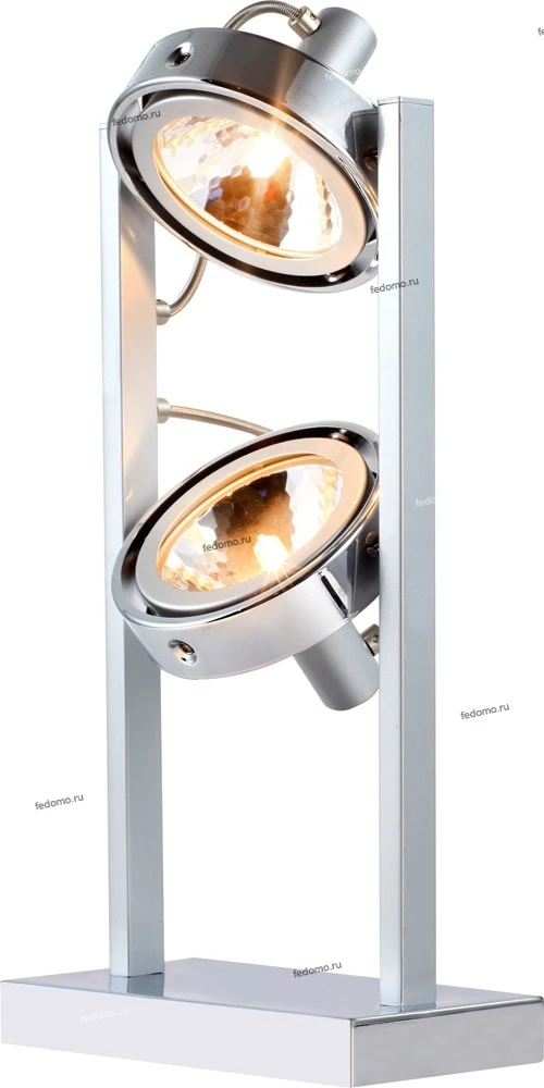 Интерьерная настольная лампа 5645-2T из серии Kuriana от компании Globo будет удачно смотреться на столе в гостиной, кафе, спальне, оформленных в стиле хай-тек, техно. Интерьерная лампа в виде прожектора имеет 2 плафона и 2 лампочки с цоколем G9, мощностью 52W и напряжением 220V. Модель устанавливается на основание, есть возможность подключения диммера. Основной материал и цвет арматуры - металл цвета хрома, материал плафона - стекло. Интерьерная лампа оборудована выключателем на проводе. Габариты изделия: ширина - 210 мм, высота - 400 мм. В комплекте есть лампочки, провод электропитания с вилкой без заземления. Лучшая цена и условия доставки на Globo 5645-2T в интернет-магазине Fedomo.ru.