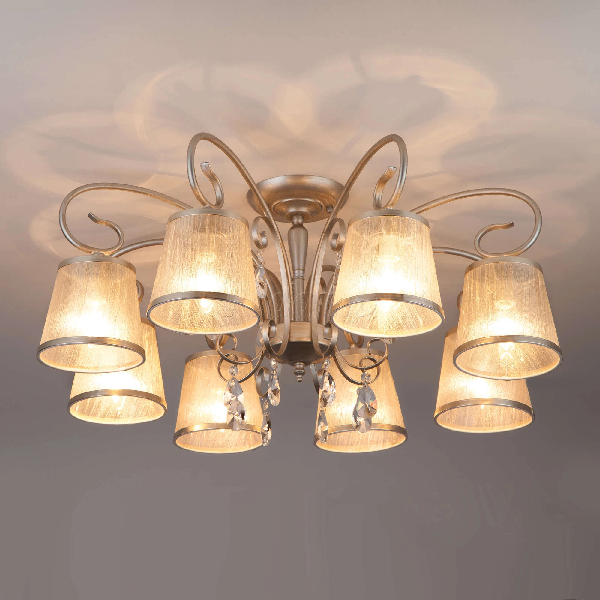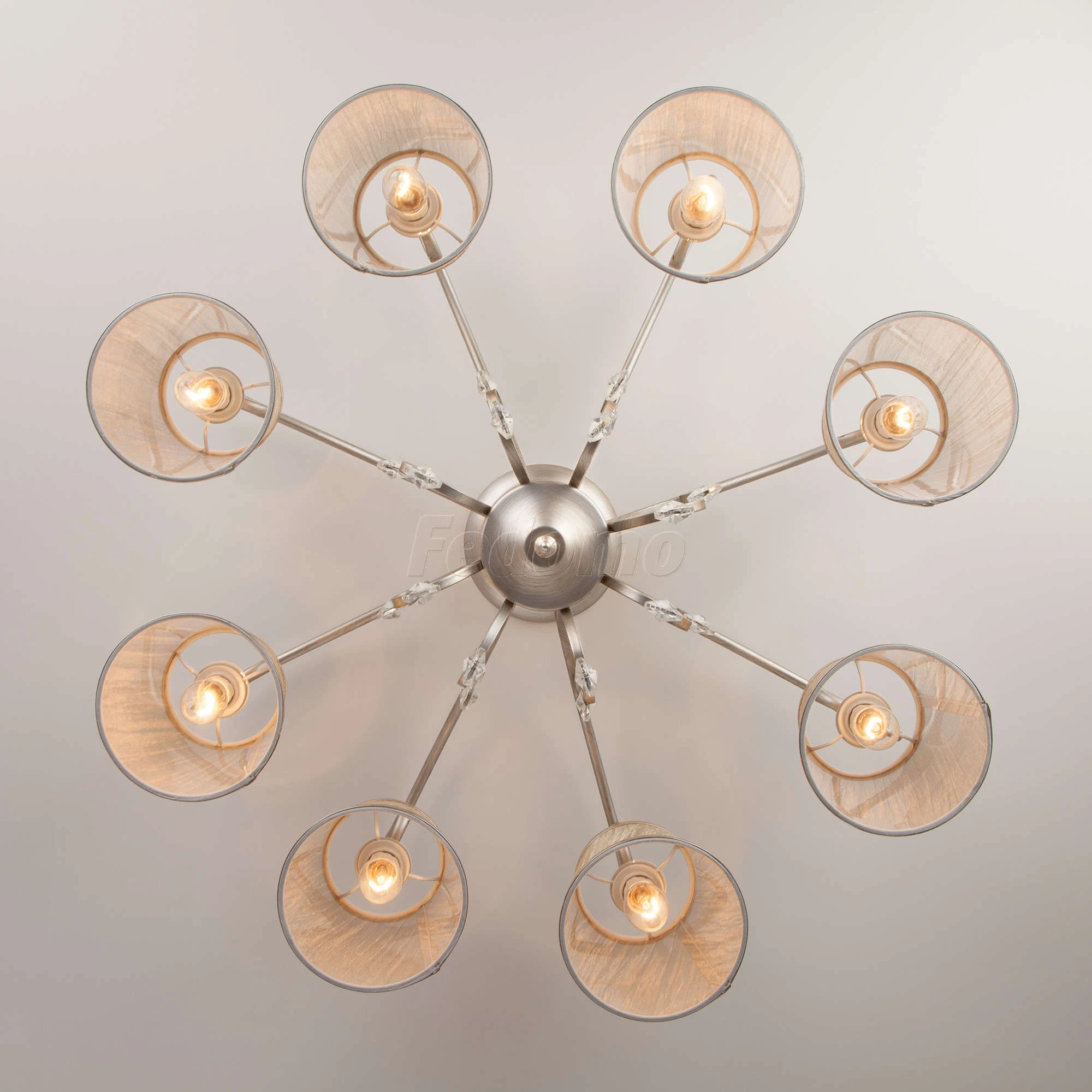 Люстра потолочная 60065/8 серебро из серии Liona от компании Eurosvet устанавливается на монтажную пластину. Классическая люстра прекрасно подойдет в качестве источника основного света для гостиной, спальни, оформленных в стиле арт-деко. Основной цвет модели - серебро, материал арматуры - металл. Люстра имеет 8 плафонов со свечением вниз, материал изготовления - матовая ткань. Модель оснащена цоколем E14 (8xE14), имеет 8 лампочек с общей мощностью 320W и напряжением 230V. Светильник поддерживает подключение диммера. Габариты: длина - 740 мм, ширина - 740 мм, высота - 350 мм. Лампочки в комплект не входят. Лучшая цена и условия доставки на Eurosvet 60065/8 серебро в интернет-магазине Fedomo.ru.