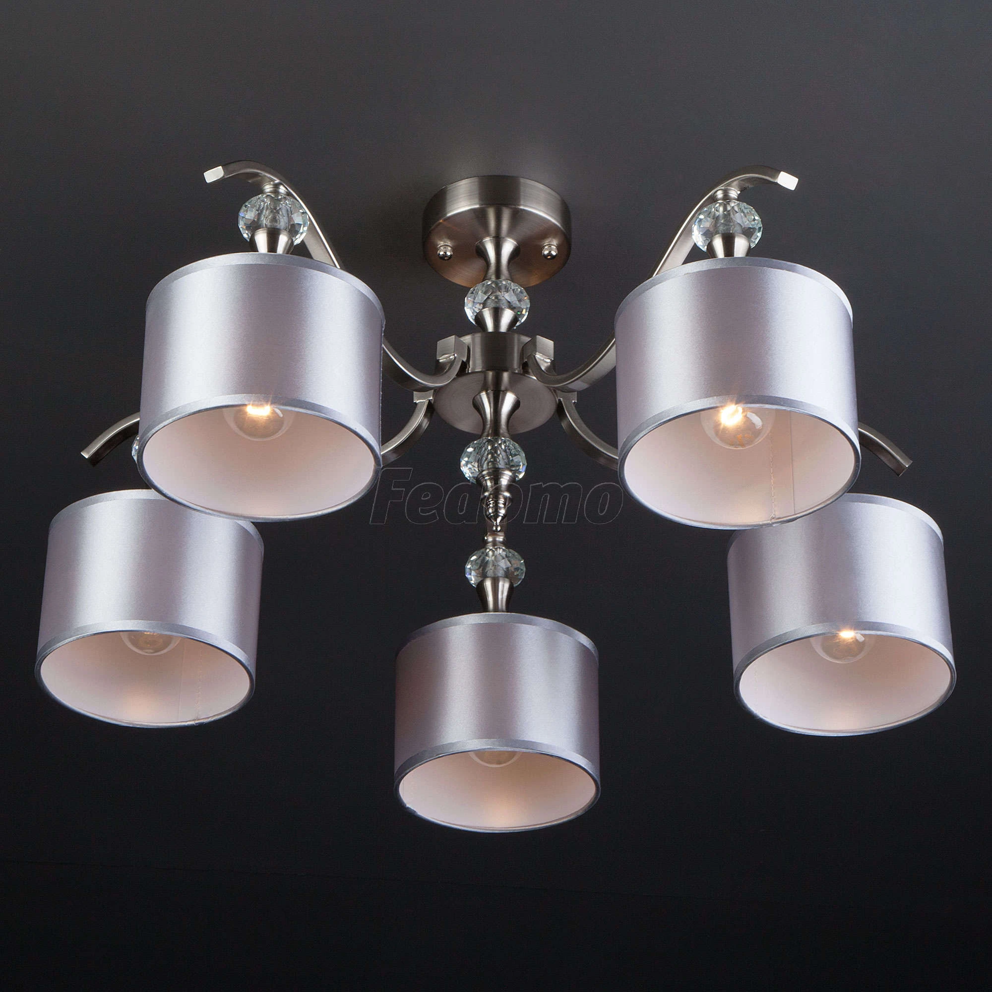 Люстра потолочная 60070/5 сатин-никель из серии Ofelia от компании Eurosvet устанавливается на монтажную пластину. Люстра прекрасно подойдет в качестве источника основного света для гостиной, кафе, кухни, кабинета, офиса, оформленных в стиле модерн, арт-деко. Основной цвет модели - серебро, материал арматуры - металл. Люстра имеет 5 абажуров со свечением вниз, материал изготовления - матовая ткань. Модель оснащена цоколем E14 (5xE14), имеет 5 лампочек с общей мощностью 200W и напряжением 230V. Светильник поддерживает подключение диммера. Габариты: длина - 600 мм, ширина - 600 мм, высота - 300 мм. Лампочки в комплект не входят. Лучшая цена и условия доставки на Eurosvet 60070/5 сатин-никель в интернет-магазине Fedomo.ru.