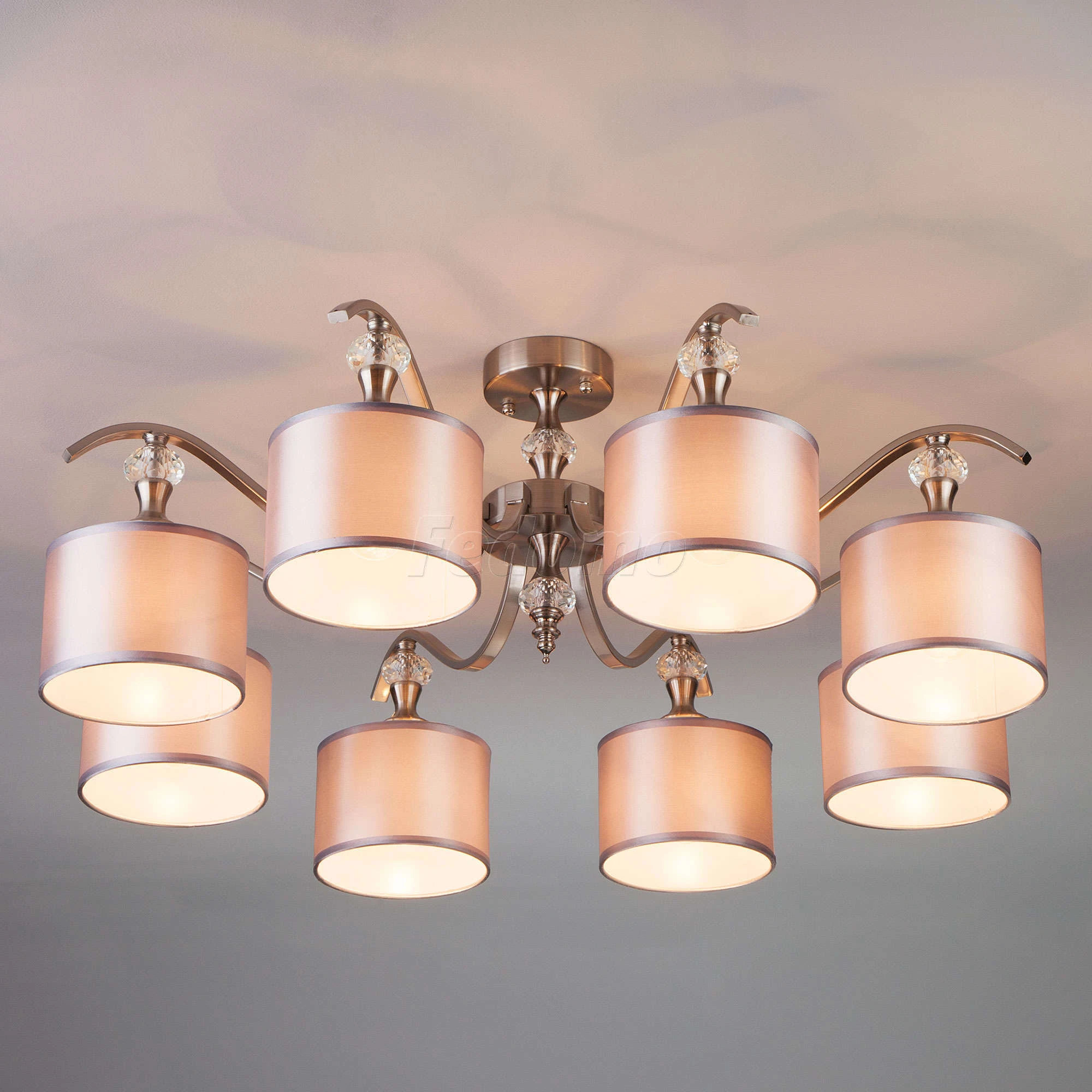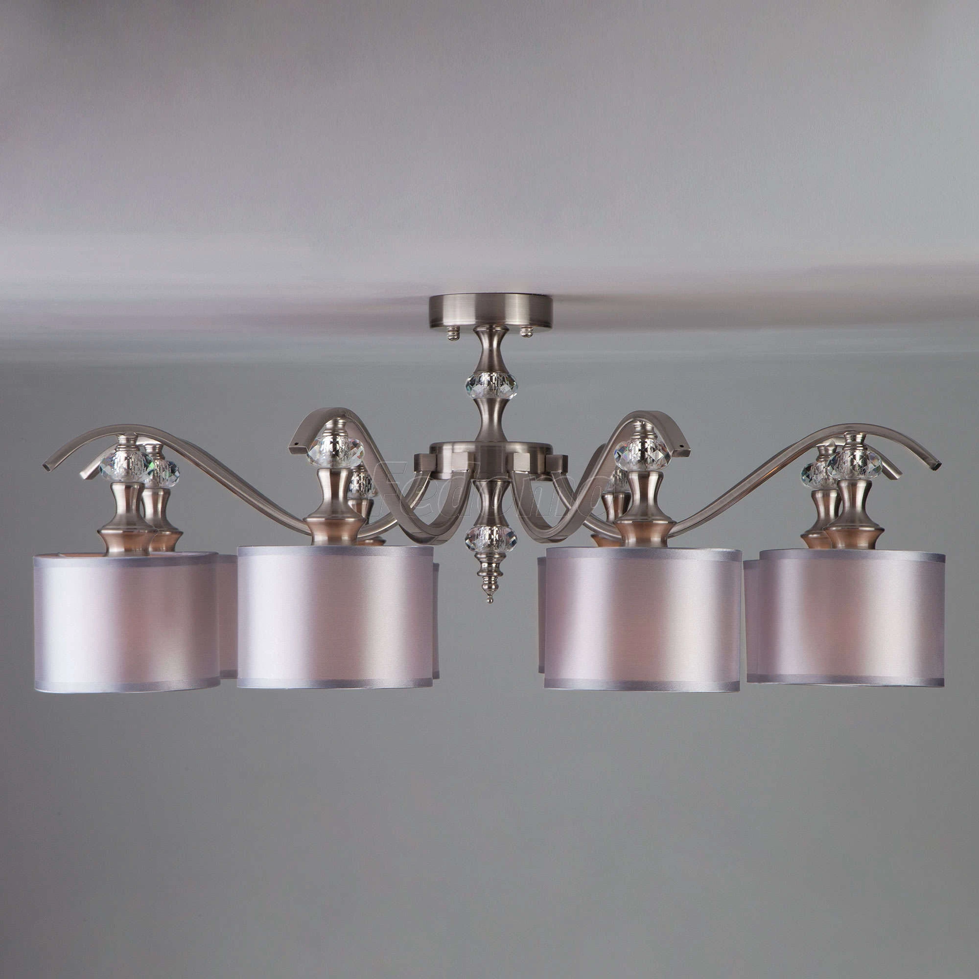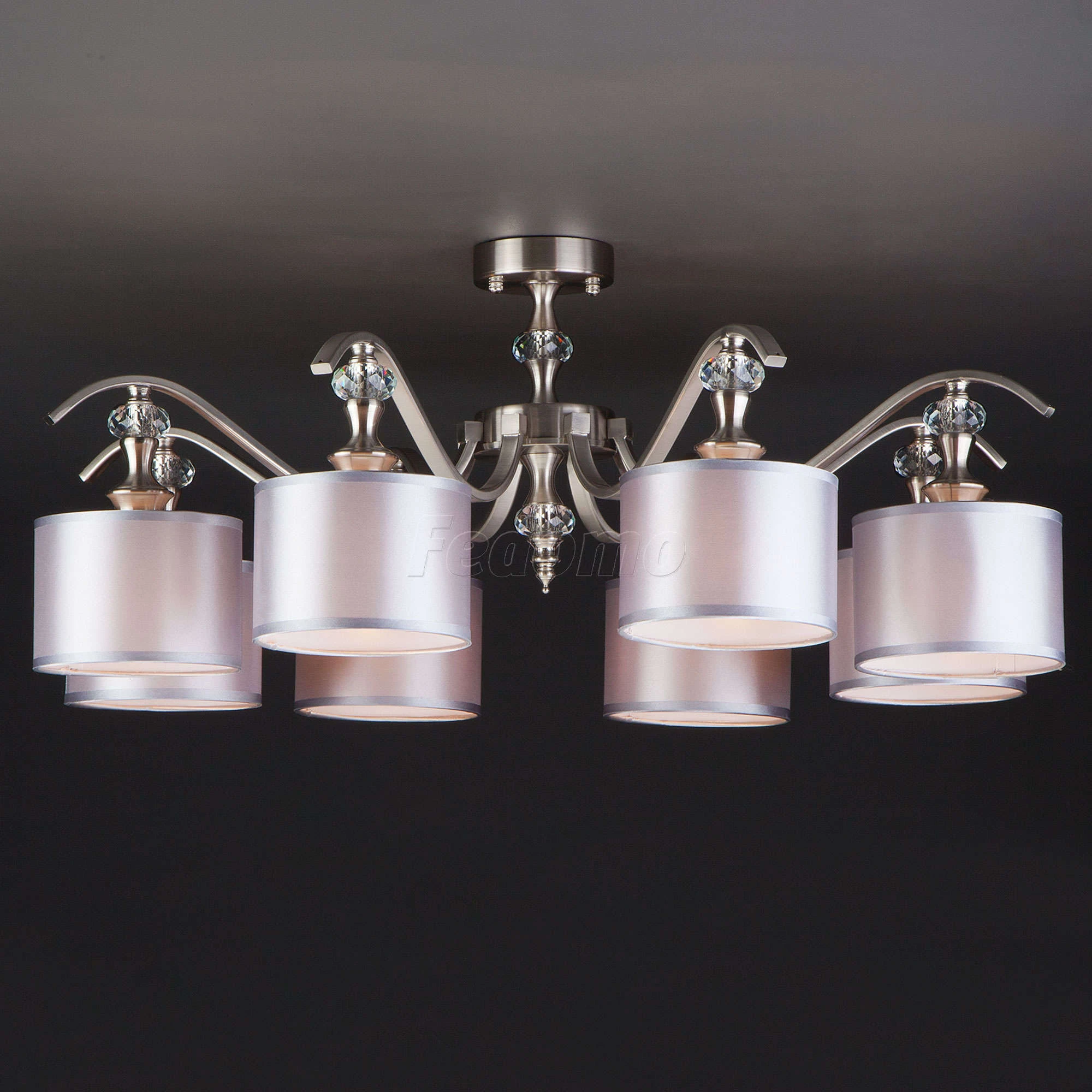 Люстра потолочная 60070/8 сатин-никель из серии Ofelia от компании Eurosvet устанавливается на монтажную пластину. Люстра прекрасно подойдет в качестве источника основного света для гостиной, кафе, кухни, кабинета, офиса, оформленных в стиле модерн, арт-деко. Основной цвет модели - серебро, материал арматуры - металл. Люстра имеет 8 абажуров со свечением вниз, материал изготовления - матовая ткань. Модель оснащена цоколем E14 (8xE14), имеет 8 лампочек с общей мощностью 320W и напряжением 230V. Светильник поддерживает подключение диммера. Габариты: длина - 750 мм, ширина - 750 мм, высота - 300 мм. Лампочки в комплект не входят. Лучшая цена и условия доставки на Eurosvet 60070/8 сатин-никель в интернет-магазине Fedomo.ru.