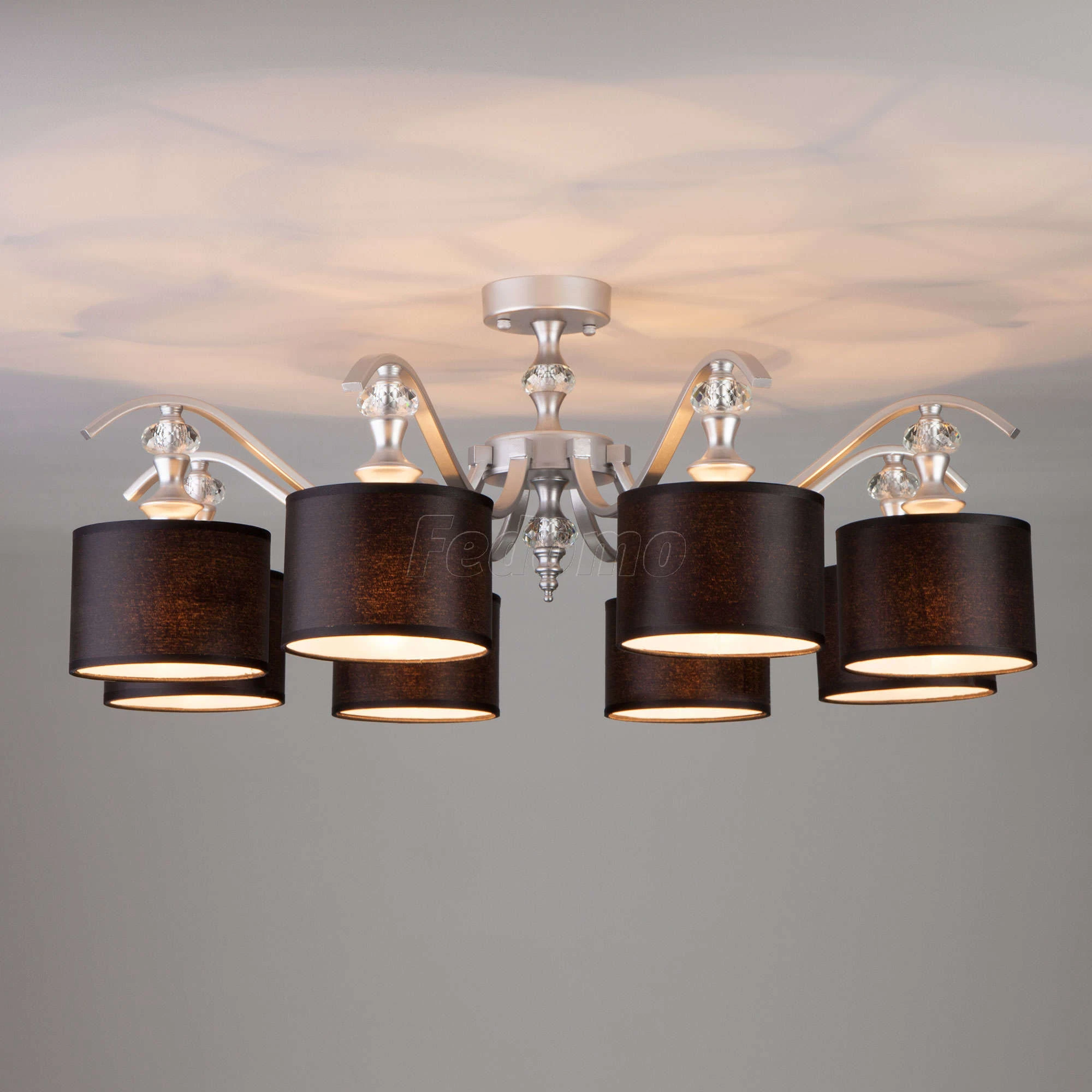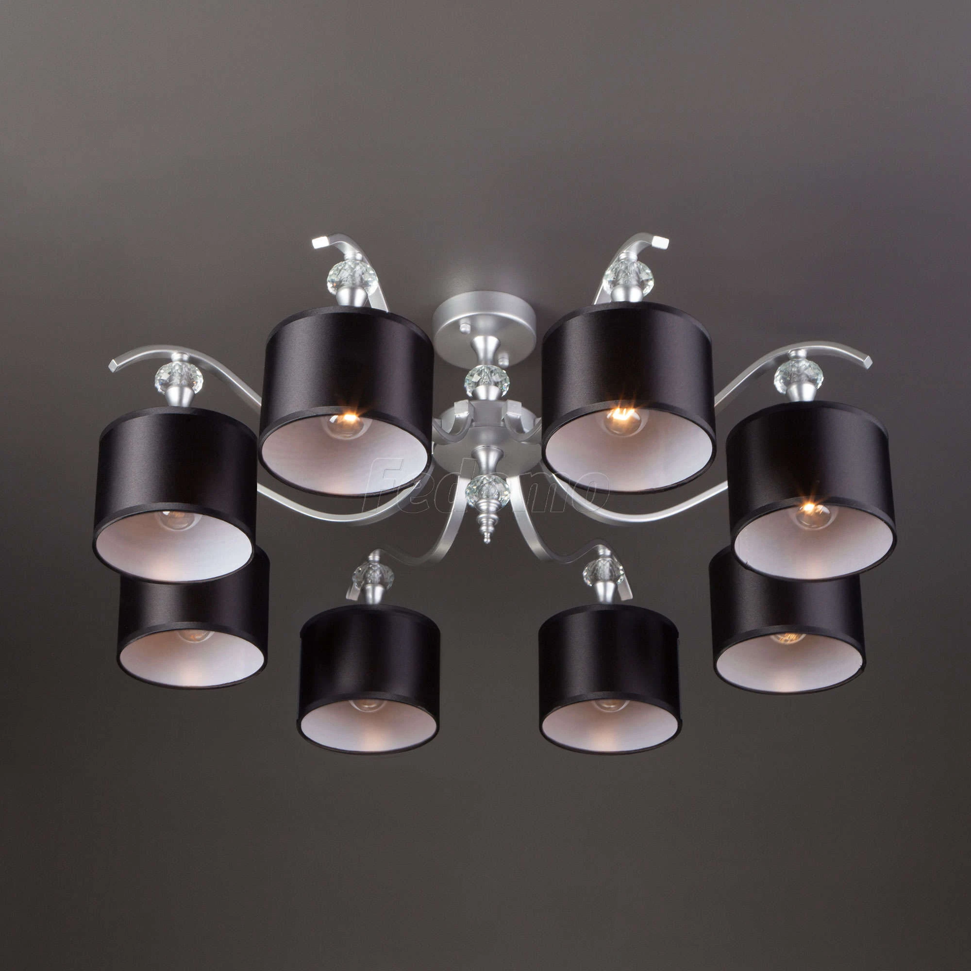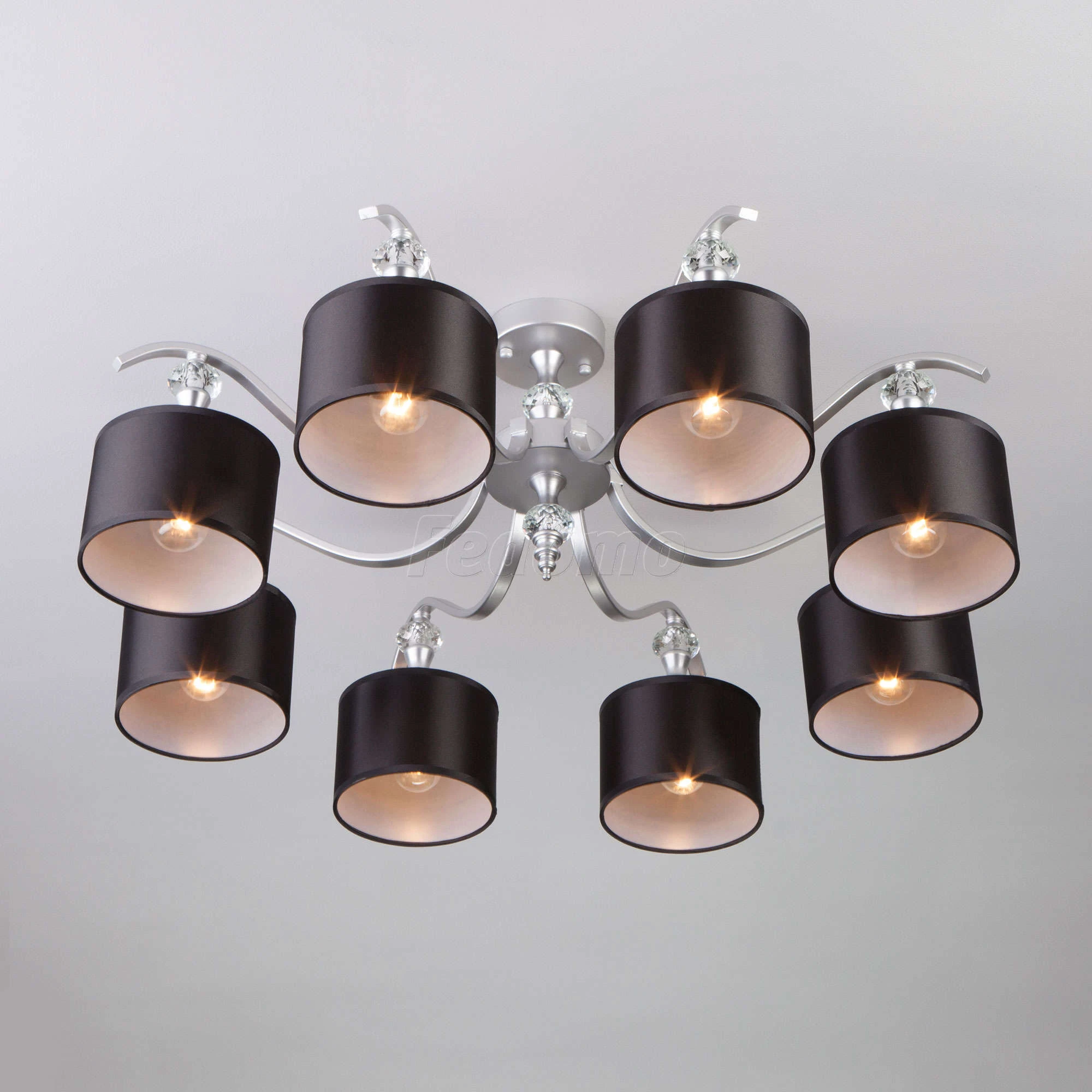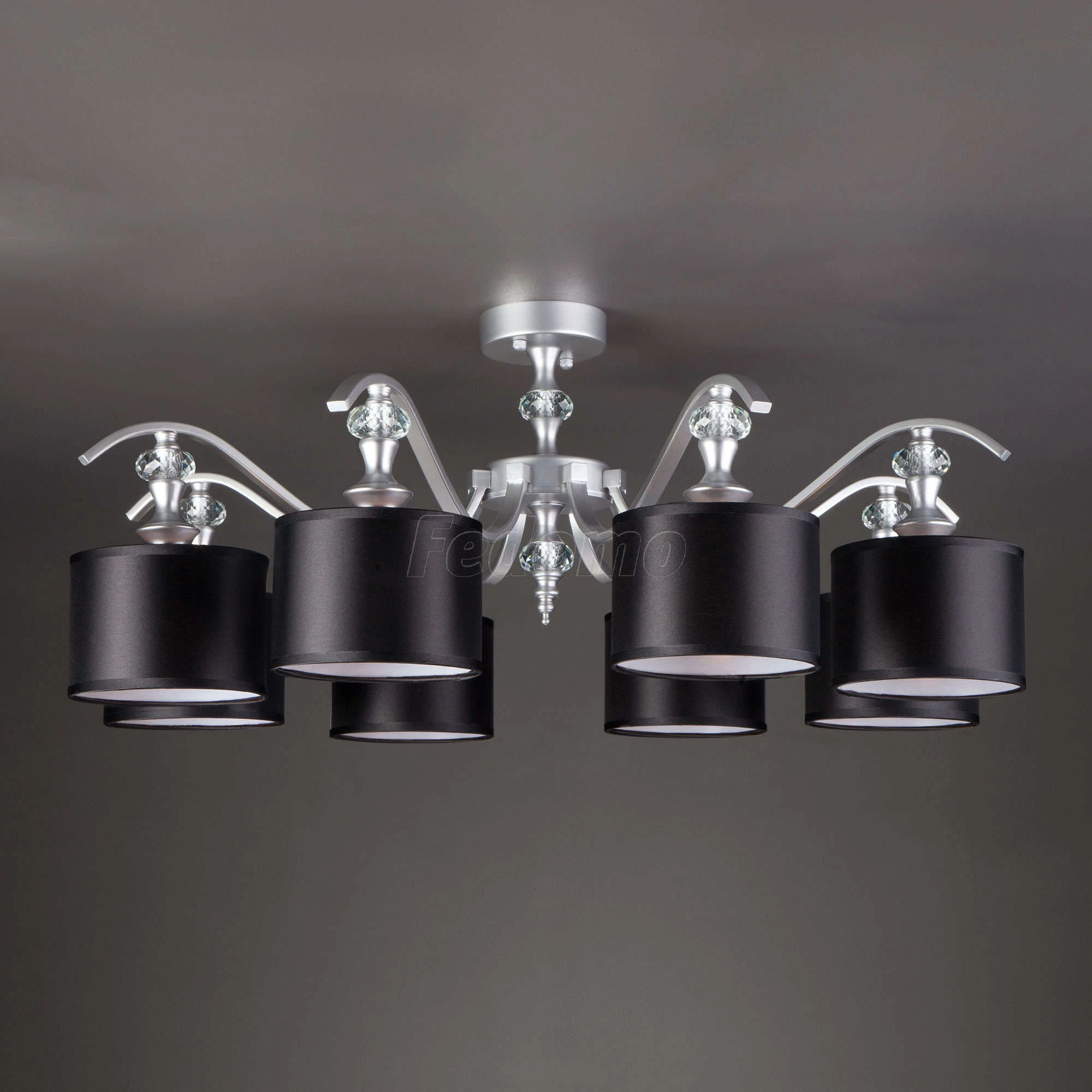 Люстра потолочная 60070/8 серебро из серии Ofelia от компании Eurosvet устанавливается на монтажную пластину. Люстра прекрасно подойдет в качестве источника основного света для гостиной, кафе, кухни, кабинета, офиса, оформленных в стиле модерн, арт-деко. Основной цвет модели - черный, материал арматуры - металл. Люстра имеет 8 абажуров со свечением вниз, материал изготовления - матовая ткань. Модель оснащена цоколем E14 (8xE14), имеет 8 лампочек с общей мощностью 320W и напряжением 230V. Светильник поддерживает подключение диммера. Габариты: длина - 750 мм, ширина - 750 мм, высота - 300 мм. Лампочки в комплект не входят. Лучшая цена и условия доставки на Eurosvet 60070/8 серебро в интернет-магазине Fedomo.ru.