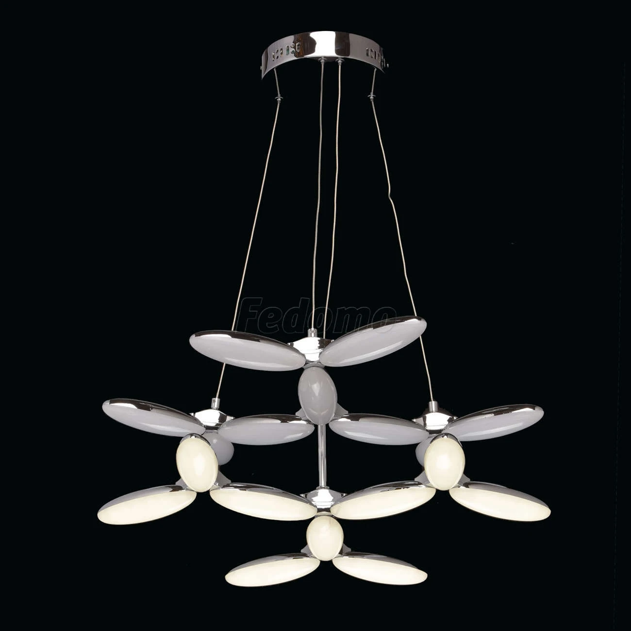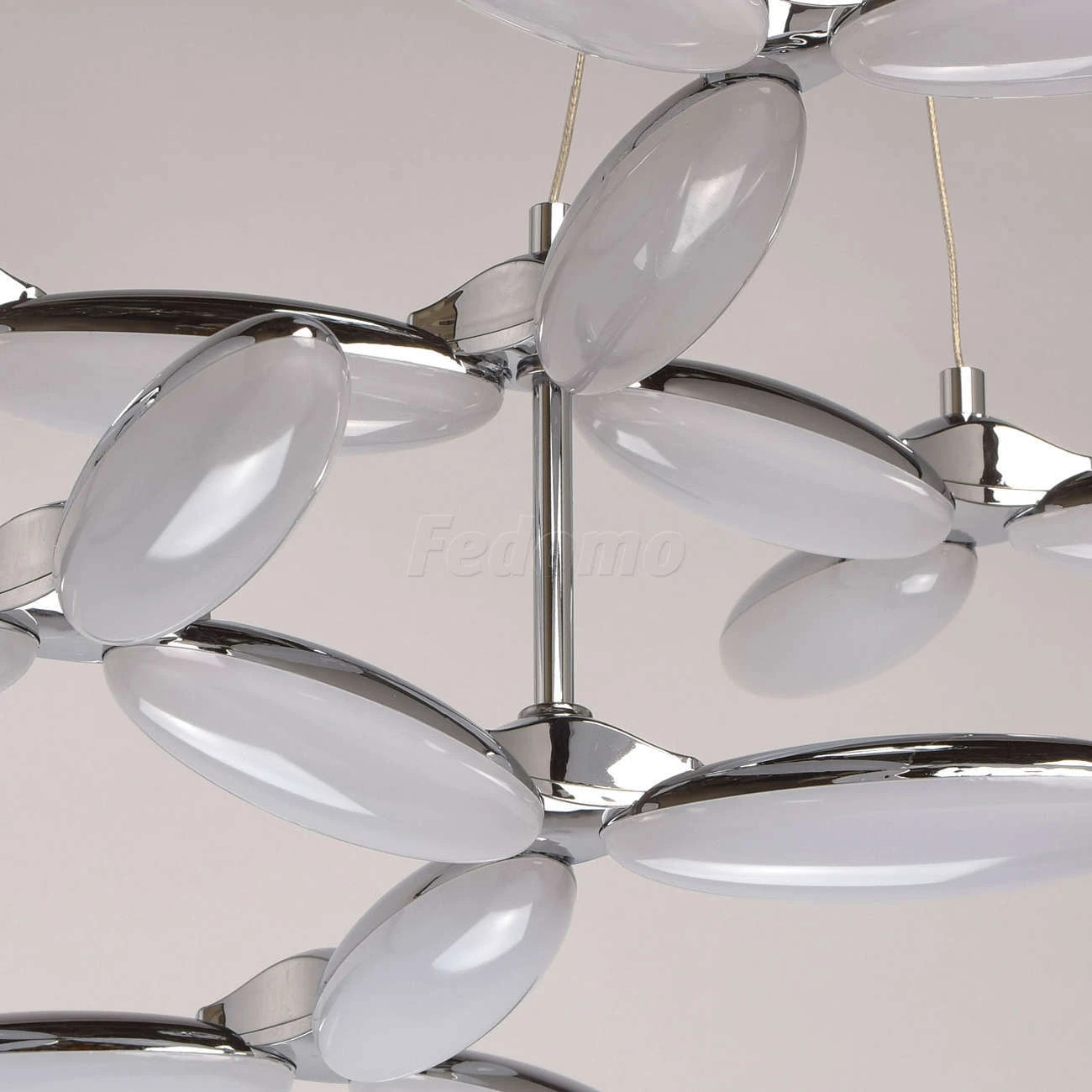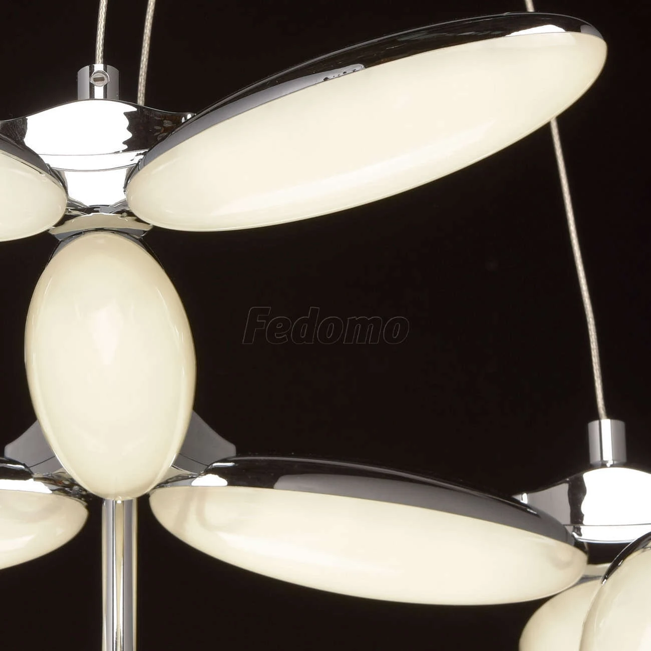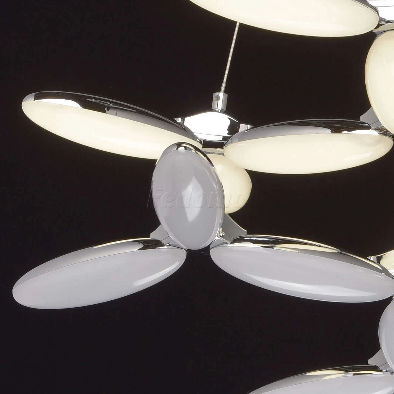 Оригинальную люстру из коллекции «Фленсбург» оценит тот, кто не привык довольствоваться банальными решениями в интерьере. Лаконичное основание из металла цвета хрома выгодно подчеркнуто необычными плафонами: они выполнены из металла и глянцевого белого ак