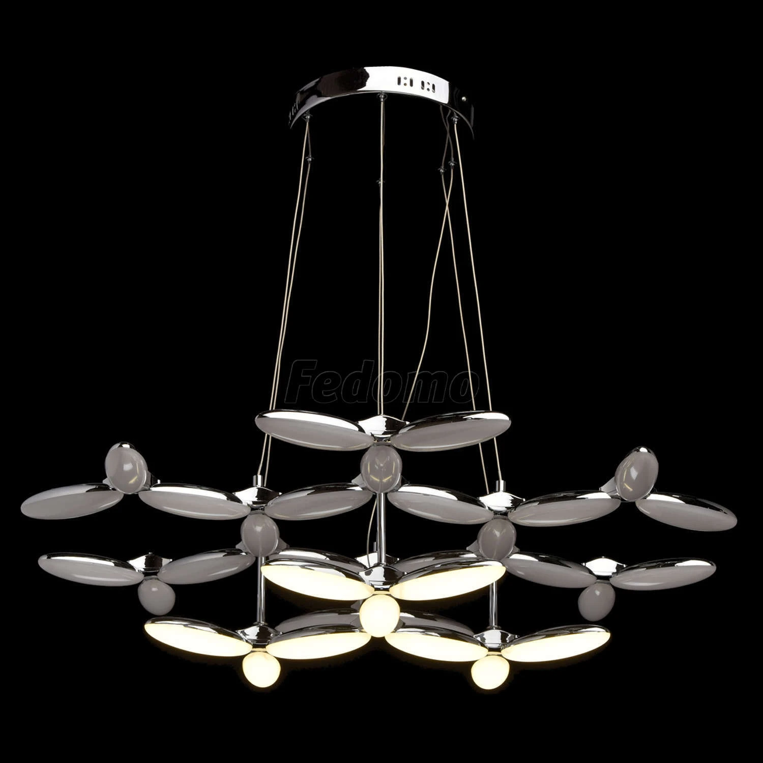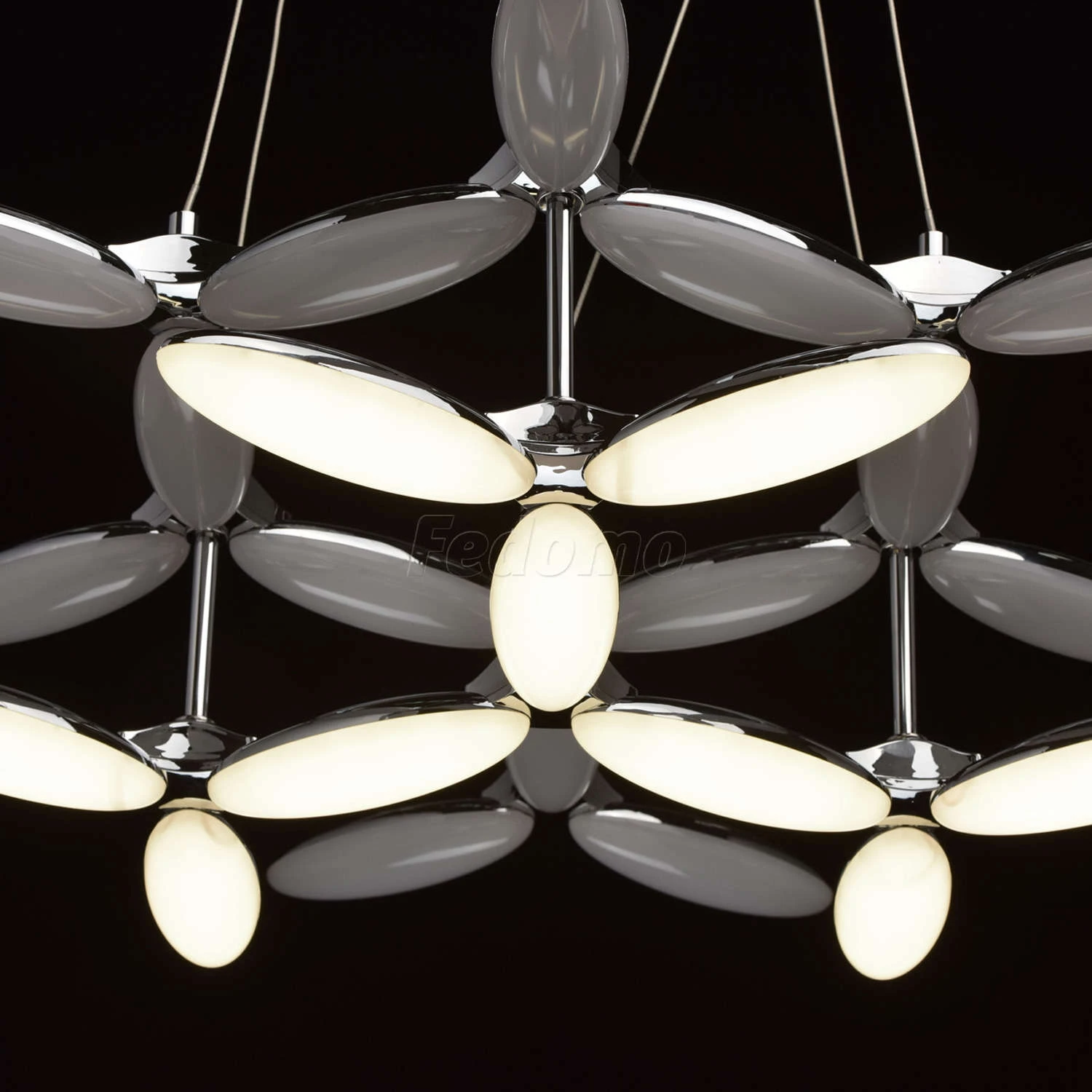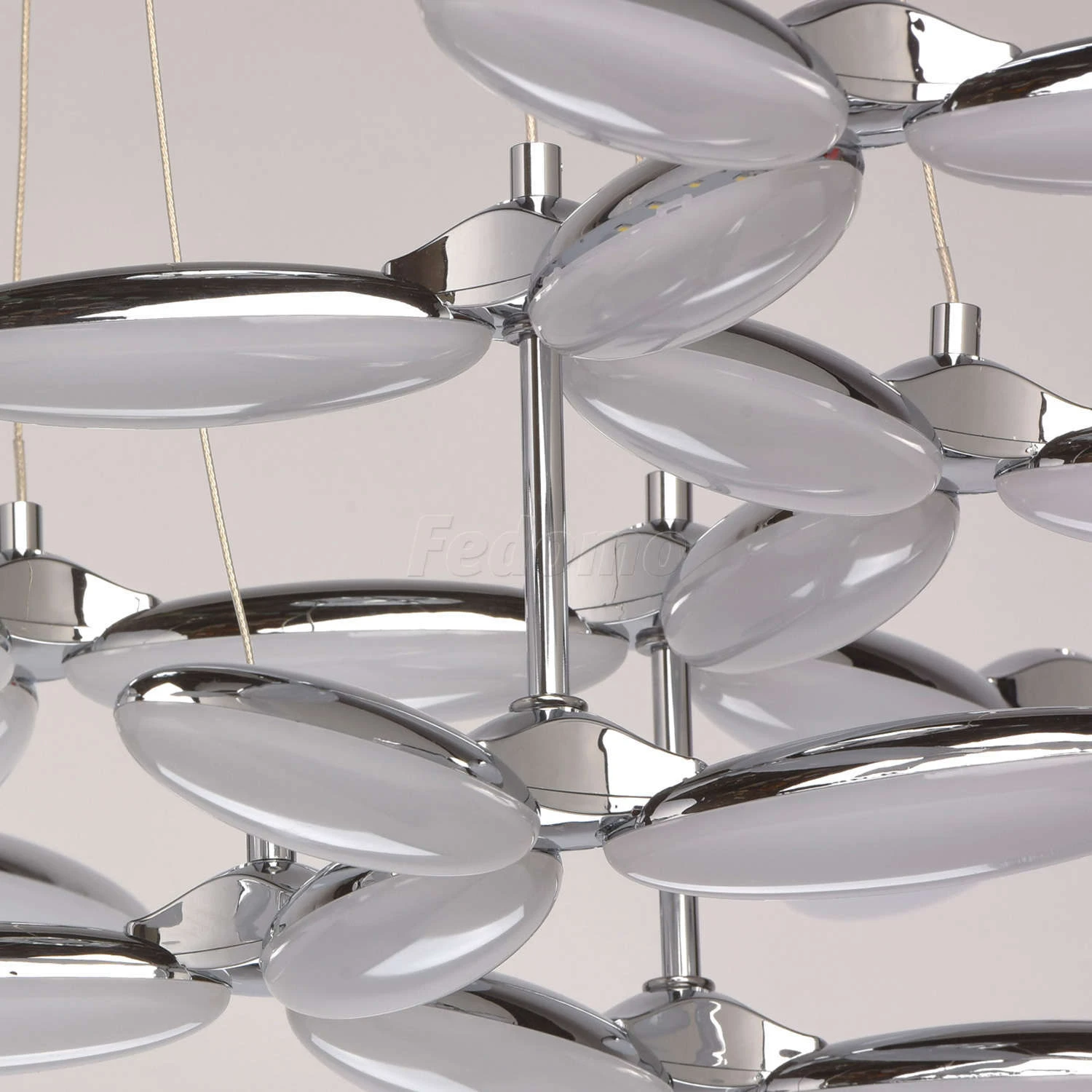 Оригинальную люстру из коллекции «Фленсбург» оценит тот, кто не привык довольствоваться банальными решениями в интерьере. Лаконичное основание из металла цвета хрома выгодно подчеркнуто необычными плафонами: они выполнены из металла и глянцевого белого ак