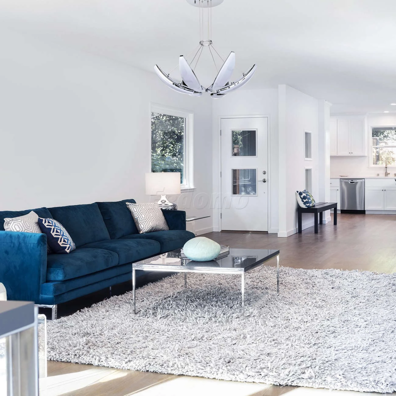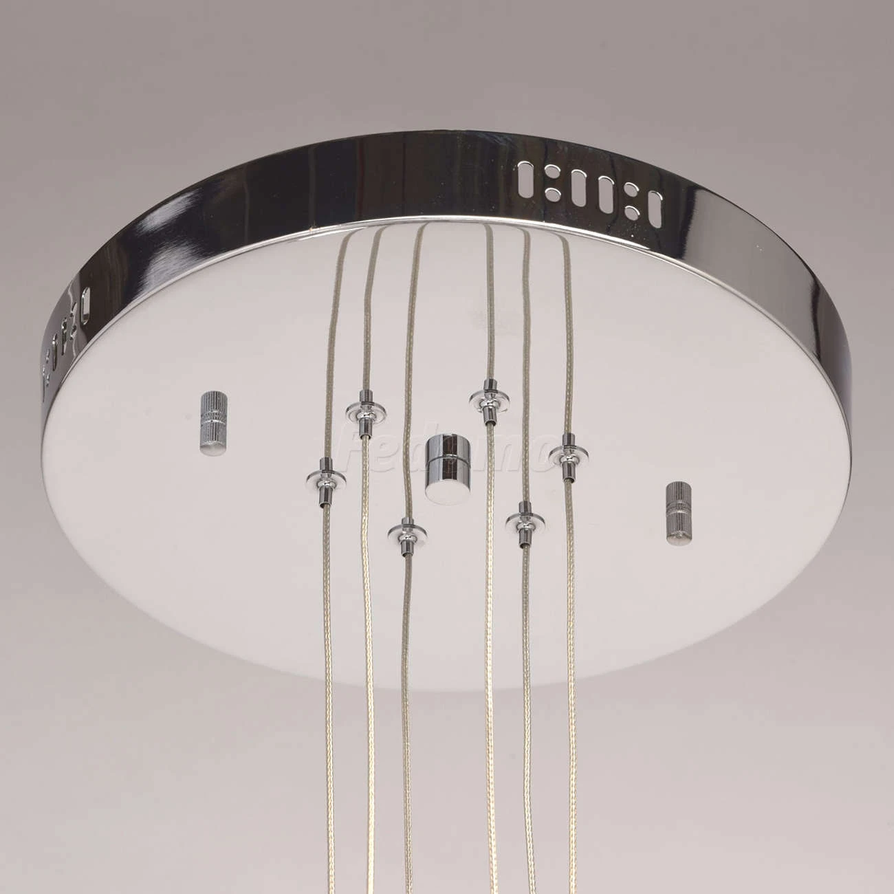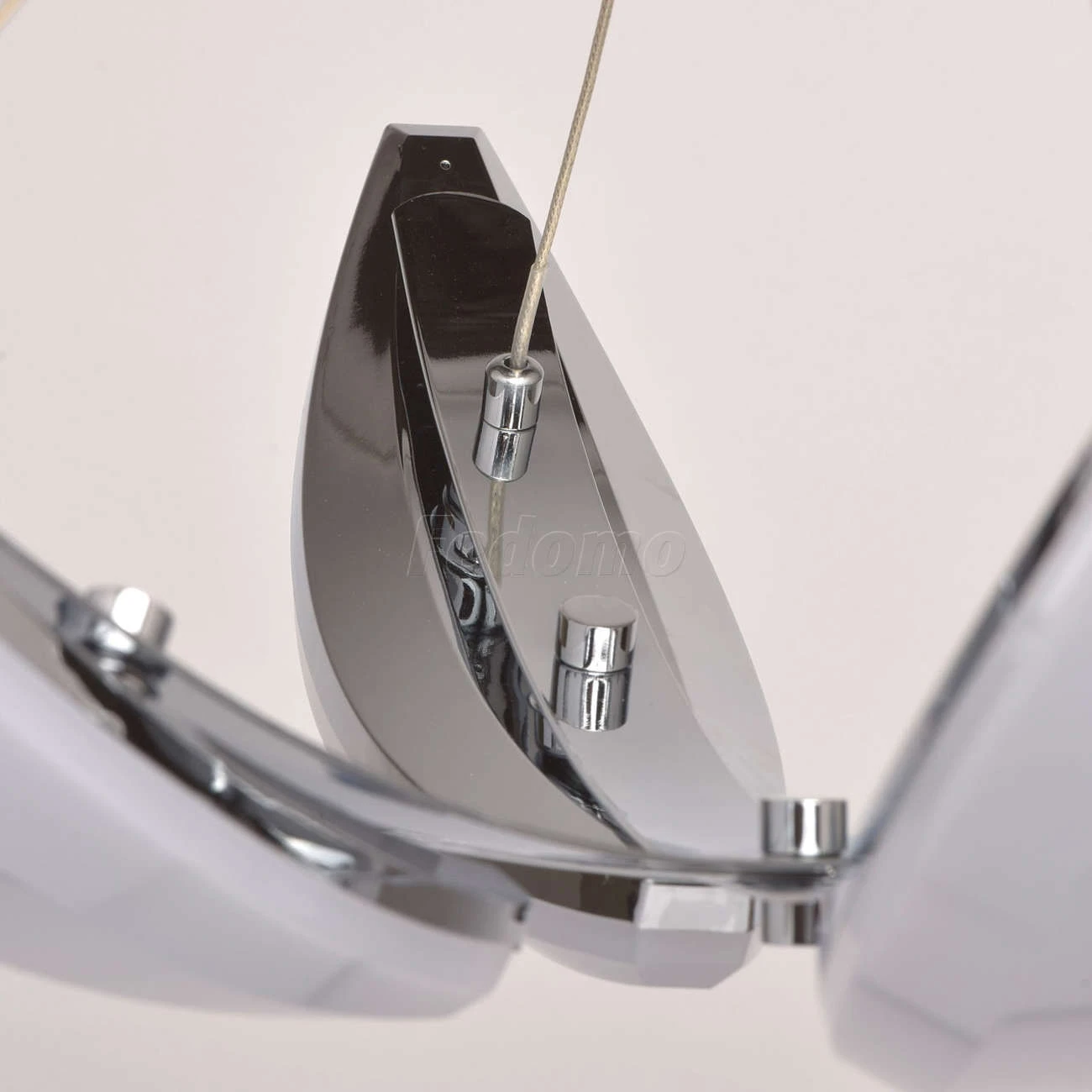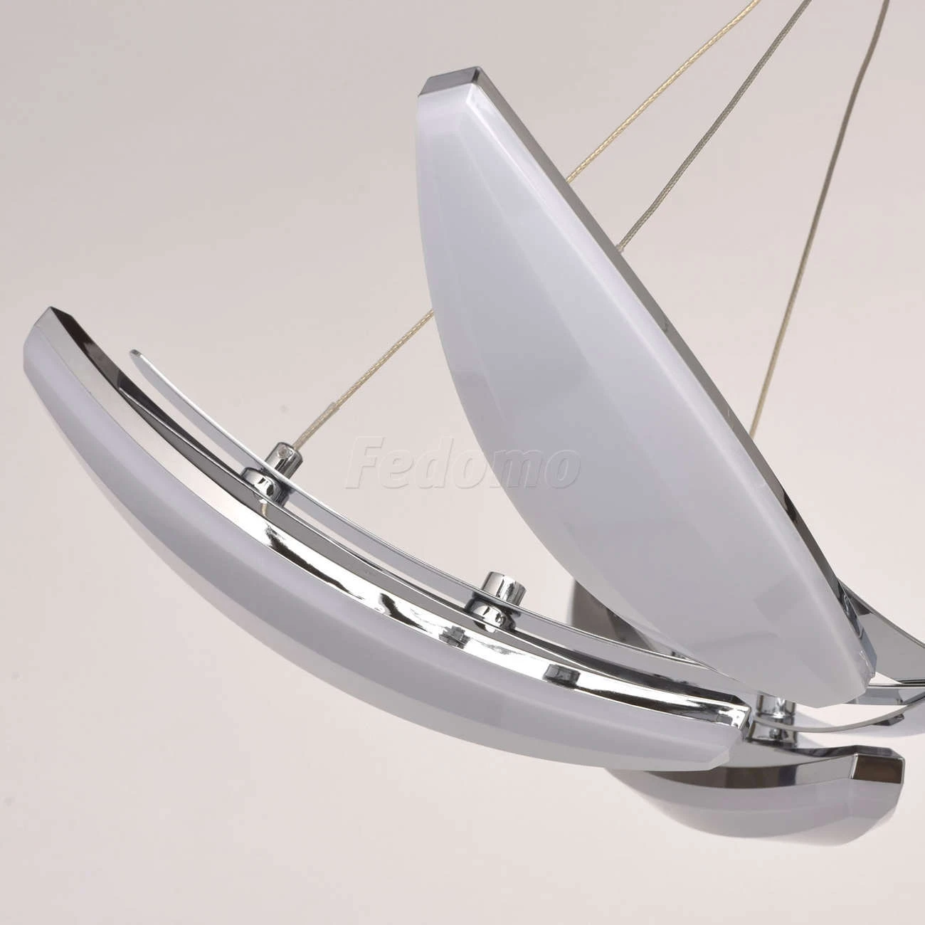 Люстра из коллекции «Фленсбург» - еще один пример, доказывающий: в современном интерьере возможно всё! Несколько футуристичный дизайн представлен хромированным металлическим основанием и оригинальными подвесными плафонами-лепестками. Они выполнены из мета