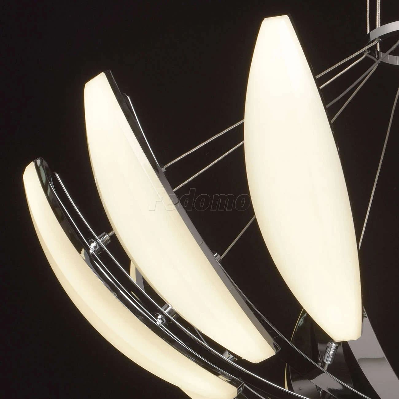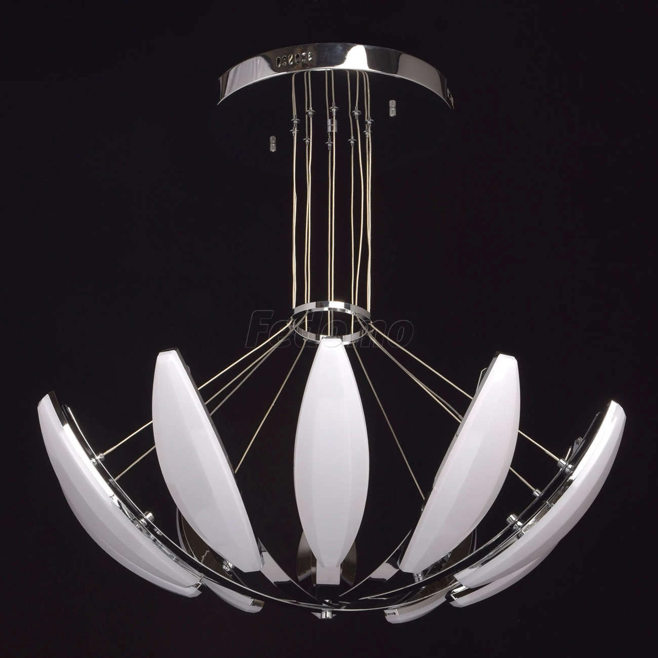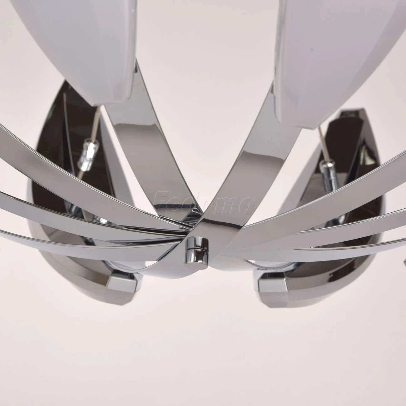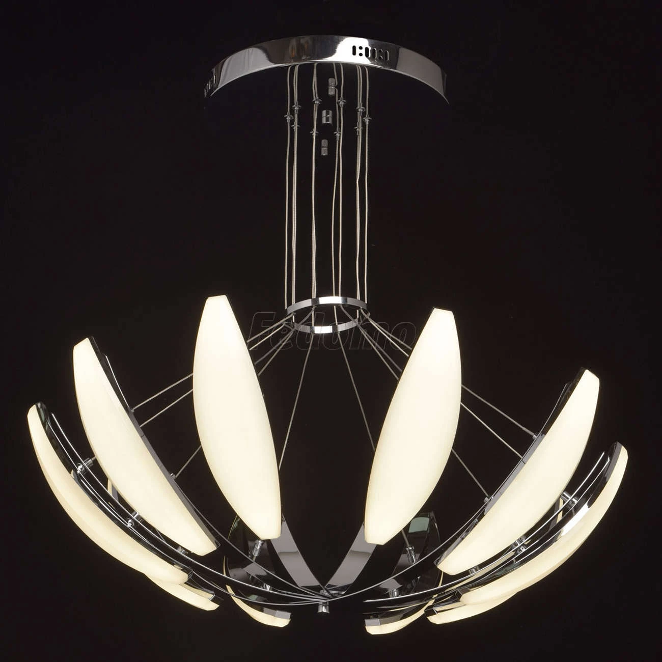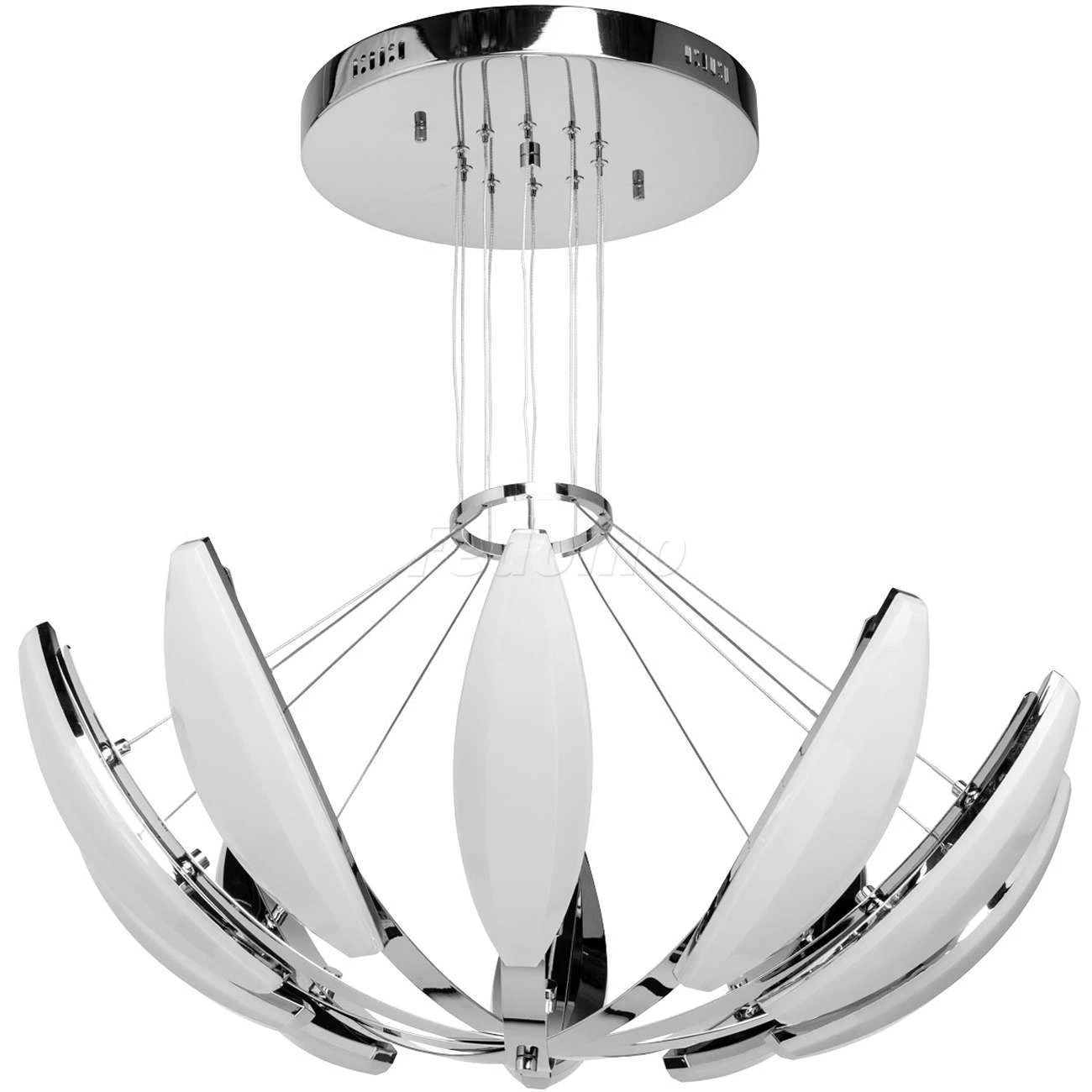 Люстра из коллекции «Фленсбург» - еще один пример, доказывающий: в современном интерьере возможно всё! Несколько футуристичный дизайн представлен хромированным металлическим основанием и оригинальными подвесными плафонами-лепестками. Они выполнены из мета