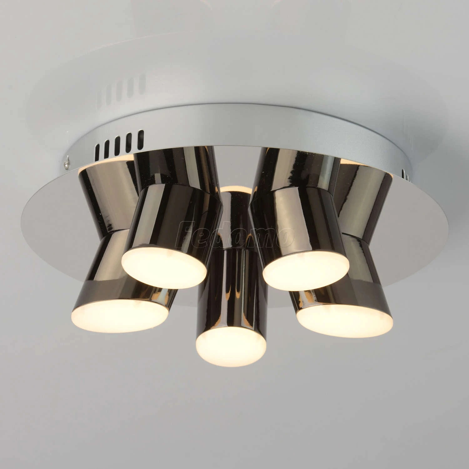 Люстра потолочная 609013605 из серии Фленсбург от компании DeMarkt устанавливается на монтажную пластину. Современная люстра прекрасно подойдет в качестве источника основного света для гостиной, спальни, зала, оформленных в стиле арт-деко. Основной цвет модели - хром, материал арматуры - металл. Люстра имеет 5 плафонов, материал изготовления - металл, акрил. Светодиодная модель с цоколем LED, имеет 5 лампочек с общей мощностью 20W и напряжением 220V. Светильник имеет цветовую температуру 3200К. Габариты: высота - 100 мм, диаметр - 300 мм. В комплекте есть лампочки. Лучшая цена и условия доставки на DeMarkt 609013605 в интернет-магазине Fedomo.ru.