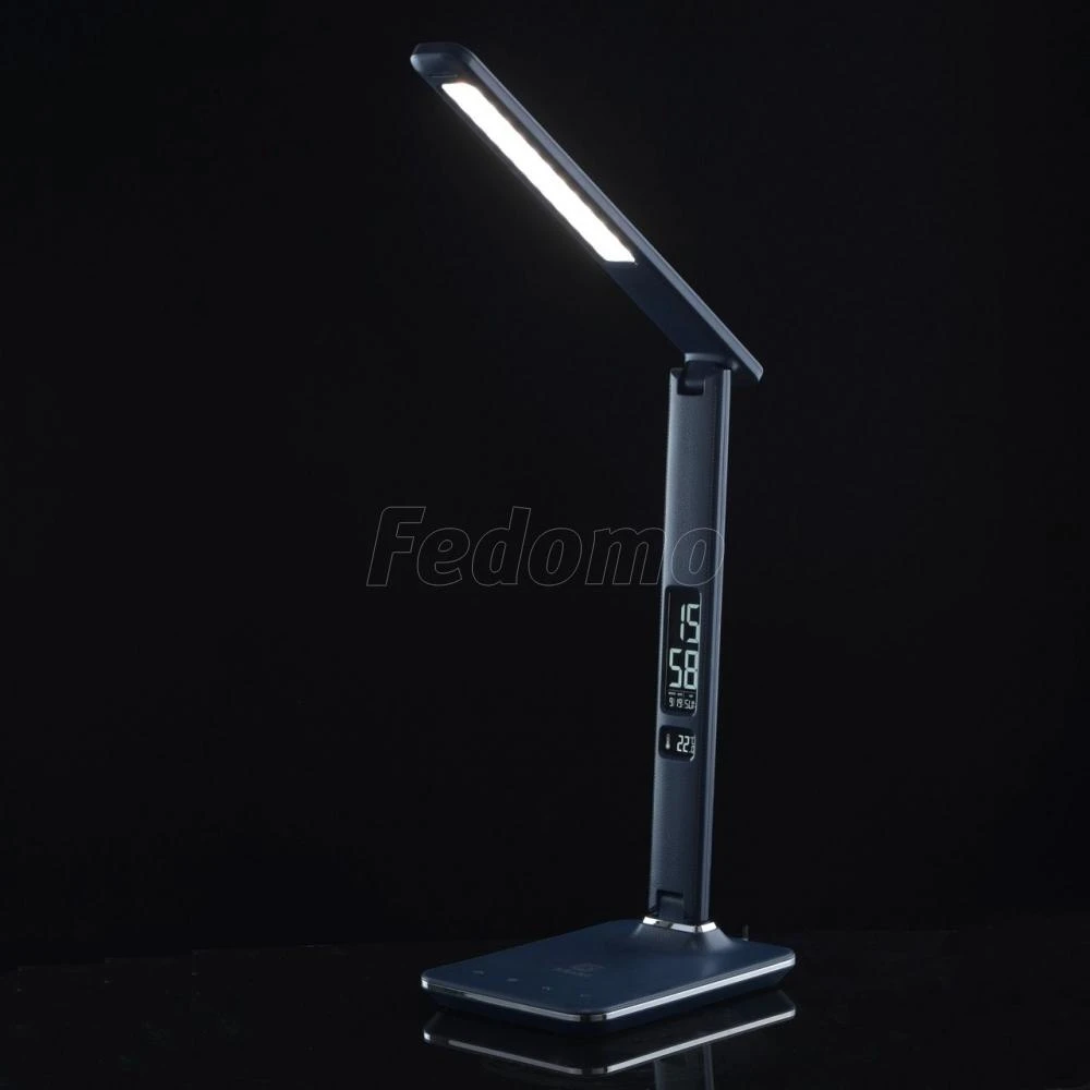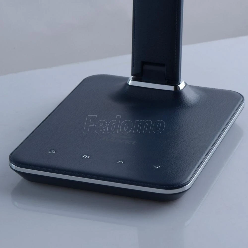 Офисная настольная лампа для школьников 631035201 из серии Ракурс от компании DeMarkt будет удачно смотреться на столе в гостиной, спальне, кабинете, офисе, оформленных в стиле хай-тек, техно. Светодиодная офисная лампа с направленным светом имеет 1 рассеиватель и лампочку с мощностью 7W и напряжением 220V. Модель складываемая, с регулировкой цветовой температуры, с часами и будильником, зарядкой от USB, термометром, с диммером устанавливается на основание. Основной материал и цвет арматуры - синий акрил, кожа, материал рассеивателя - акрил. Светодиодная офисная лампа оборудована сенсорным выключателем. Габариты изделия: длина - 140 мм, ширина - 185 мм, высота - 530 мм. В комплекте есть лампочки. Лучшая цена и условия доставки на DeMarkt 631035201 в интернет-магазине Fedomo.ru.