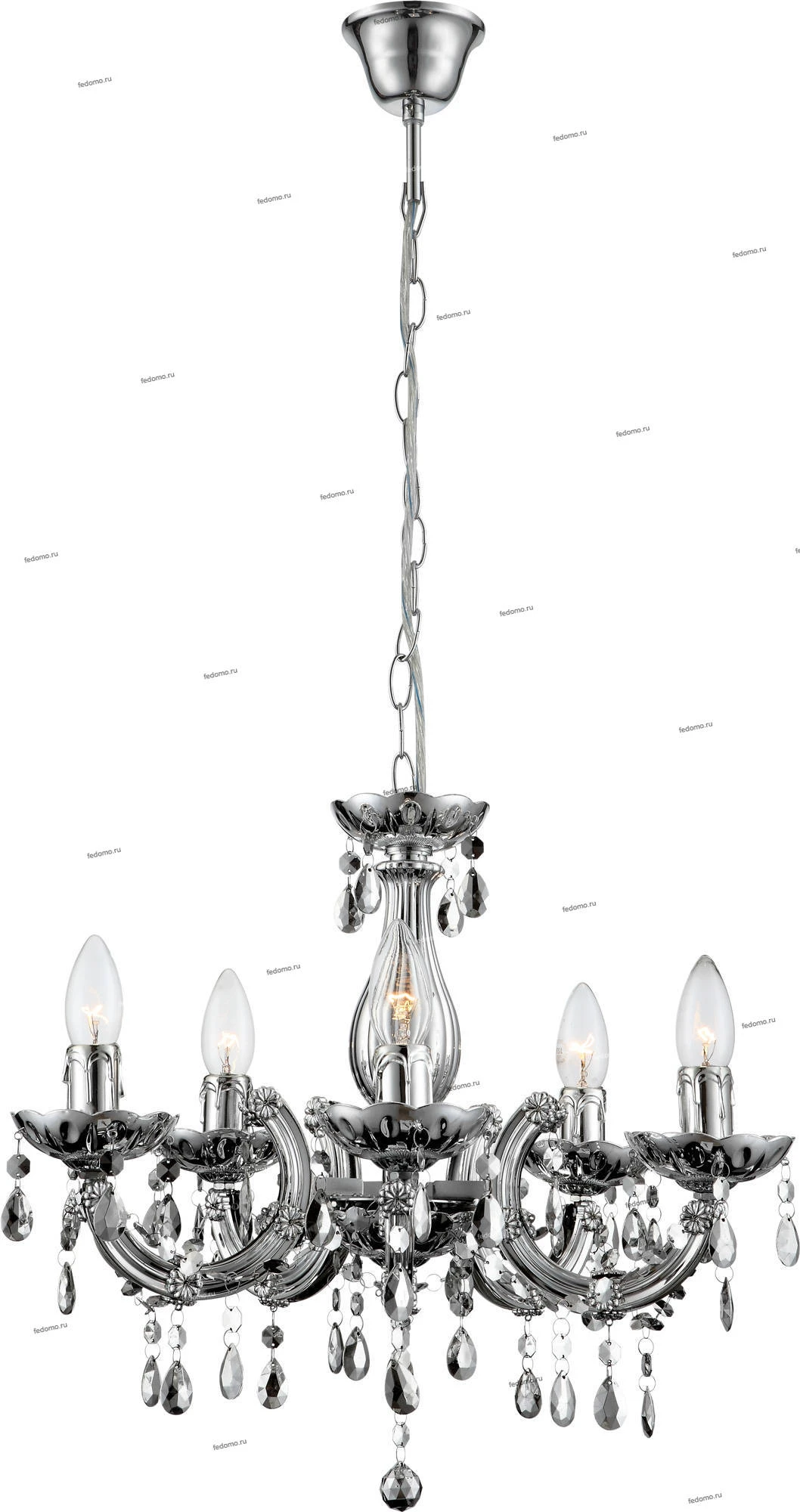 Люстра подвесная 63117-5 из серии Cuimbra II от компании Globo устанавливается на металлический крюк. Классическая люстра в виде подсвечника прекрасно подойдет в качестве источника основного света для гостиной, спальни, оформленных в стиле арт-деко. Основной цвет модели - хром, материал арматуры - металл. Люстра имеет, материал изготовления - акрил. Модель оснащена цоколем E14 (5xE14), имеет 5 лампочек с общей мощностью 200W и напряжением 220V. Светильник поддерживает подключение диммера. Габариты: высота - 1280 мм, диаметр - 440 мм. Лампочки в комплект не входят. Лучшая цена и условия доставки на Globo 63117-5 в интернет-магазине Fedomo.ru.