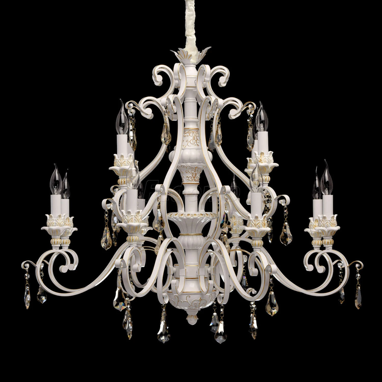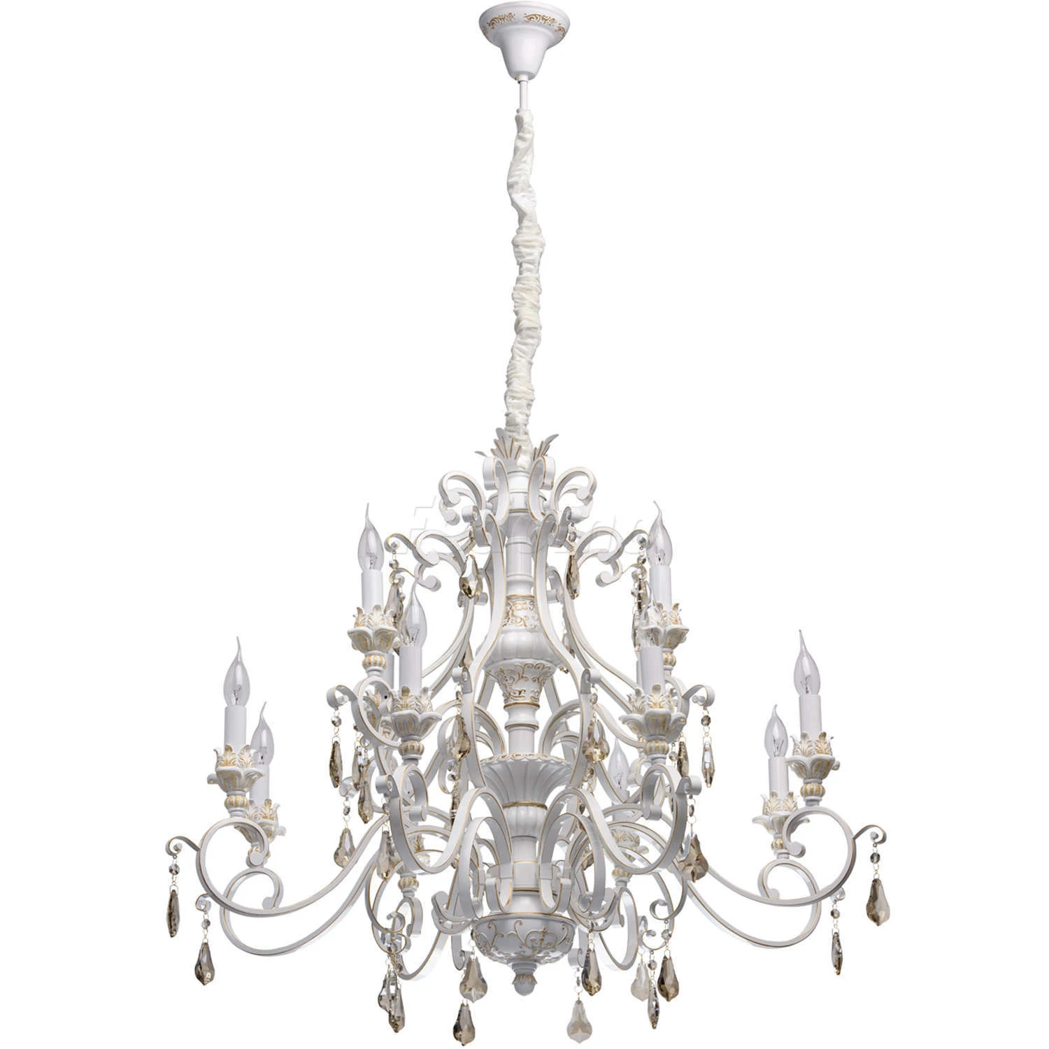 Дуэт стиля кантри и благородной классики делают дизайн люстры из коллекции \Версаче" особенно эффектным. Основание выполнено из металла и искусственного каучука нежного белого оттенка и дополнено патинированием в цвет золота. Роскошный оттенок и величеств""