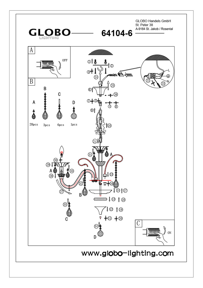 Люстра подвесная 64104-6 из серии Dunja от компании Globo устанавливается на металлический крюк. Классическая люстра в виде подсвечника прекрасно подойдет в качестве источника основного света для гостиной, холла, спальни, оформленных в стиле барокко. Основной цвет модели - хром, материал арматуры - металл. Модель оснащена цоколем E14, имеет 6 лампочек с общей мощностью 240W и напряжением 220V. Светильник поддерживает подключение диммера. Габариты: ширина - 520 мм, диаметр - 700 мм. Лучшая цена и условия доставки на Globo 64104-6 в интернет-магазине Fedomo.ru.