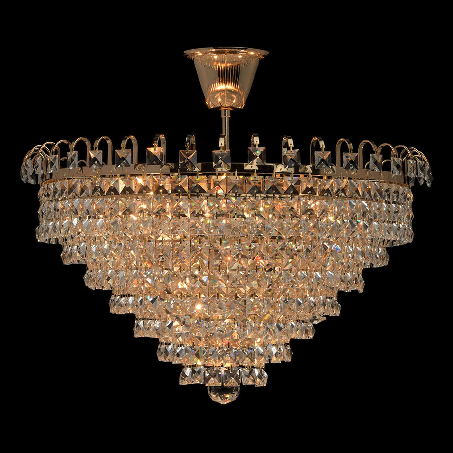 Люстра потолочная хрустальная 642011005 из серии Аделард от компании MW-Light устанавливается на металлический крюк. Классическая люстра прекрасно подойдет в качестве источника основного света для гостиной, спальни, оформленных в стиле арт-деко. Основной цвет модели - золото, материал арматуры - металл. Люстра имеет 1 декоративный плафон со свечением вниз, материал изготовления - прозрачный хрусталь. Модель оснащена цоколем E14 (5xE14), имеет 5 лампочек с общей мощностью 300W и напряжением 220V. Светильник имеет цветовую температуру 2700К и поддерживает подключение диммера. Габариты: высота - 430 мм, диаметр - 500 мм. Лампочки в комплект не входят. Лучшая цена и условия доставки на MW-Light 642011005 в интернет-магазине Fedomo.ru.