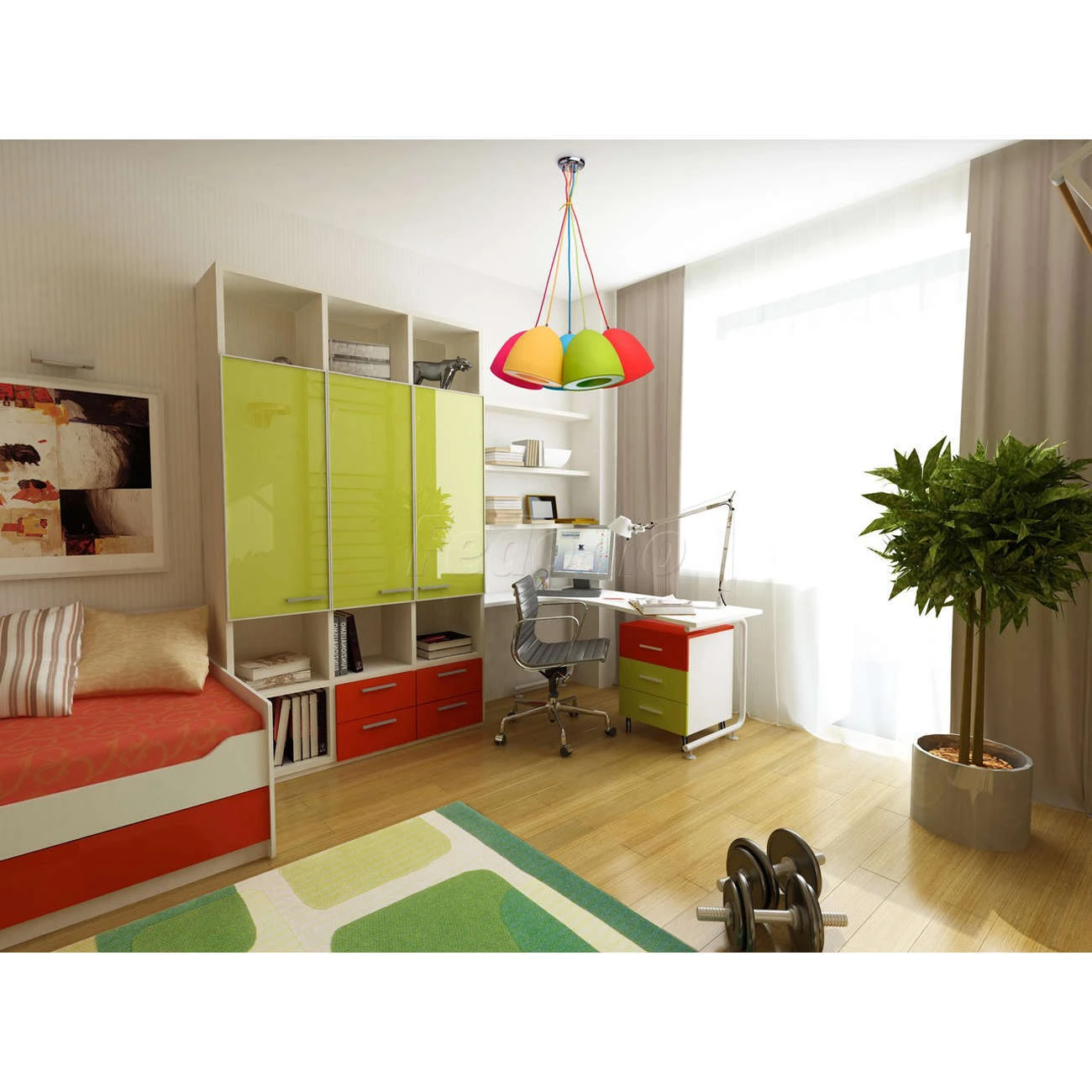 Яркий светильник из коллекции «Зиген» идеален для детской или подростковой комнаты. Радужные абажуры из акрила дополнены полупрозрачными и акриловыми вставками. Расположенные на цветных шнурах в тон плафонам, они создают необычный дуэт, который способен оживить и разнообразить даже самую скучную обстановку.