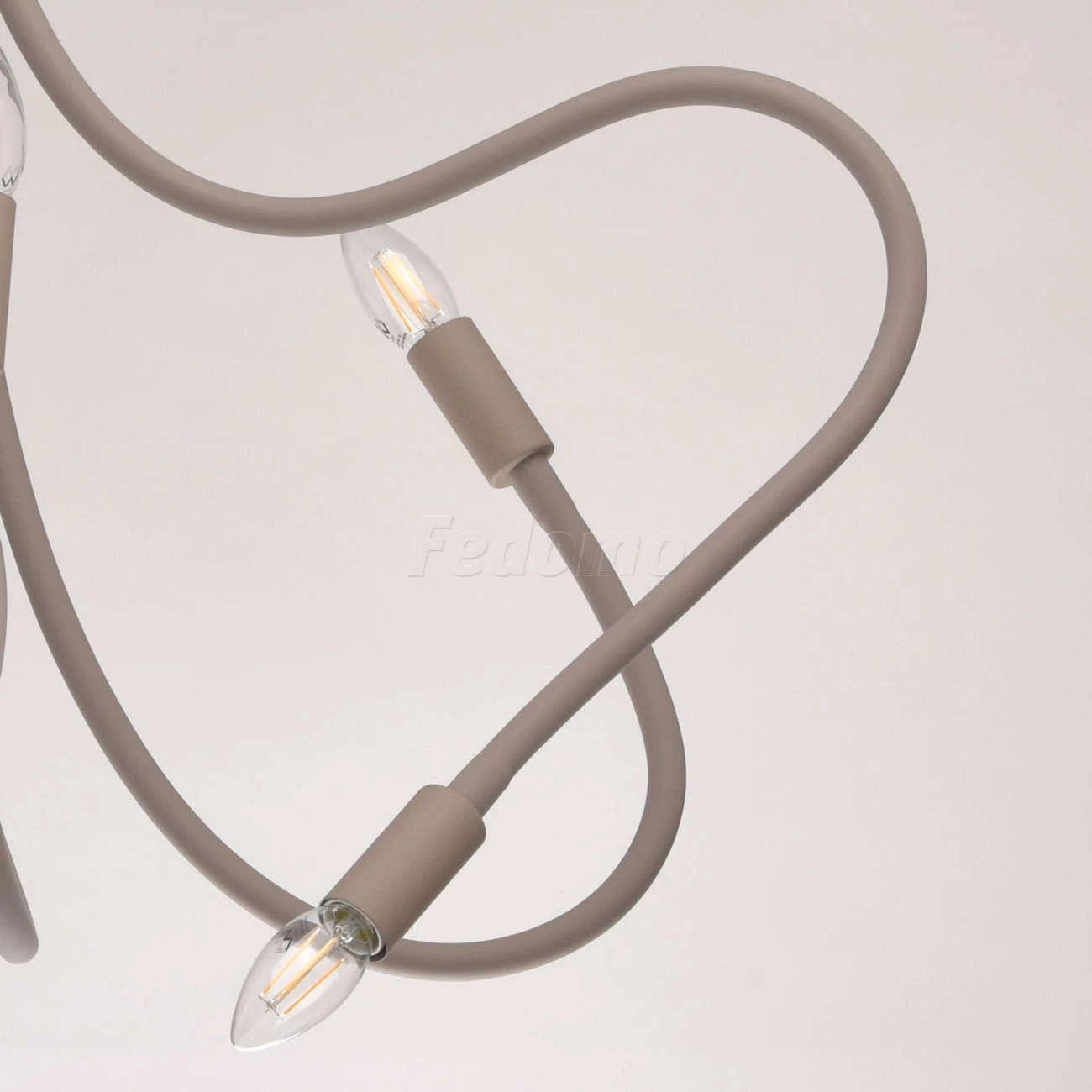 Основание из металла светильника \Зиген" представлено в двух цветовых вариациях – матовый чёрный и трендовый серо-бежевый оттенок. В тон основанию выполнены и силиконовые рожки, плавно переходящие в плафоны. Рожки светильника легко гнутся во всех направле""