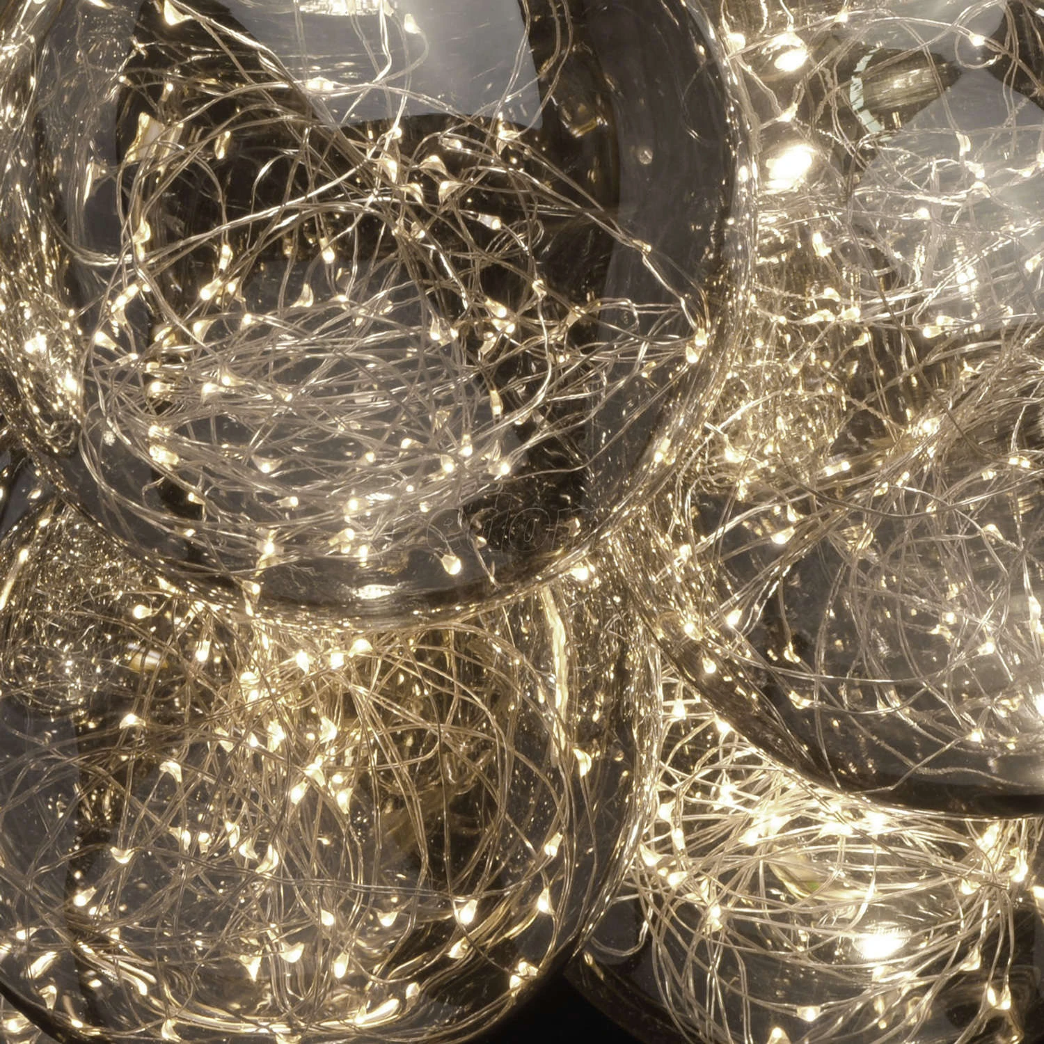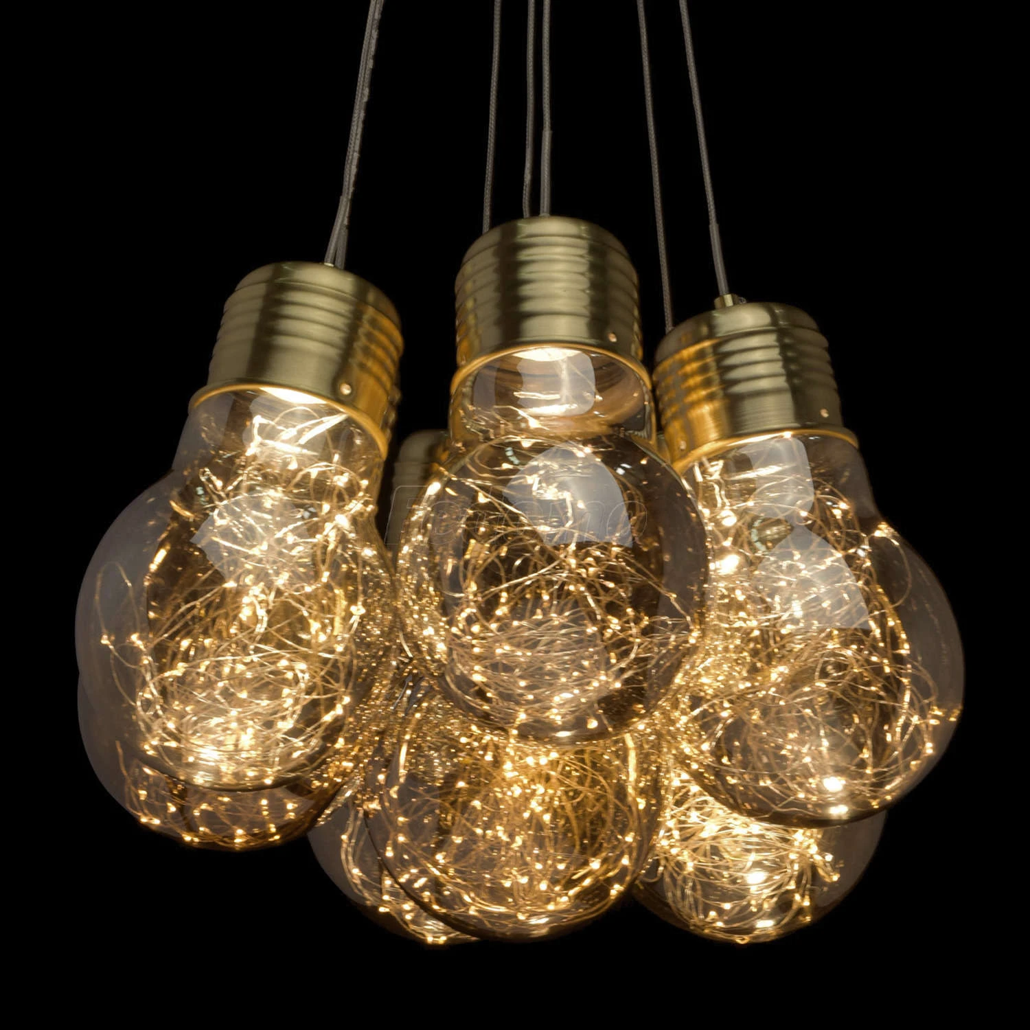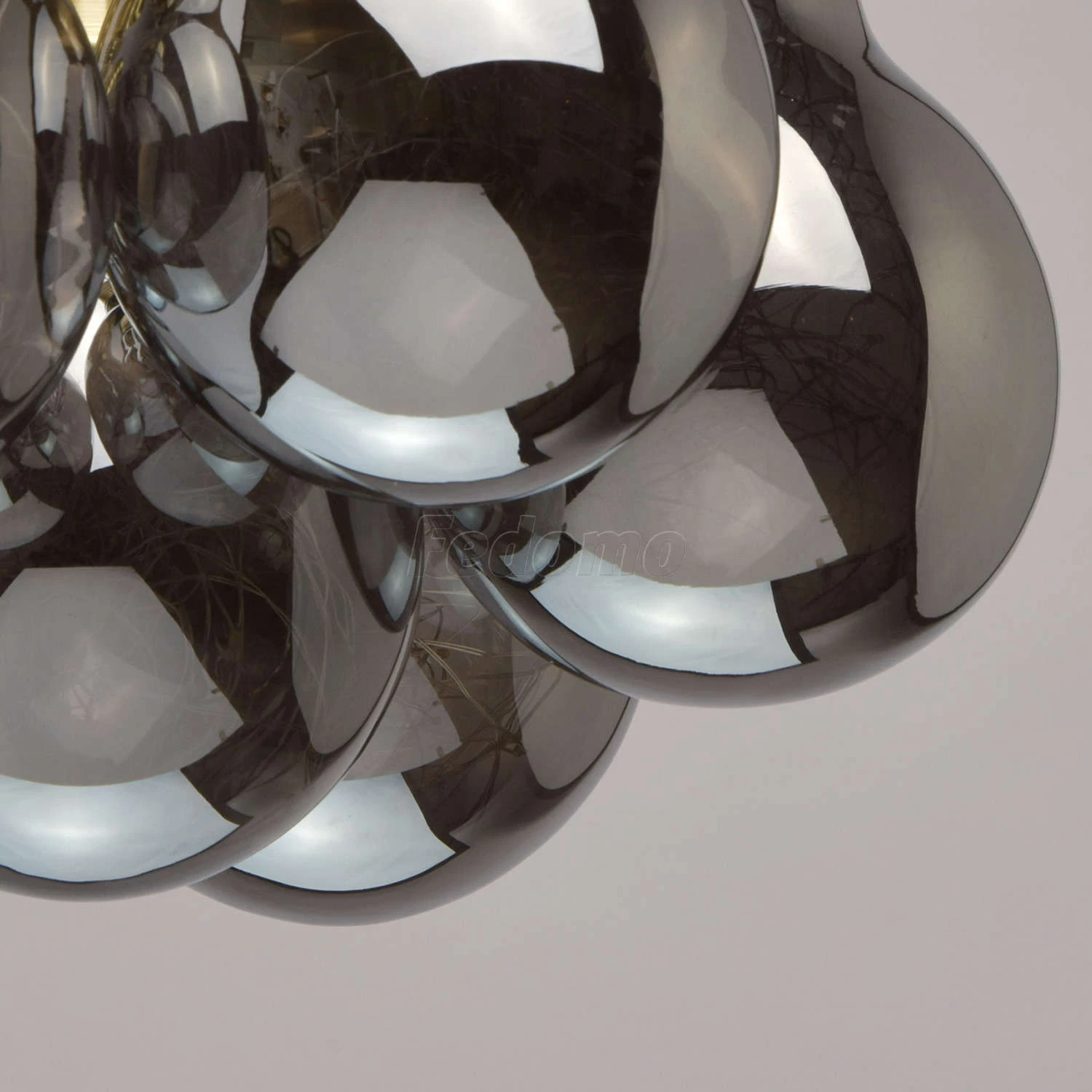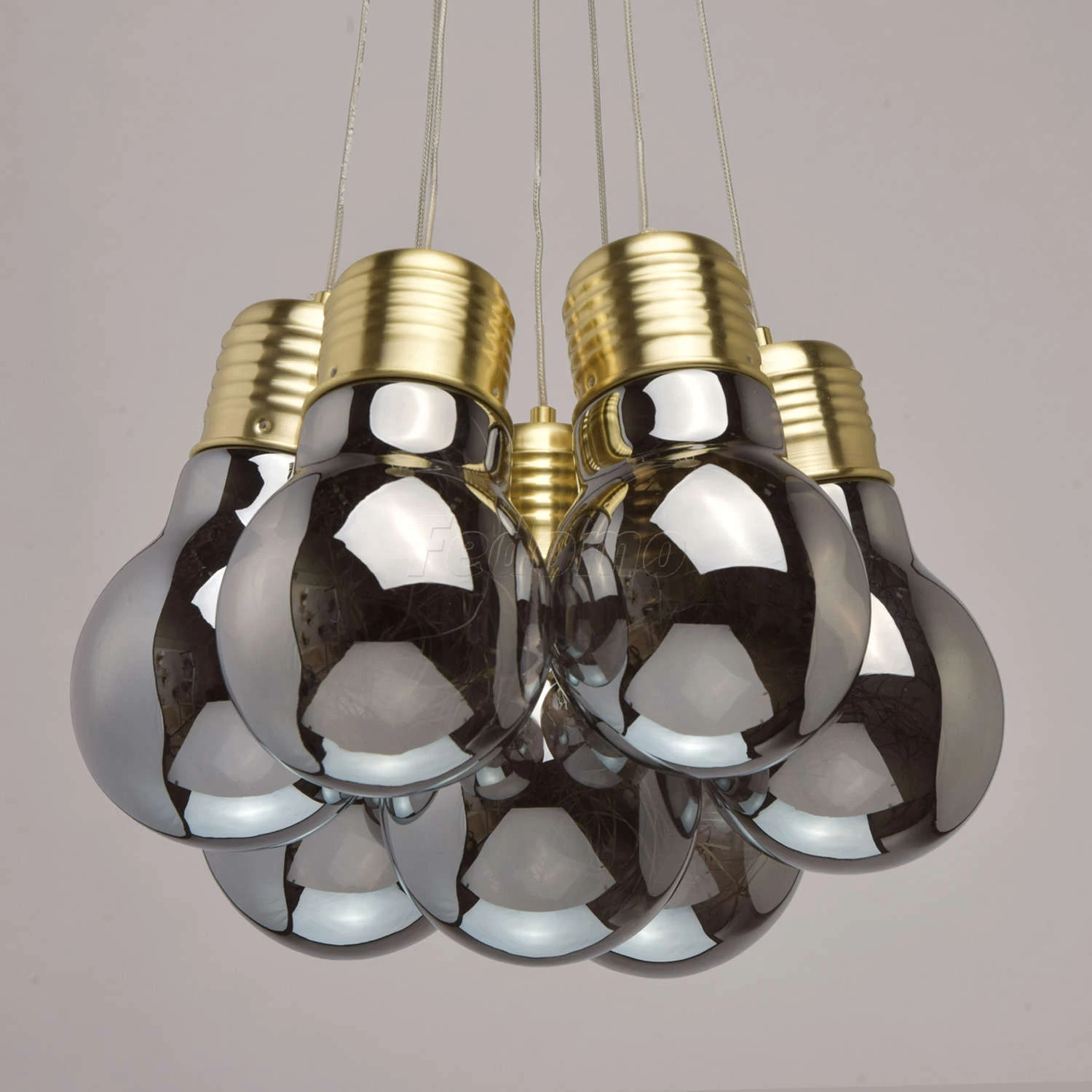 Оригинальный дизайн люстры из коллекции «Фрайталь» оценят смелые новаторы и любители нестандартных решений в интерьере. Металлическое основание цвета золота подчеркнуто оригинальными плафонами в форме лампочек из дымчатого стекла. Помимо этого, светильник