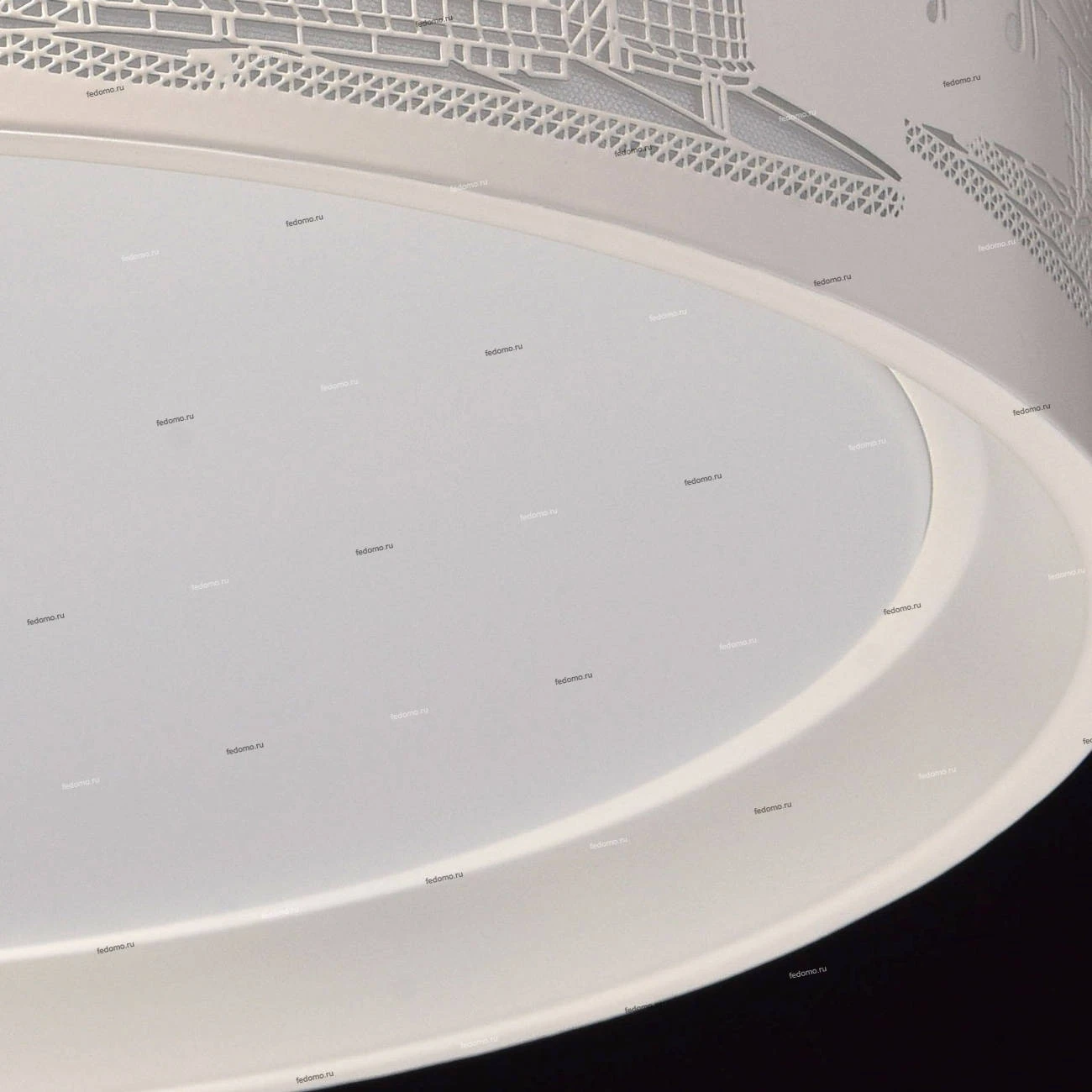 Изящная потолочная люстра из коллекции «Ривз» будет прекрасно смотреться в современном интерьере. Белое металлическое основание дополнено элегантным абажуром из металла того же оттенка. Он украшен резным художественным рисунком, созданным по мотивам сидне