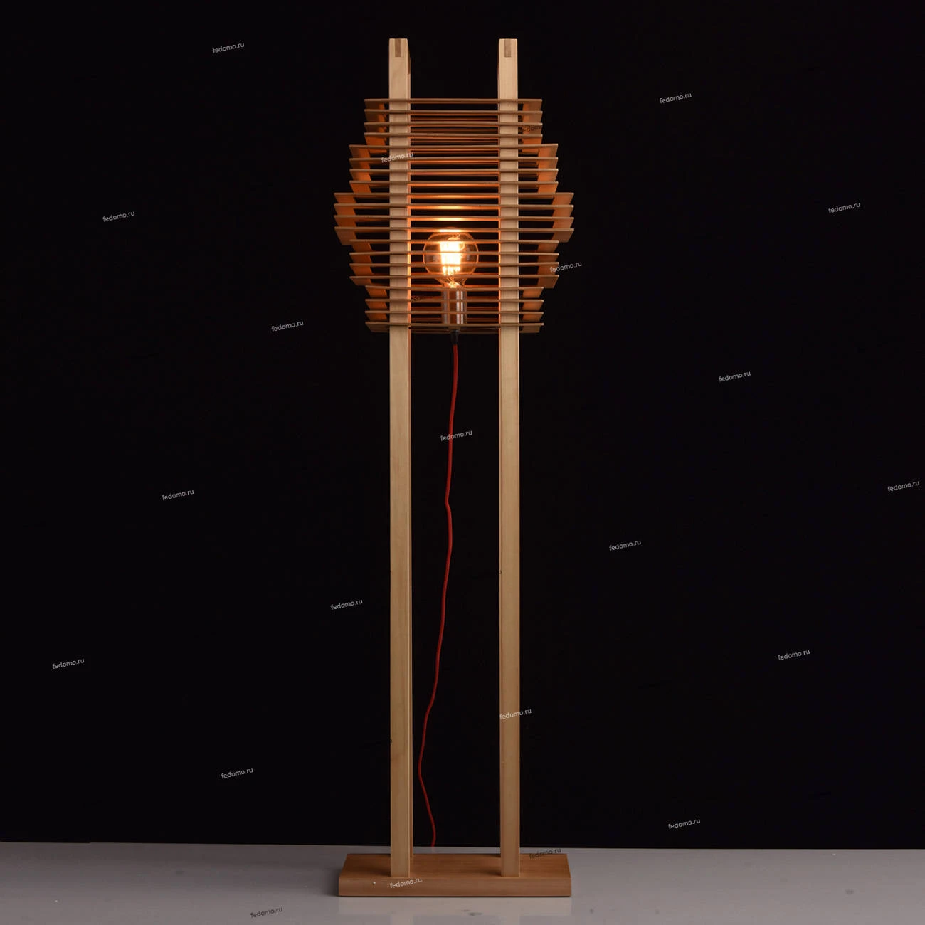 Оригинальный дизайн светильника из коллекции «Борнео» отличает сочетание необычных форм и материалов. Основание и плафон выполнены из натурального дерева, а благодаря стильному воплощению торшер выделяется среди прочих представителей настольного освещения