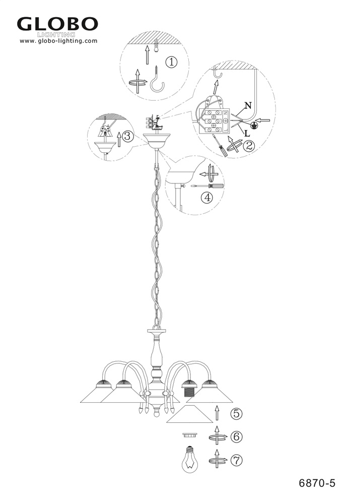 Люстра подвесная 6870-5 из серии Landlife от компании Globo устанавливается на металлический крюк. Классическая люстра прекрасно подойдет в качестве источника основного света для гостиной, прихожей и коридора, кафе, кабинета. Основной цвет модели - бронза, материал арматуры - металл. Люстра имеет 5 плафонов со свечением вниз, материал изготовления - матовое стекло. Модель оснащена цоколем E27 (5хE27), имеет 5 лампочек с общей мощностью 300W и напряжением 220V. Светильник поддерживает подключение диммера. Габариты: высота - 1500 мм, диаметр - 680 мм. Лампочки в комплект не входят. Лучшая цена и условия доставки на Globo 6870-5 в интернет-магазине Fedomo.ru.