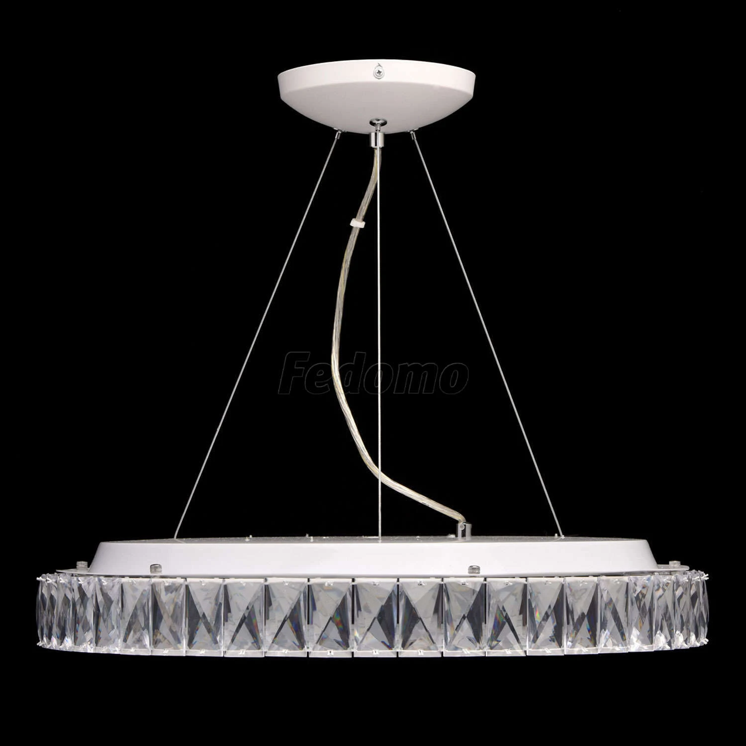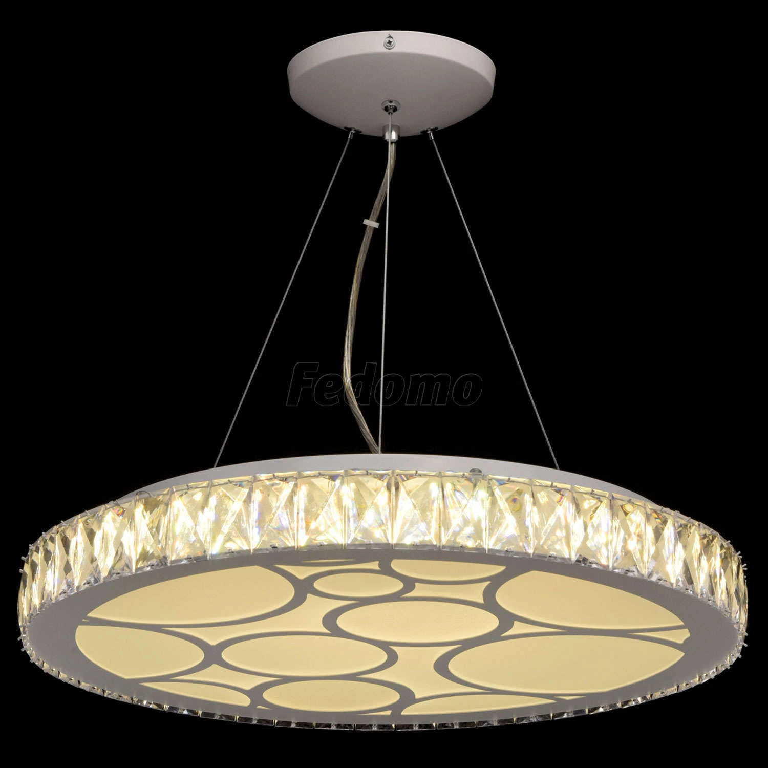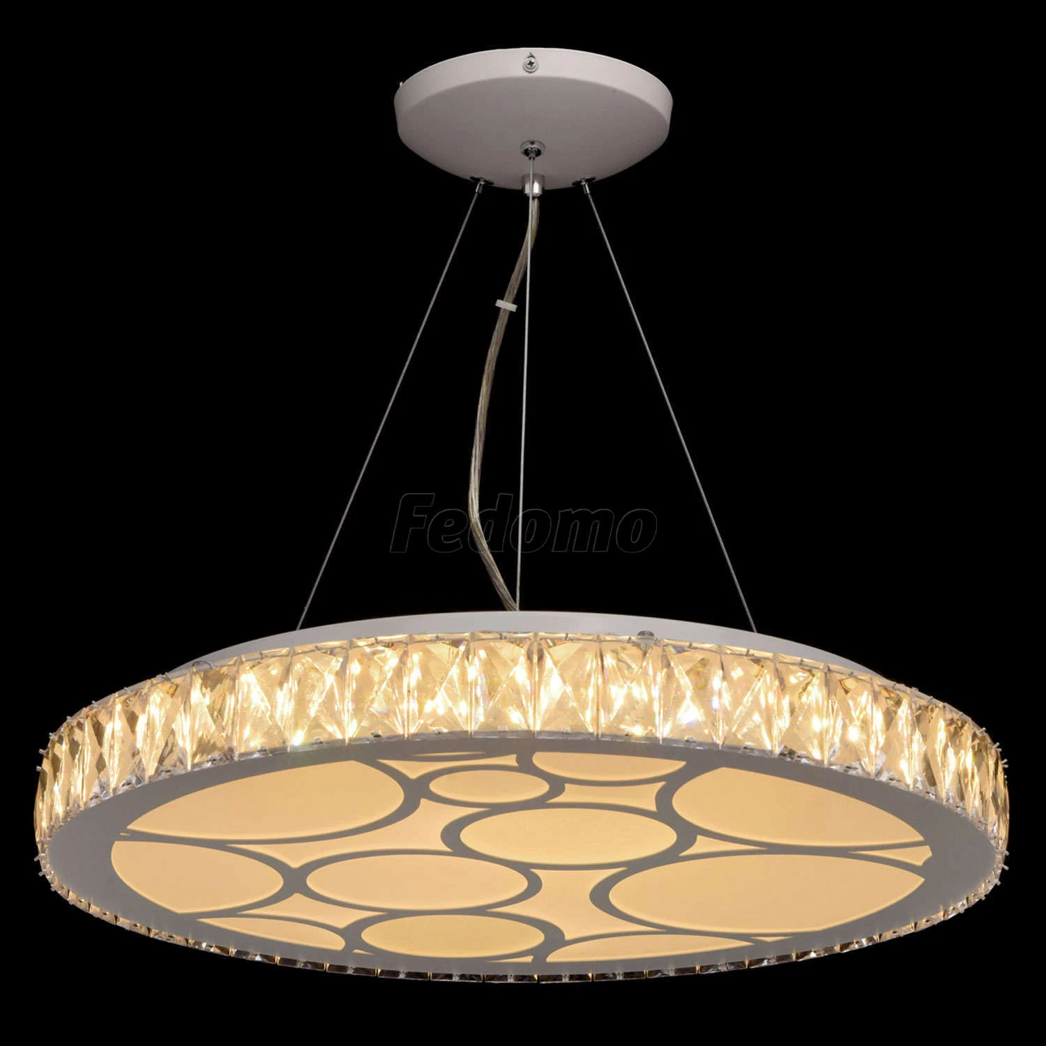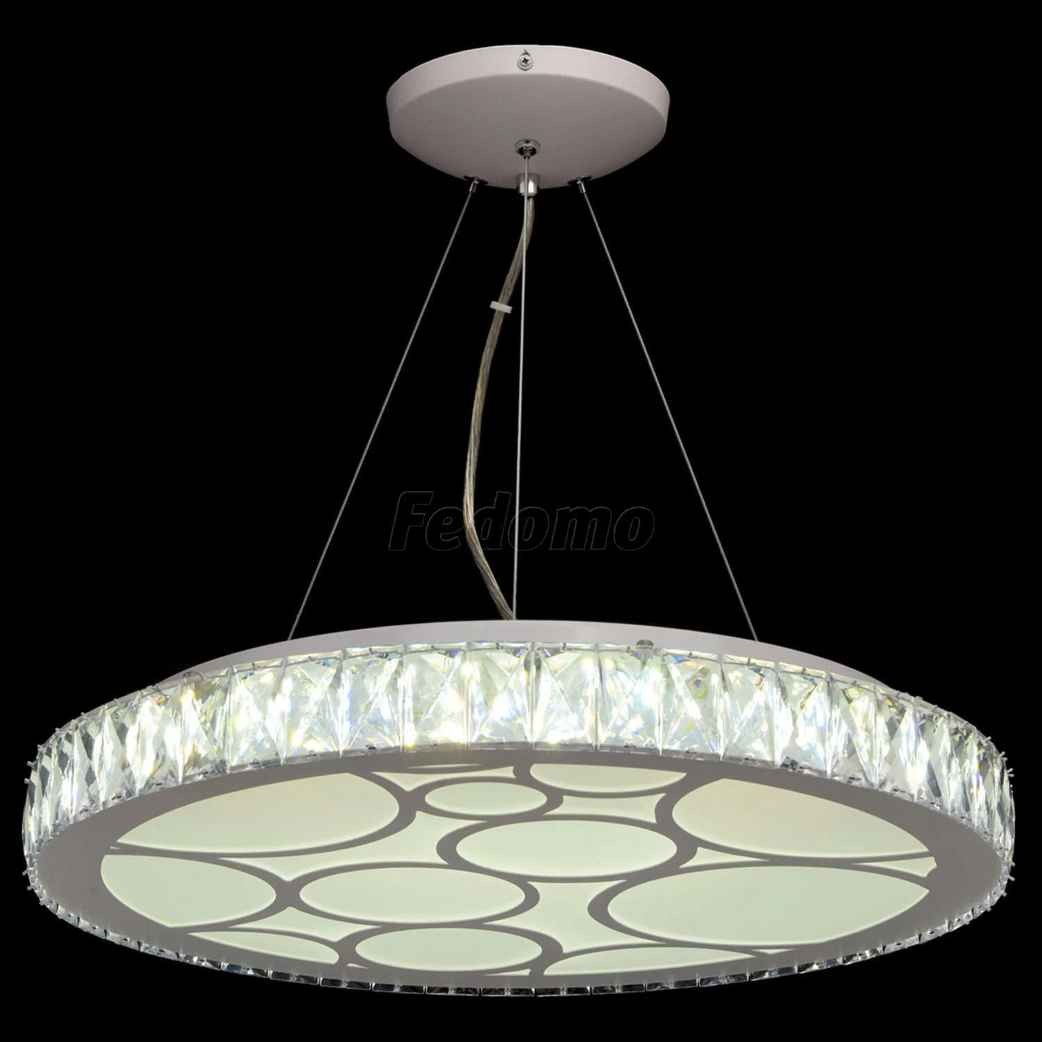 Люстра из коллекции «Фризанте» радует изящным сочетанием богатой отделки и минималистичного дизайна. Белое металлическое основание дополнено широким плафоном из прозрачного акрила. Источники света-светодиоды скрыты под рассеивателем из матового стекла с г