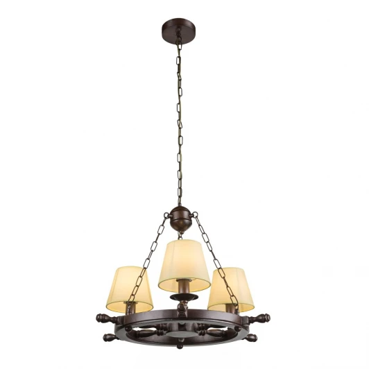 Люстра подвесная 69025-3 из серии 69025-3 от компании Globo устанавливается на монтажную пластину. Классическая люстра со штурвалом прекрасно подойдет в качестве источника основного света для гостиной, кабинета, кухни, прихожей и коридора, спальни, оформленных в стиле морской. Основной цвет модели - бронза, материал арматуры - металл. Люстра имеет 3 абажура, материал изготовления - ткань. Модель оснащена цоколем E14 (3xE14), имеет 3 лампочки с общей мощностью 180W и напряжением 220V. Светильник поддерживает подключение диммера. Габариты: высота - 1000 мм, диаметр - 560 мм. Лампочки в комплект не входят. Лучшая цена и условия доставки на Globo 69025-3 в интернет-магазине Fedomo.ru.