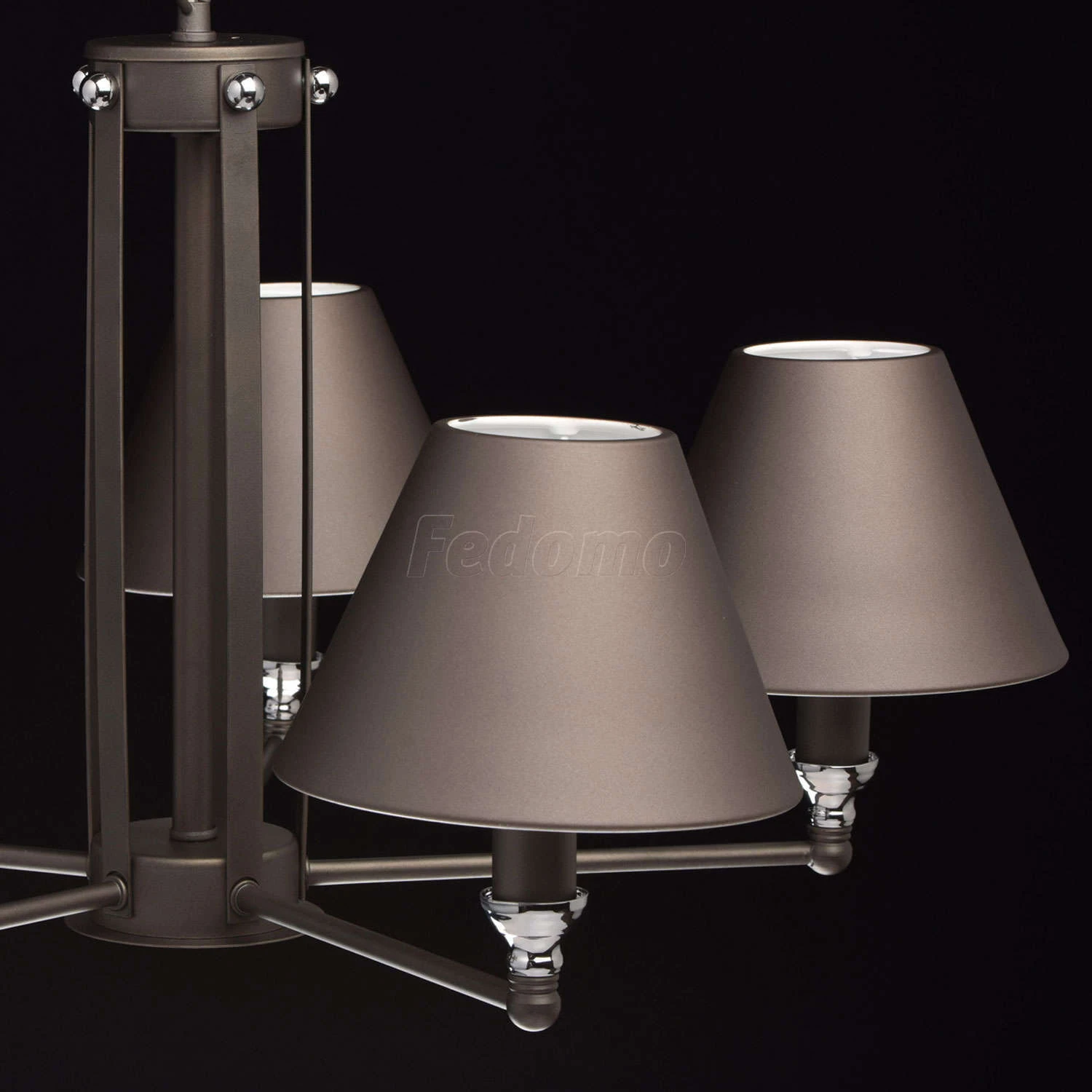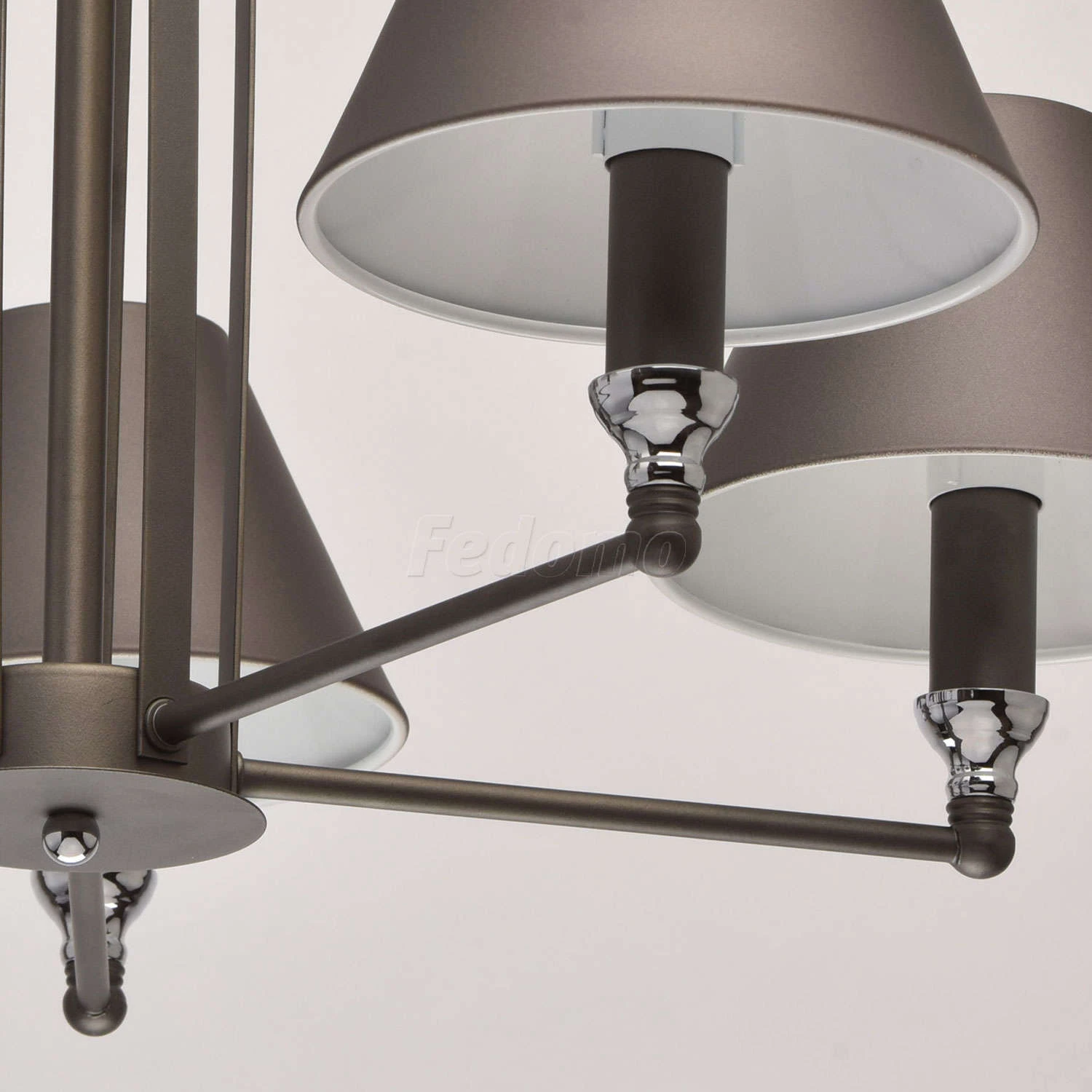 Стильный дизайн люстры из коллекции «Таун» придется по душе любителям современных решений в интерьере. Матовое основание из металла выполнено в трендовом графитовом цвете. Под стать основанию - минималистичные абажуры того же оттенка. Изнутри они окрашены