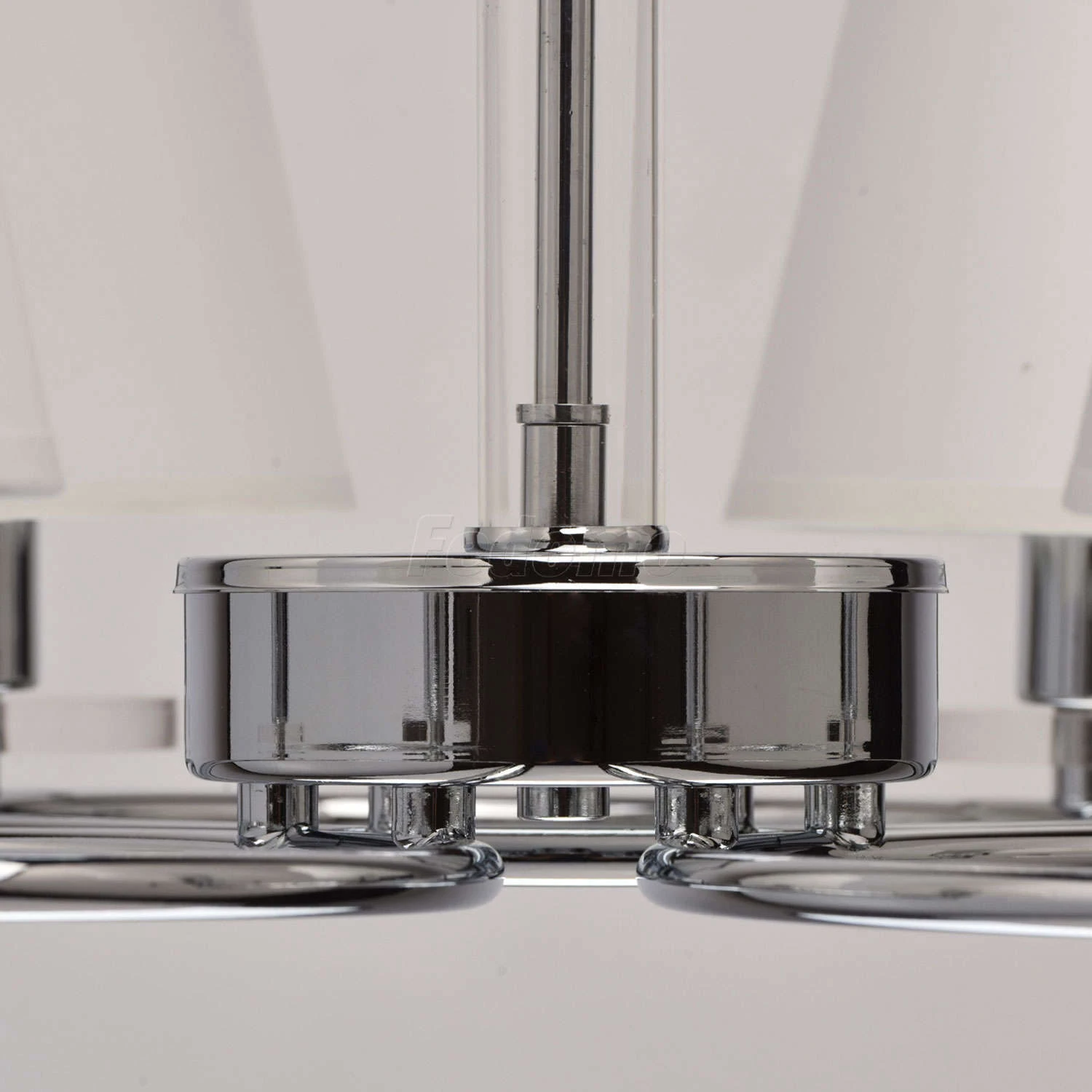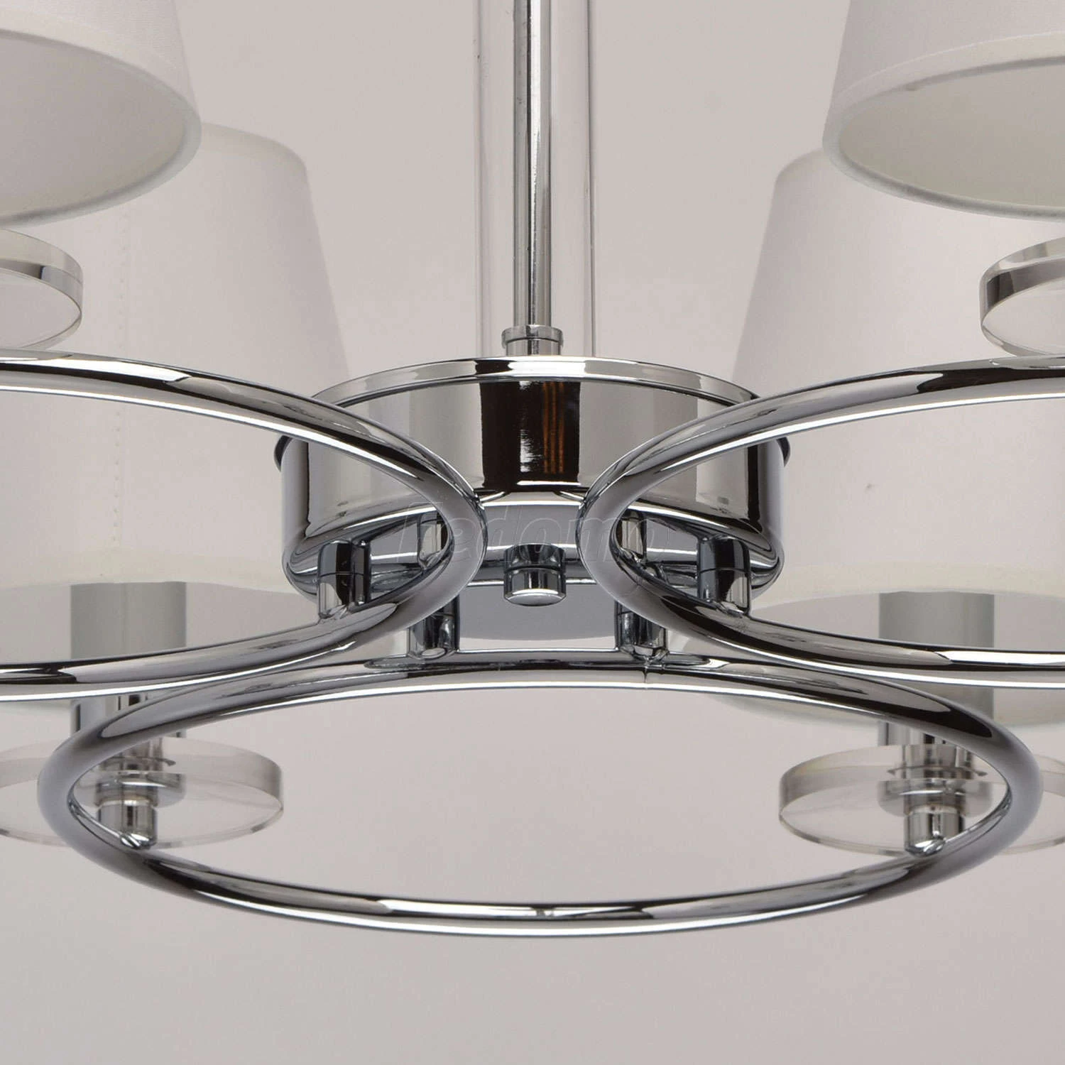 Нетривиальный дизайн люстры из коллекции «Онтарио» станет эффектным дополнением современных интерьеров. Хромированное металлическое основание подчеркнуто оригинальными рожками, выполненными в геометрической форме кругов. Каждый из них вмещает по два ткане