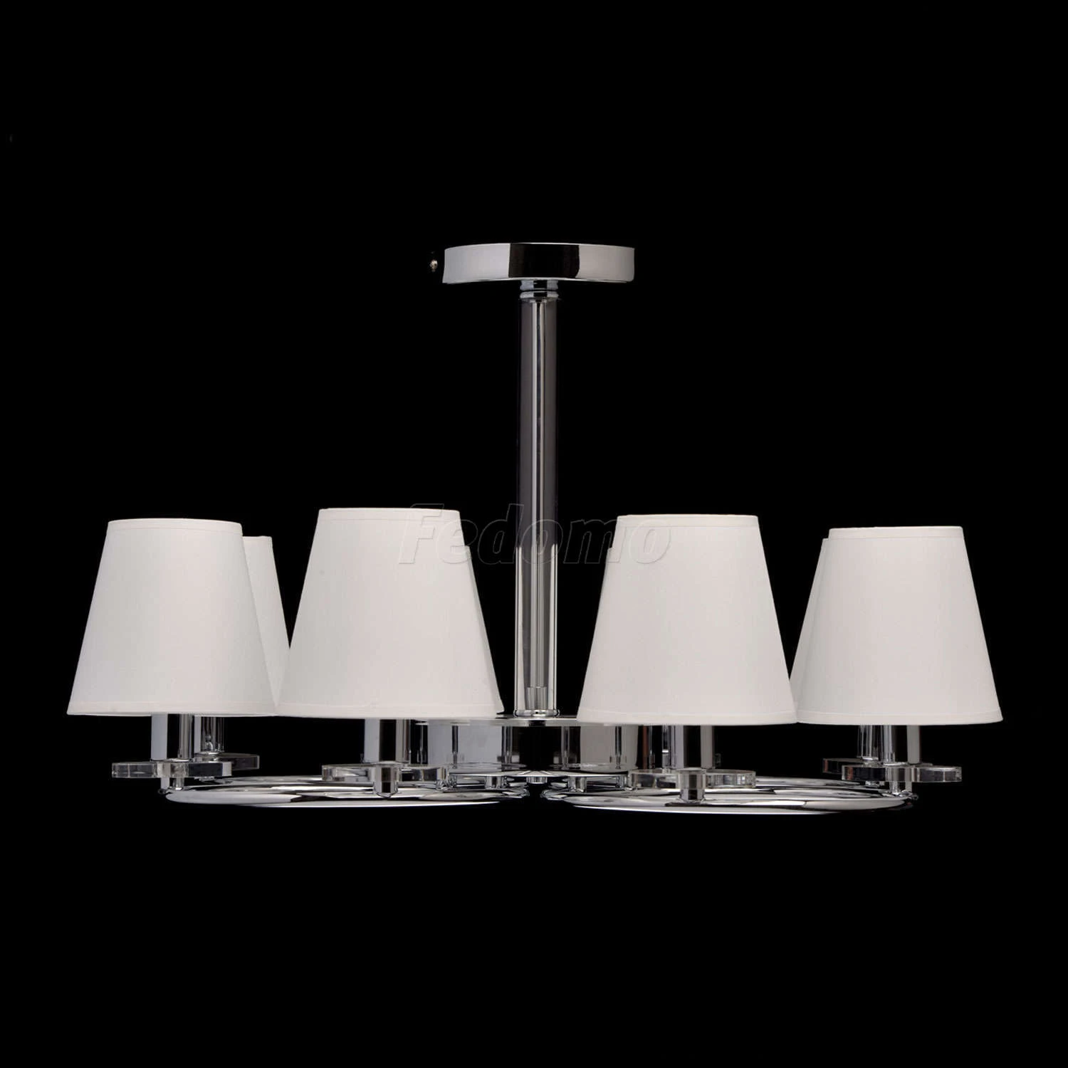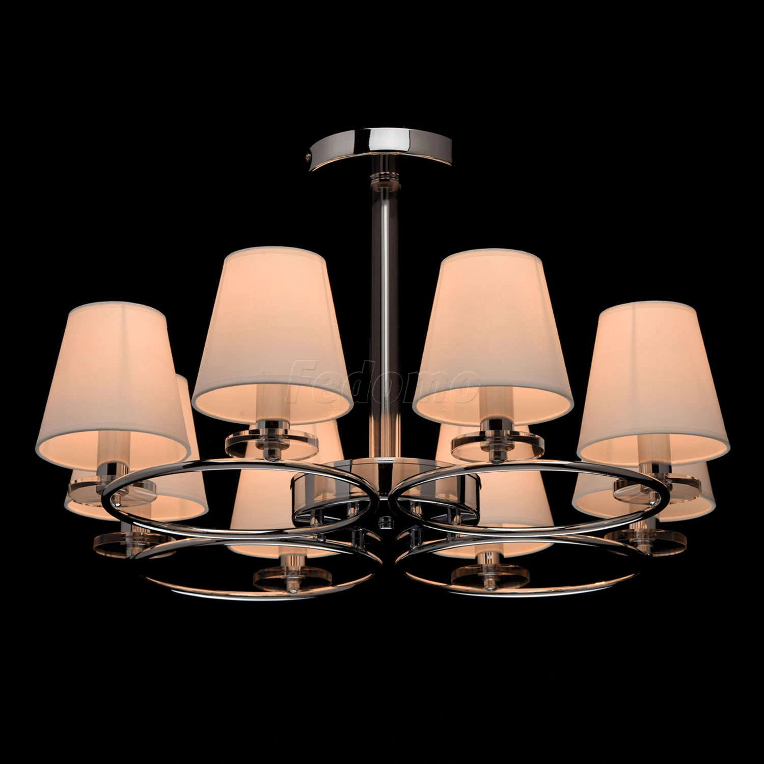 Нетривиальный дизайн люстры из коллекции «Онтарио» станет эффектным дополнением современных интерьеров. Хромированное металлическое основание подчеркнуто оригинальными рожками, выполненными в геометрической форме кругов. Каждый из них вмещает по два ткане