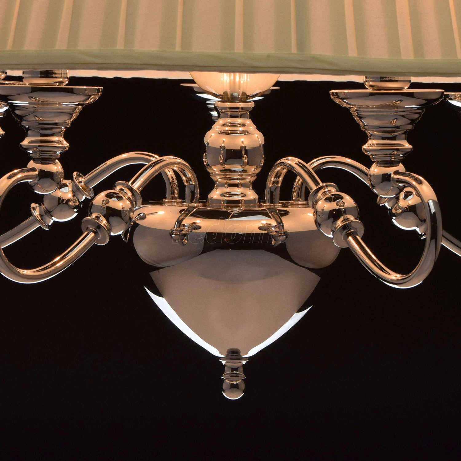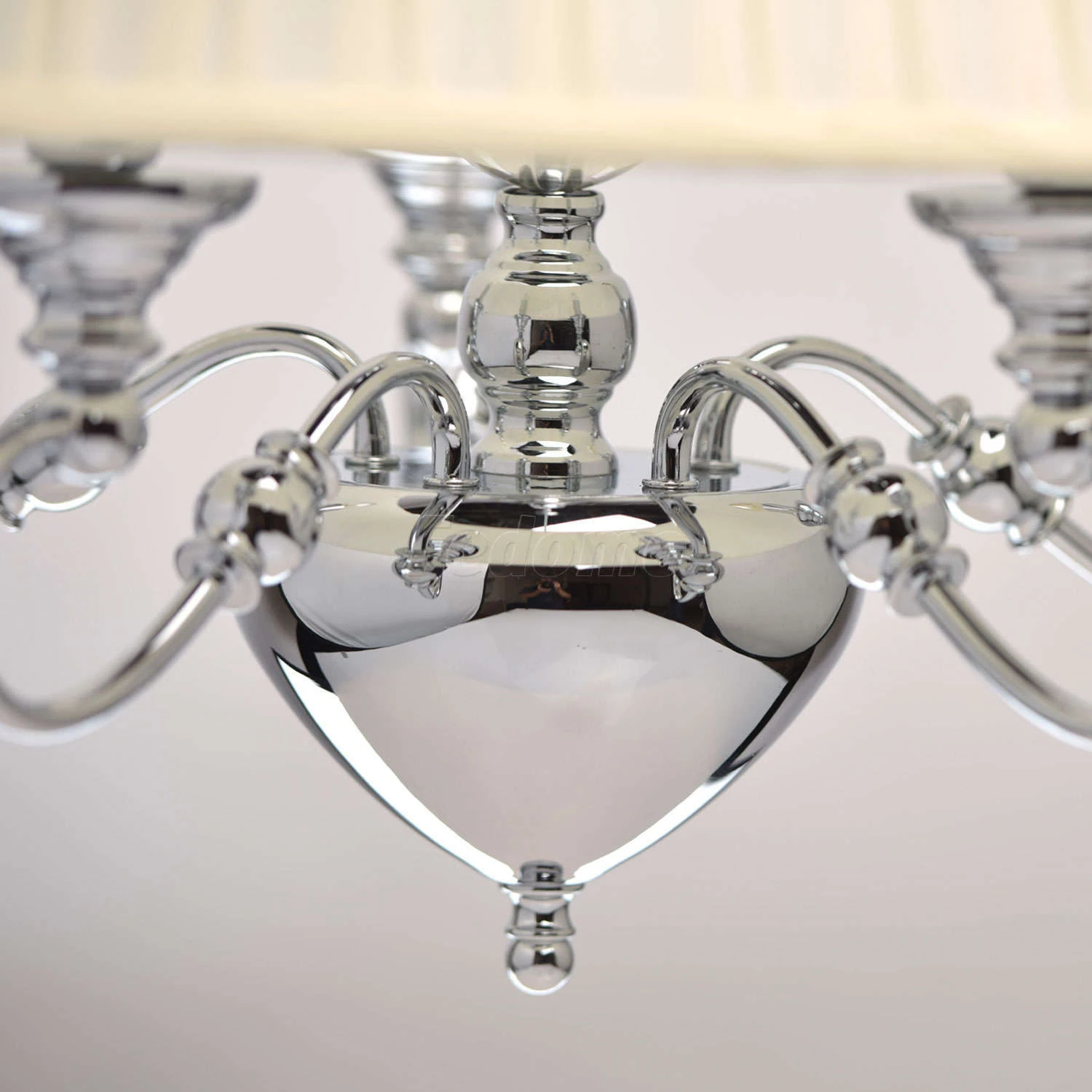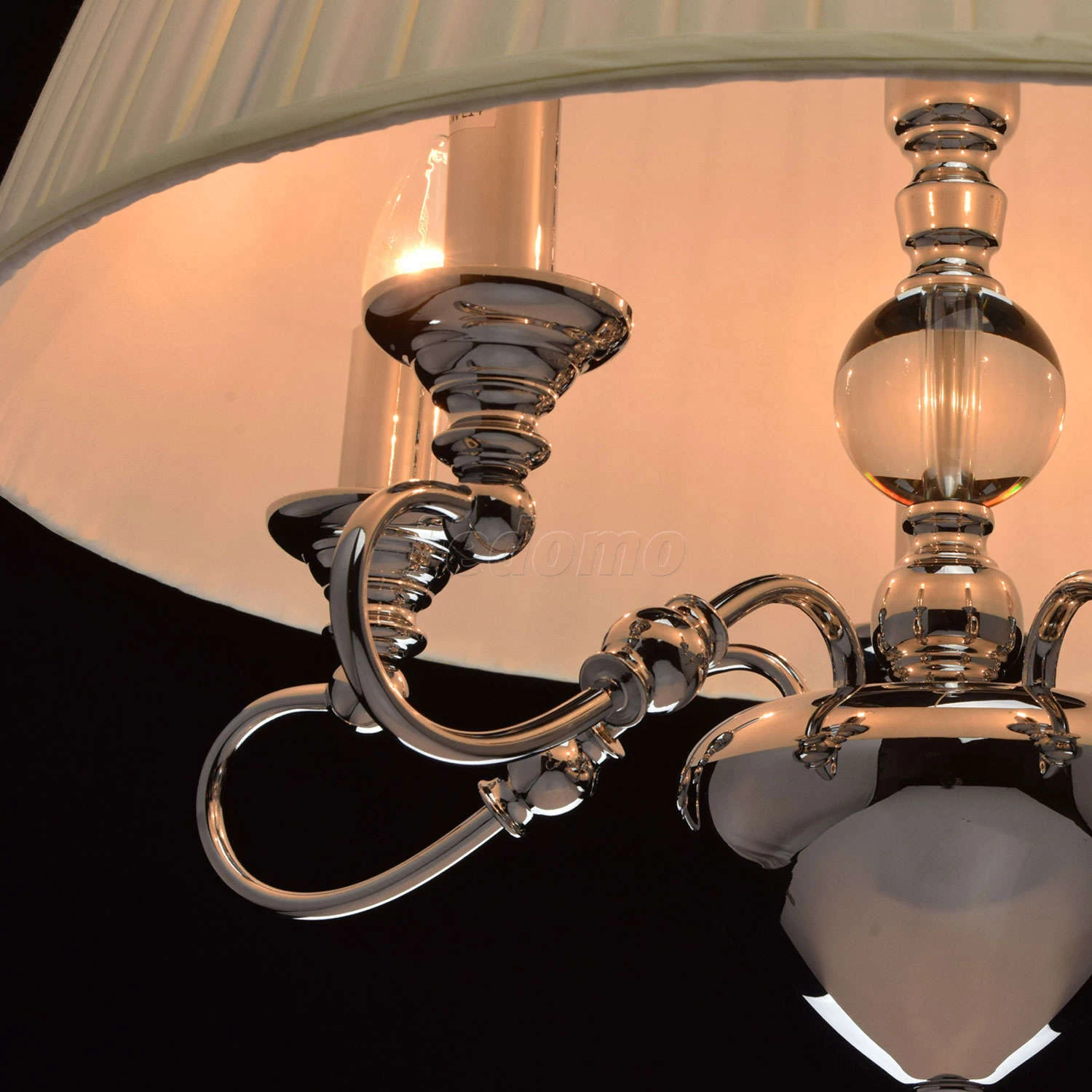 Элегантная люстра из коллекции «Онтарио» понравится любителям эклектичных решений: в ней сочетаются классическое благородство и восточные мотивы форм. Хромированное металлическое основание подчеркнуто изящными рожками оригинальной формы и нежным текстильн