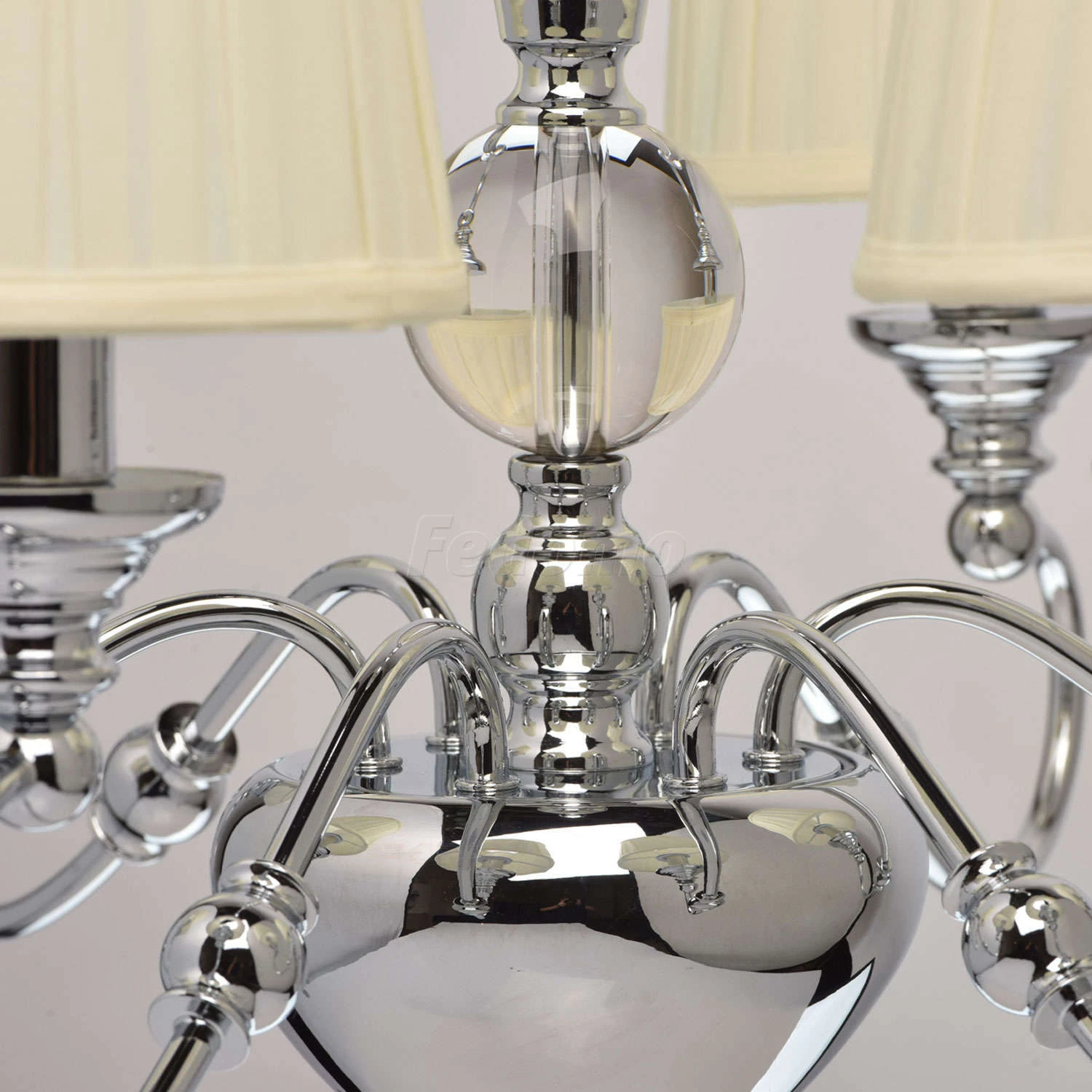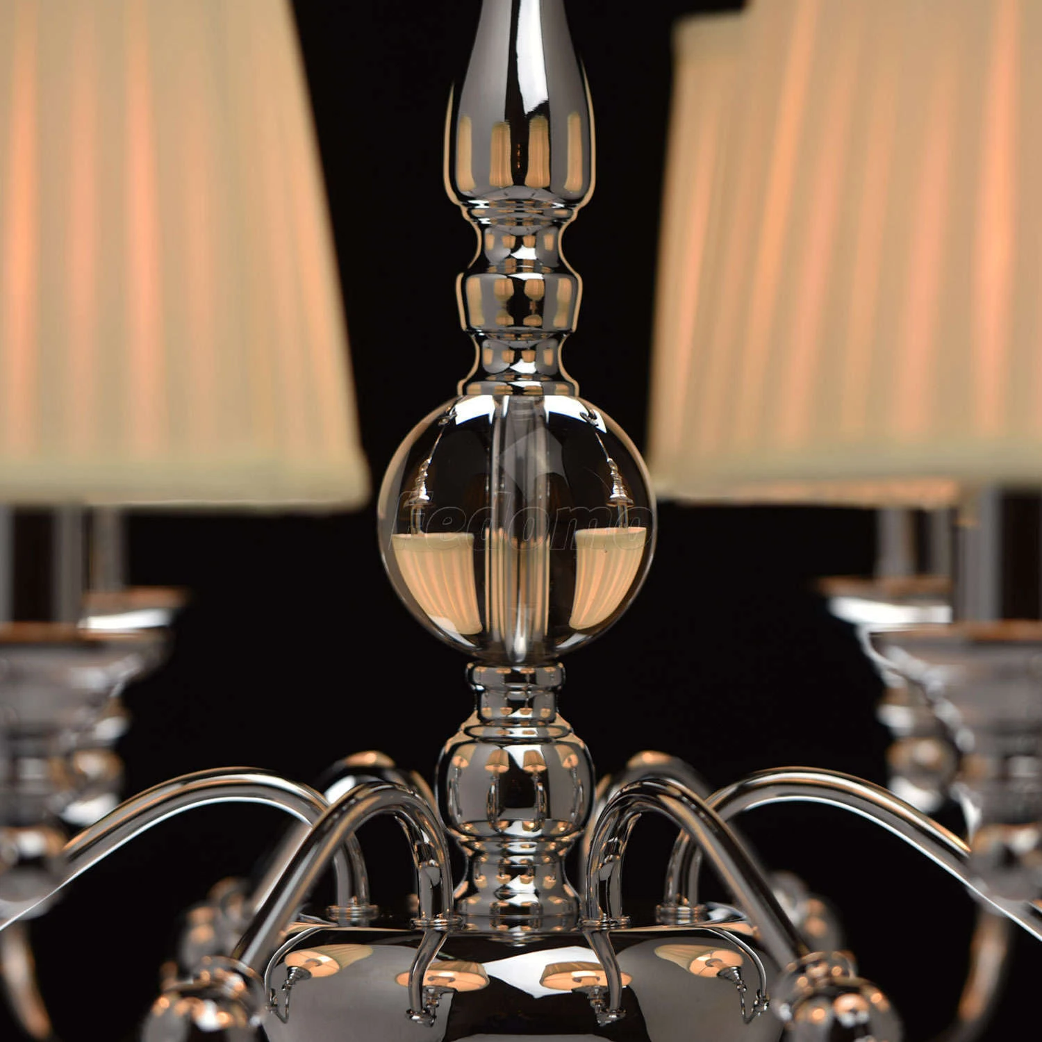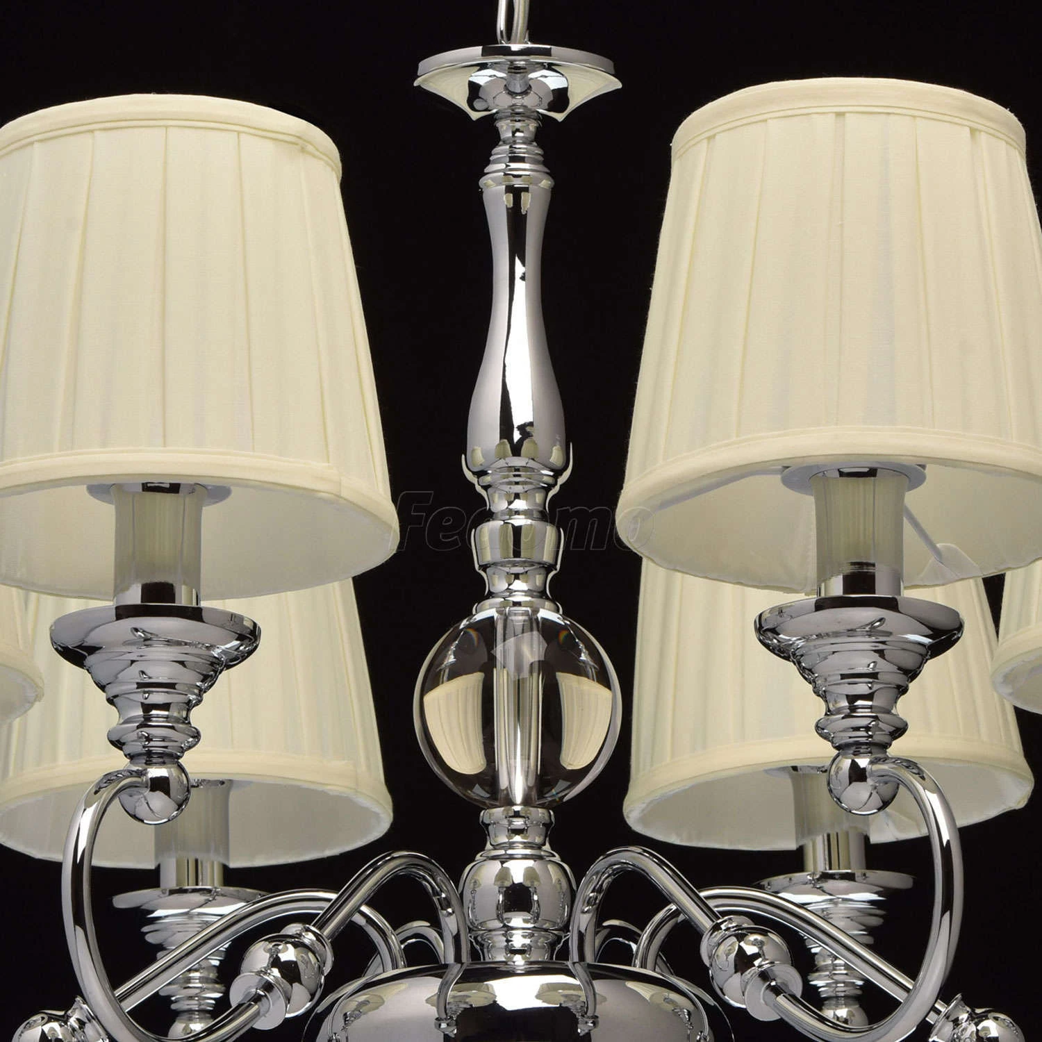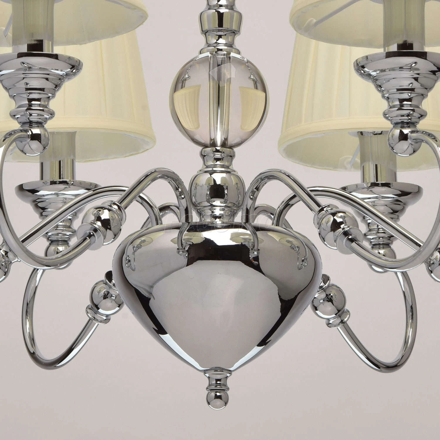 Элегантная люстра из коллекции «Онтарио» понравится любителям эклектичных решений: в ней сочетаются классическое благородство и восточные мотивы форм. Хромированное металлическое основание подчеркнуто изящными рожками оригинальной формы и нежными текстиль