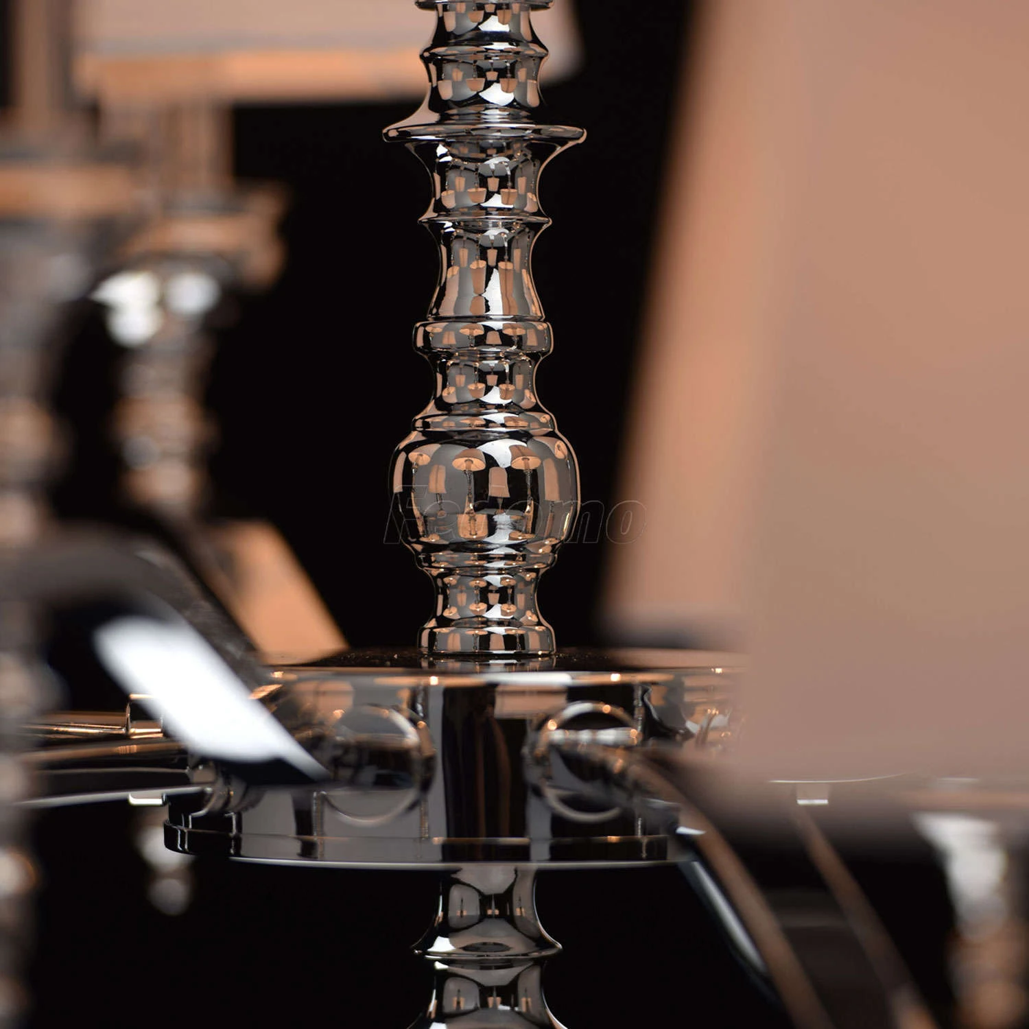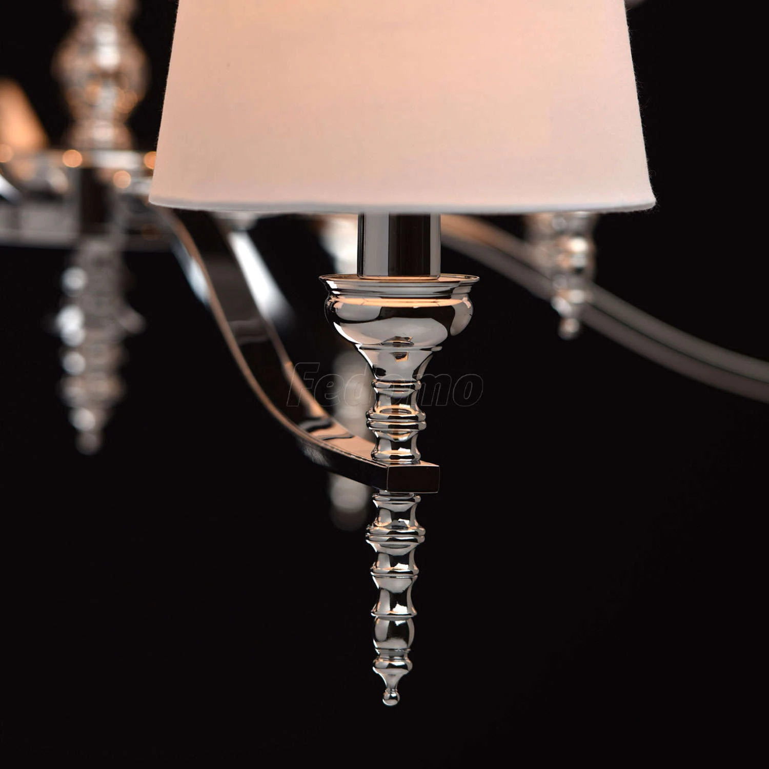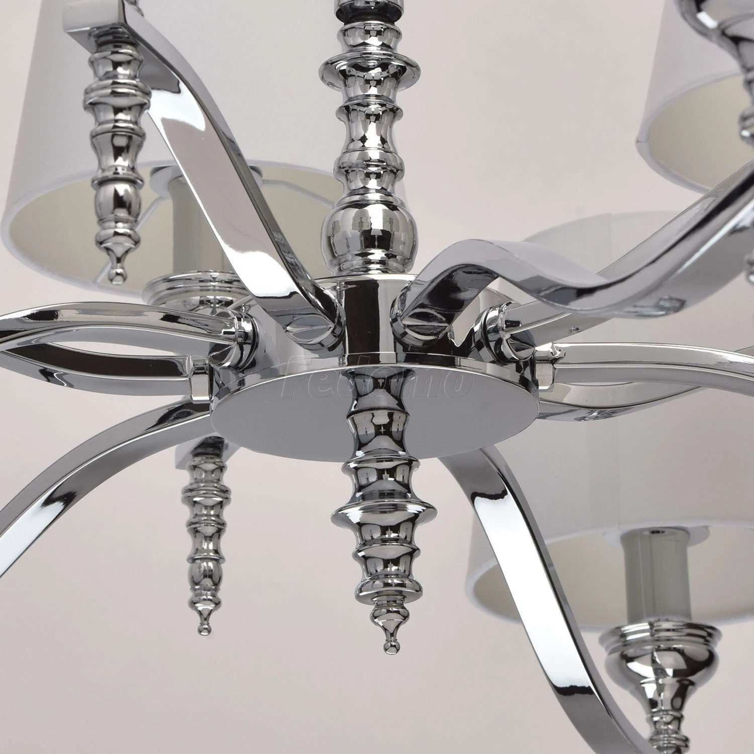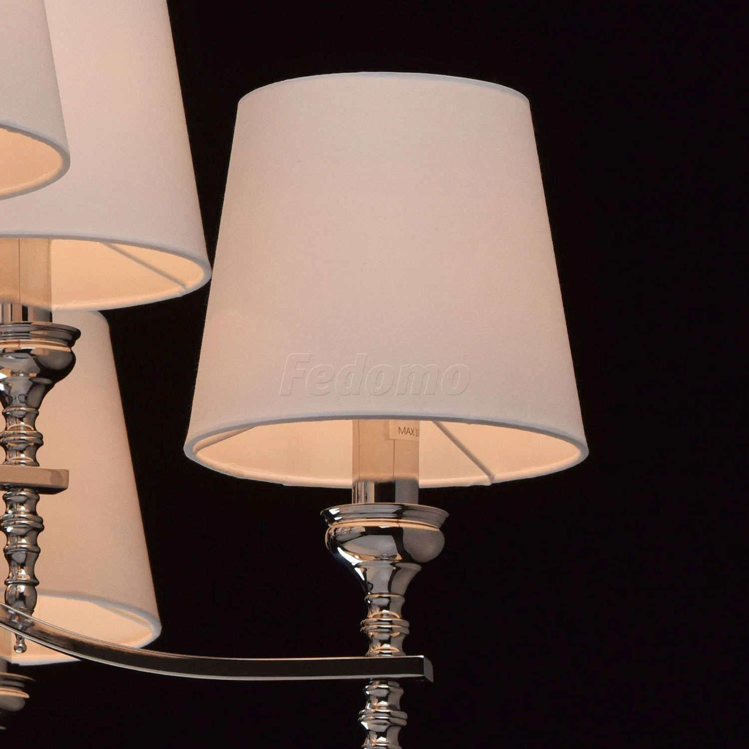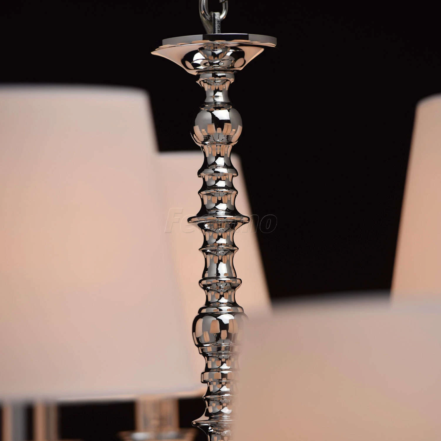 Любителям утонченных и нетривиальных композиций придется по душе люстра из коллекции «Онтарио». Основание выполнено из металла цвета хрома и создает гармоничный дуэт с элегантными тканевыми абажурами белого оттенка. Интересен оригинальный декор в виде кру