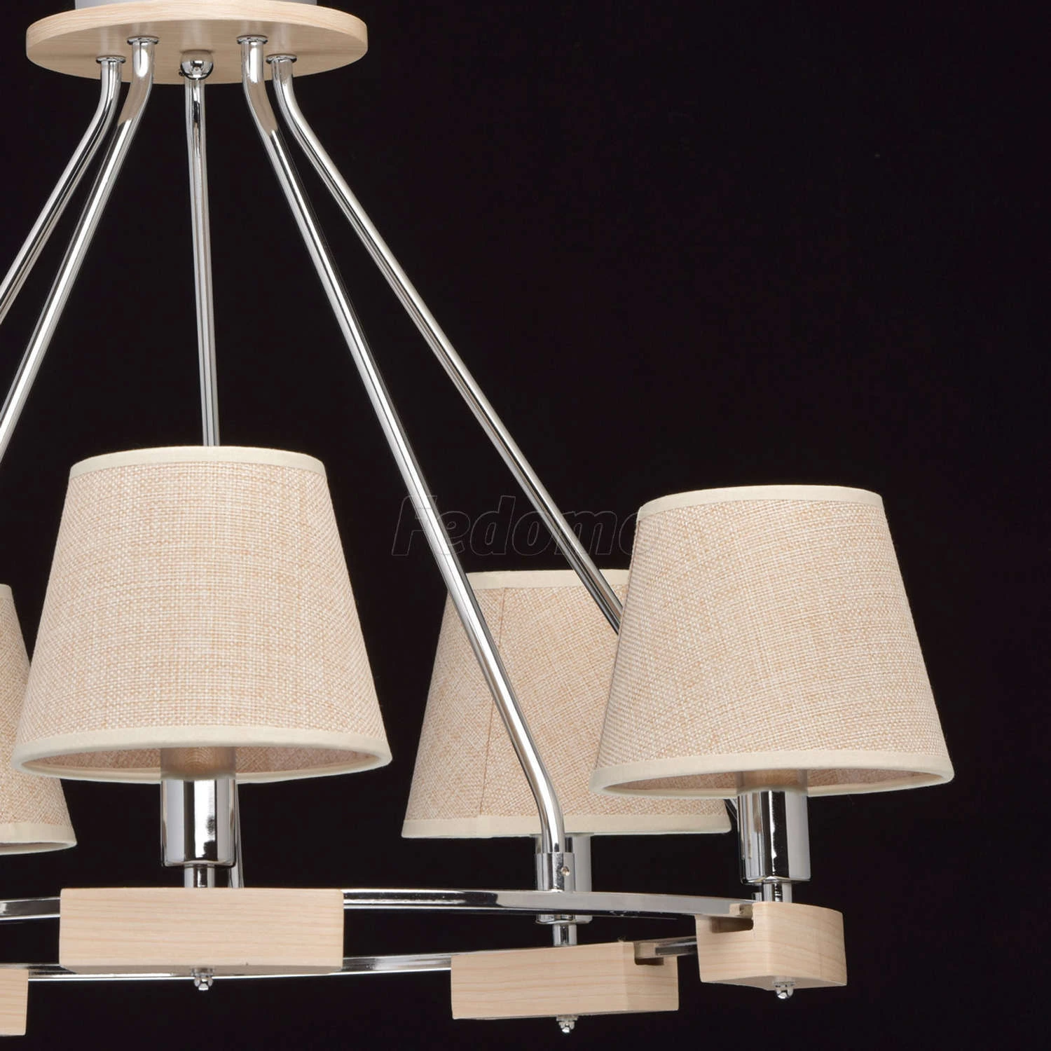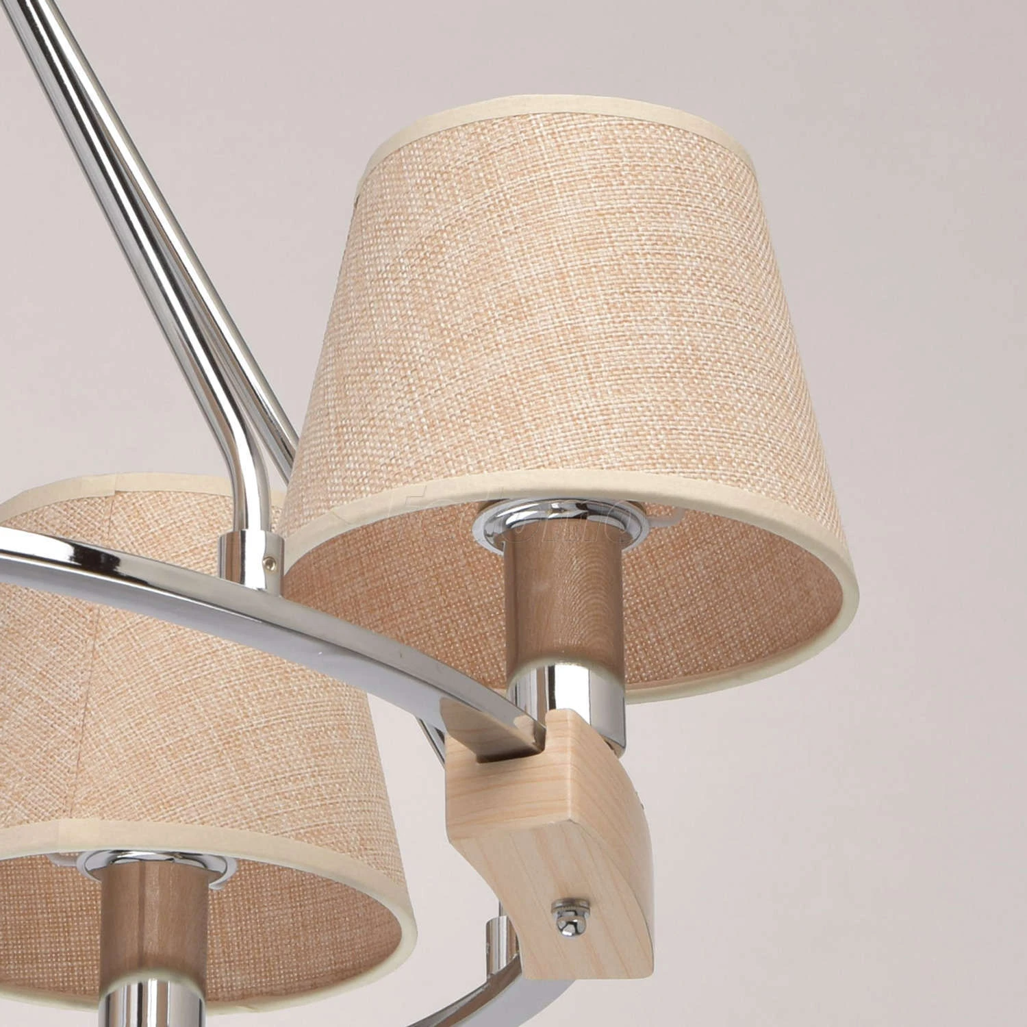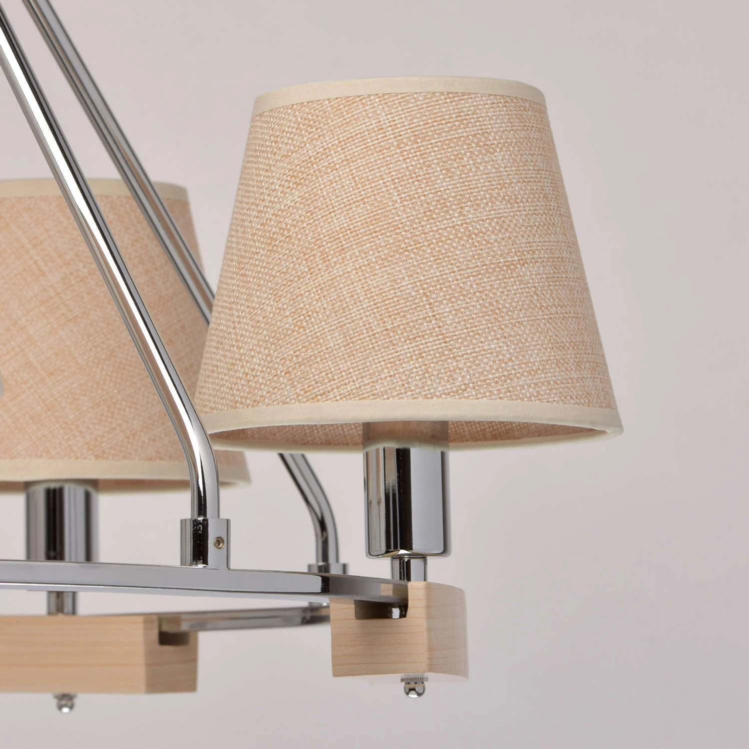 Люстра из коллекции «Форест» сочетает в себе тенденции двух популярных направлений: современного минимализма и трендовой эко-стилистики. Хромированное металлическое основание подчеркнуто декоративными вставками из мдф цвета светлого дерева. Под стать комп