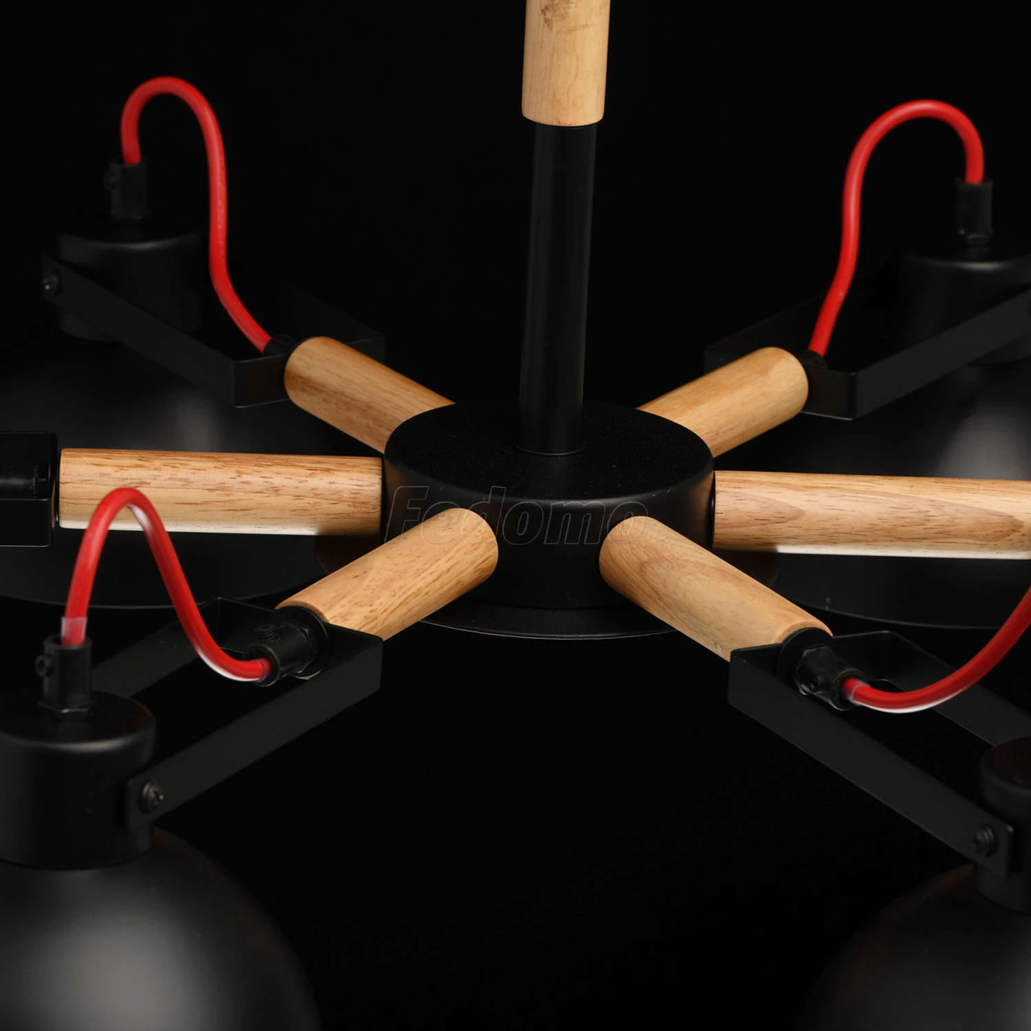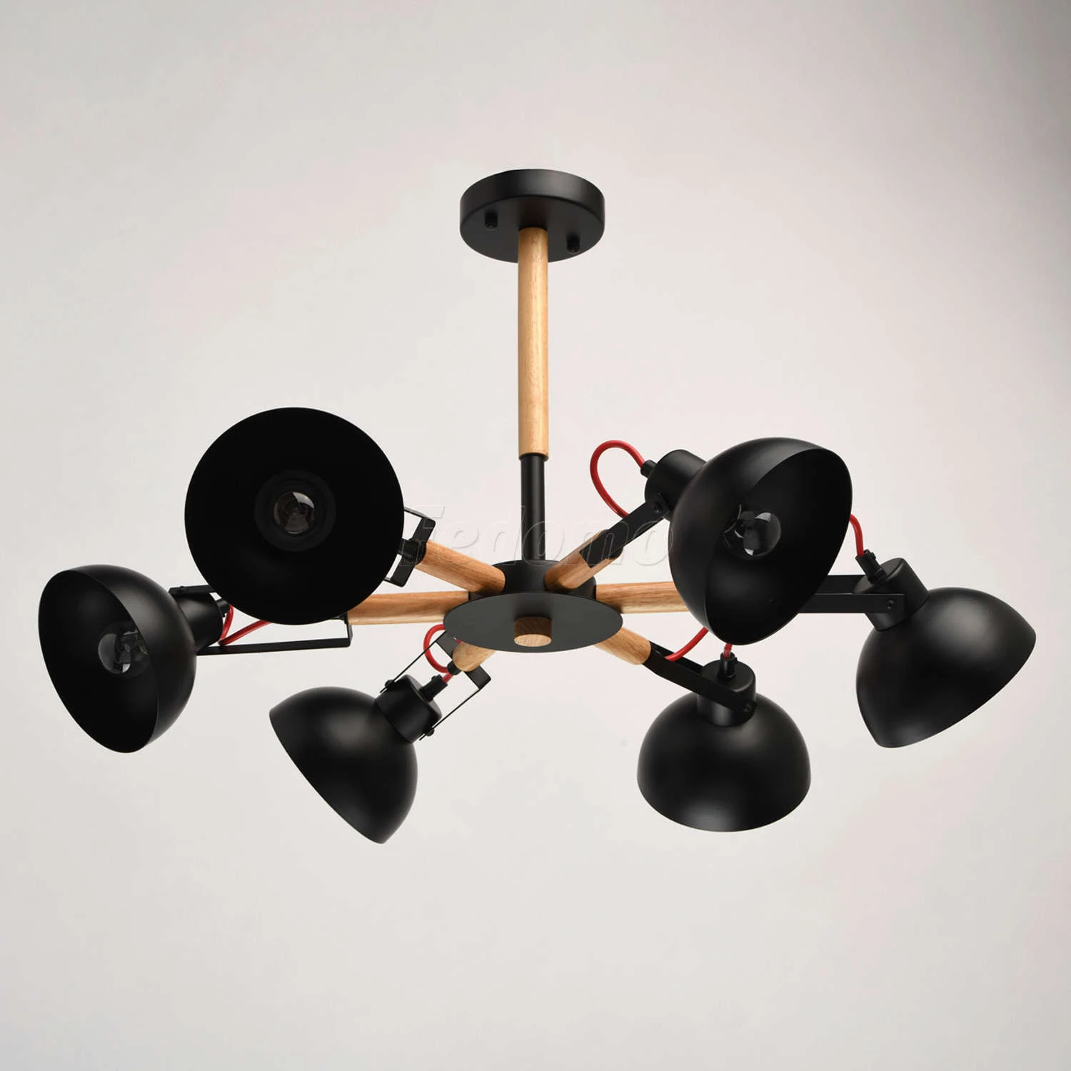 Эффектный дизайн люстры из коллекции «Форест» гармонично дополнит обстановку в стиле лофт, минимализм или аванград. Чёрное металлическое основание разбавлено декоративными вставками из натурального дерева гивеи и ярким акцентным шнуром красного оттенка. Ш