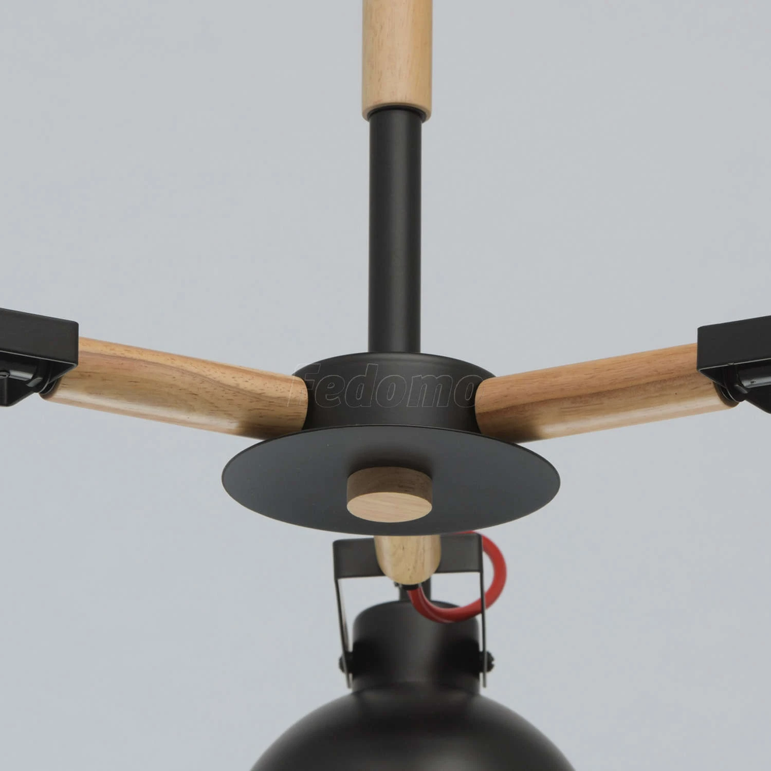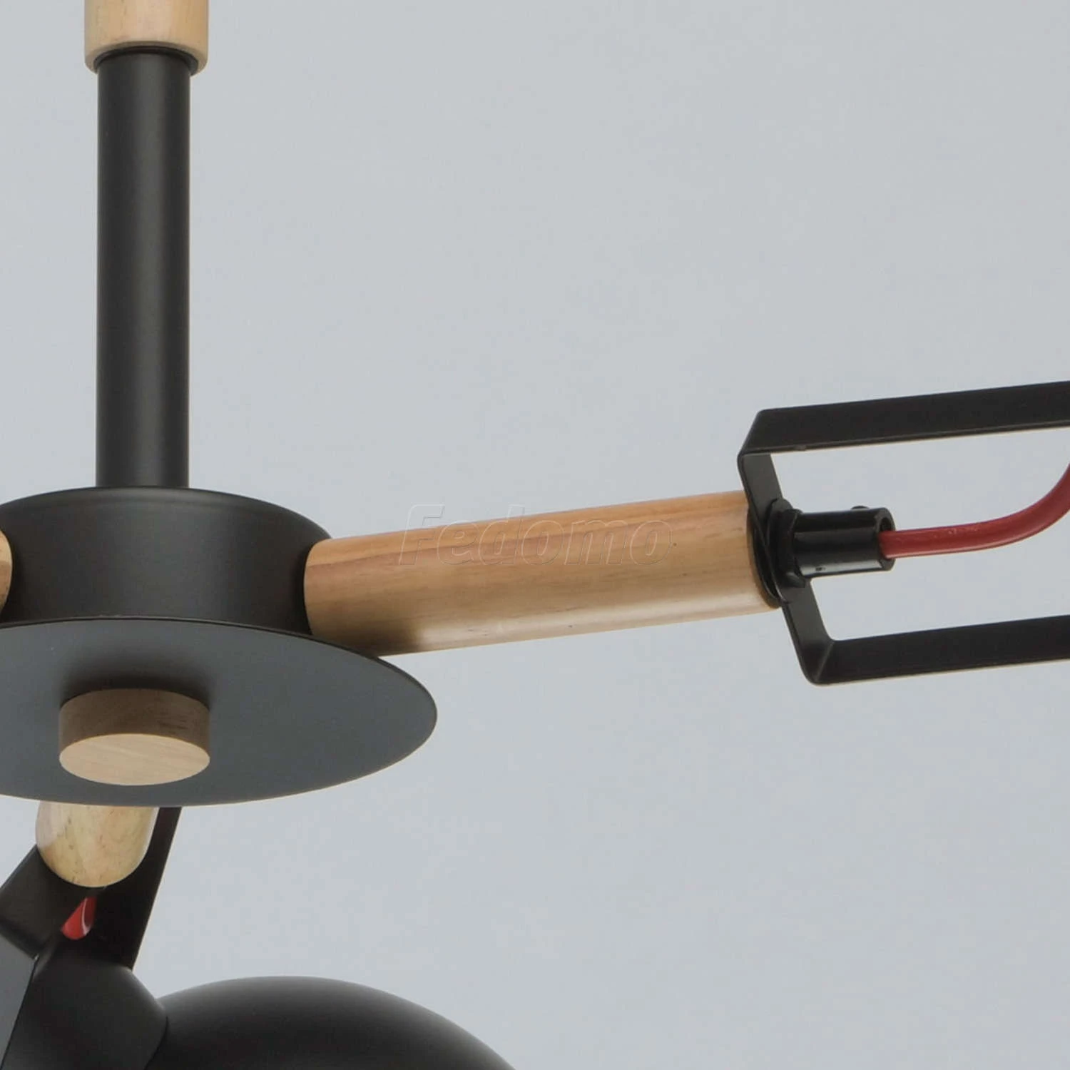 Эффектный дизайн люстры из коллекции «Форест» гармонично дополнит обстановку в стиле лофт, минимализм или аванград. Чёрное металлическое основание разбавлено декоративными вставками из натурального дерева гивеи и ярким акцентным шнуром красного оттенка. Ш