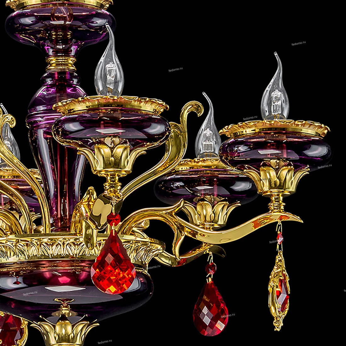 Люстра подвесная 695062 из серии Melagro от компании Osgona устанавливается на металлический крюк. Классическая люстра в виде подсвечника прекрасно подойдет в качестве источника основного света для гостиной, прихожей и коридора, кафе, кабинета, оформленных в стиле арт-деко, Яркий. Основной цвет модели - фиолетовый, материал арматуры - металл, стекло. Модель оснащена цоколем E14 (6xE14), имеет 6 лампочек с общей мощностью 360W и напряжением 220V. Светильник поддерживает подключение диммера. Габариты: диаметр - 690 мм. Лампочки в комплект не входят. Лучшая цена и условия доставки на Osgona 695062 в интернет-магазине Fedomo.ru.