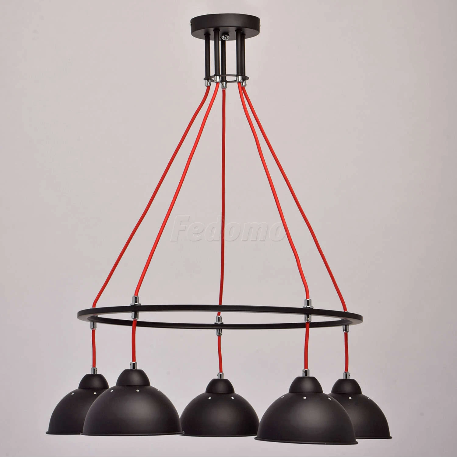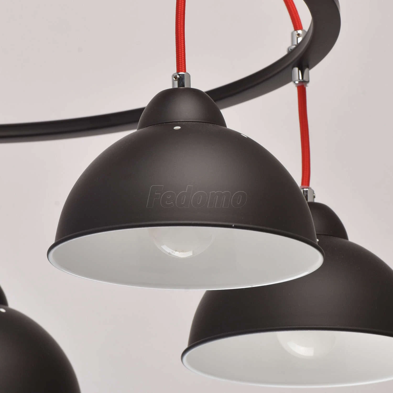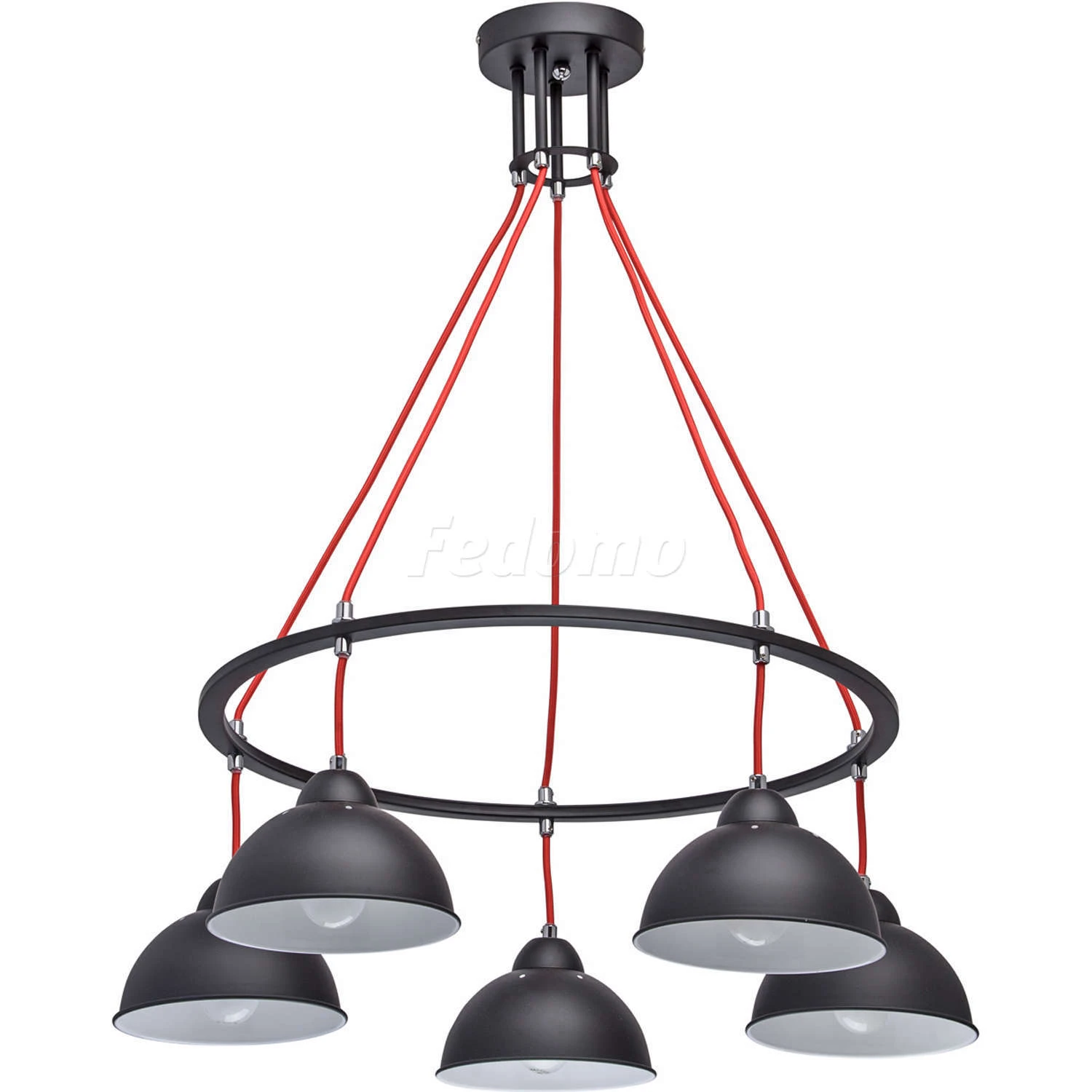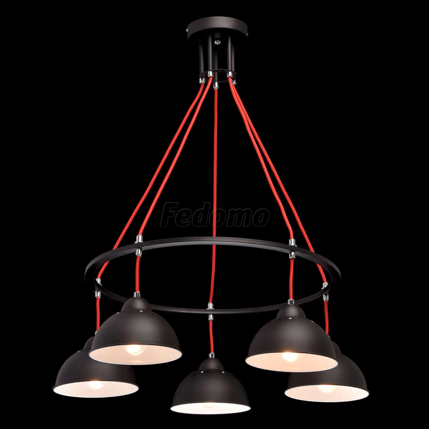 Люстра из коллекции \Формула" привлекает яркими сочетаниями и оригинальным воплощением. Металлическое основание и плафоны выполнены в классиечском чёрном оттенке. Тёмный тон разбавляют контрастные текситльные шнуры красного цвета - получается эффектный, н""