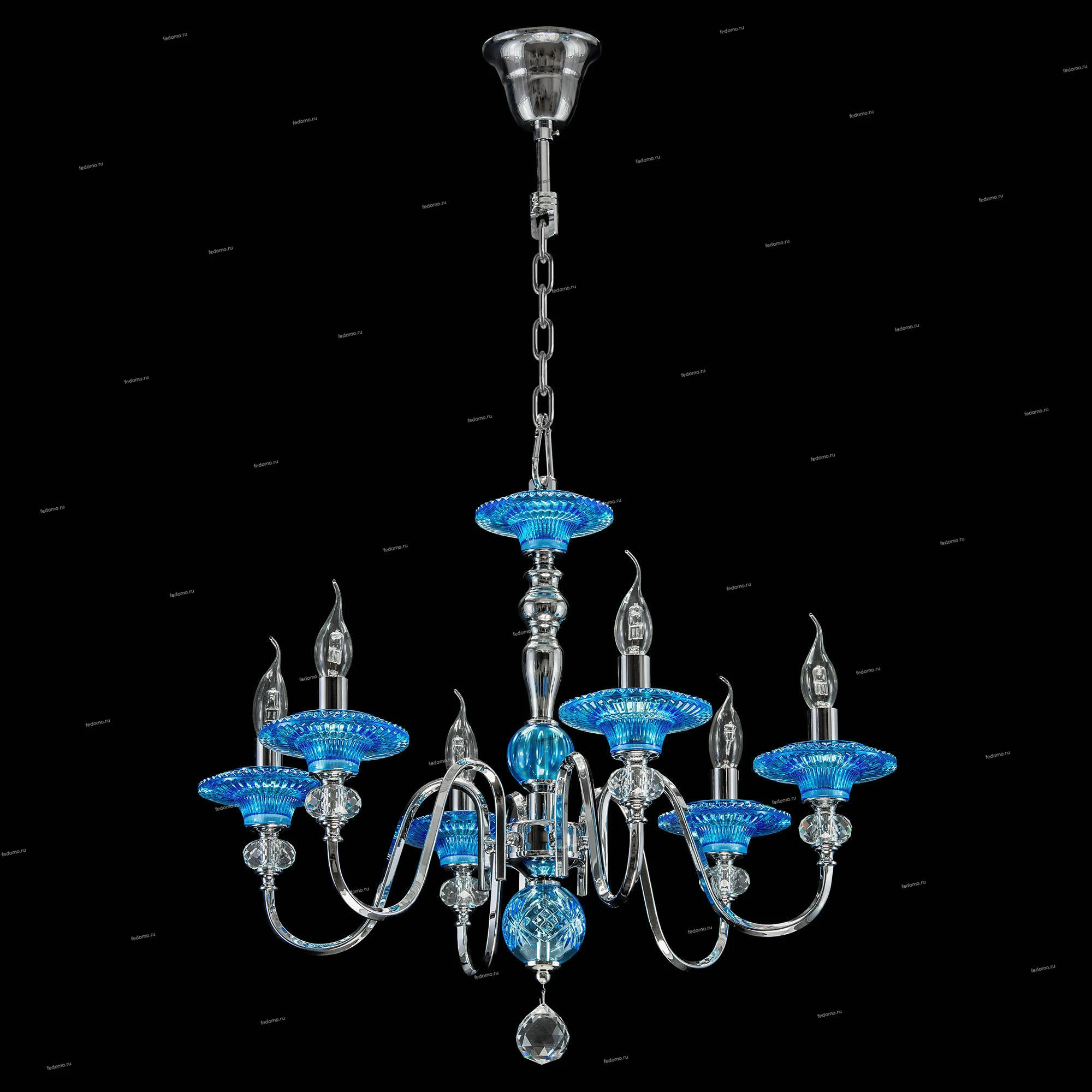 Люстра подвесная 699064 из серии AZZURRO от компании Osgona устанавливается на металлический крюк. Классическая люстра в виде подсвечника прекрасно подойдет в качестве источника основного света для гостиной, прихожей и коридора, кафе, кабинета, оформленных в стиле арт-деко, Яркий. Основной цвет модели - голубой, материал арматуры - металл, хрусталь. Модель оснащена цоколем E14 (6xE14), имеет 6 лампочек с общей мощностью 360W и напряжением 220V. Светильник поддерживает подключение диммера. Габариты: диаметр - 680 мм. Лампочки в комплект не входят. Лучшая цена и условия доставки на Osgona 699064 в интернет-магазине Fedomo.ru.