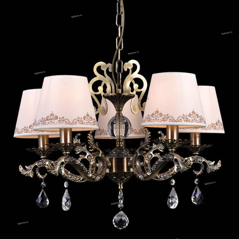 70012-5C ANTIQUE Люстра подвесная Natali Kovaltseva Calais, 5 плафонов, бронза с белым, коричневым и прозрачным