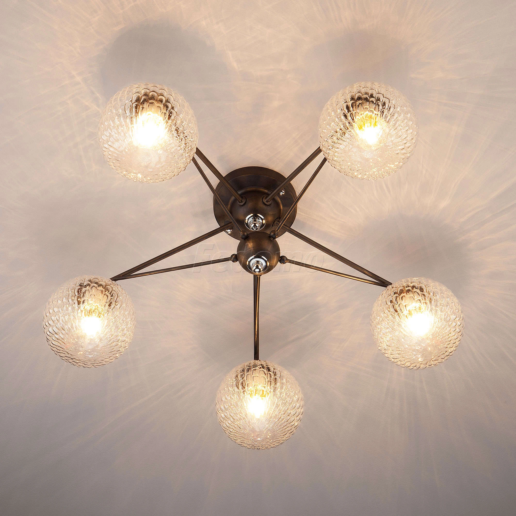 Люстра потолочная 70077/5 графит из серии Karo от компании Eurosvet устанавливается на монтажную пластину. Современная люстра прекрасно подойдет в качестве источника основного света для гостиной, кафе, кухни, кабинета, офиса, оформленных в стиле лофт. Основной цвет модели - серый, материал арматуры - металл. Люстра имеет 5 плафонов со свечением вниз, материал изготовления - глянцевое стекло. Модель оснащена цоколем E27 (5xE27), имеет 5 лампочек с общей мощностью 300W и напряжением 230V. Светильник поддерживает подключение диммера. Габариты: длина - 620 мм, ширина - 620 мм, высота - 220 мм. Лампочки в комплект не входят. Лучшая цена и условия доставки на Eurosvet 70077/5 графит в интернет-магазине Fedomo.ru.