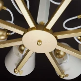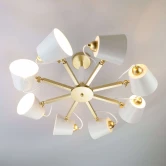 Люстра потолочная 70083/8 золото из серии Frozen от компании Eurosvet устанавливается на монтажную пластину. Современная люстра прекрасно подойдет в качестве источника основного света для гостиной, кафе, кухни, кабинета, офиса, оформленных в стиле лофт. Основной цвет модели - белый, материал арматуры - металл. Люстра имеет 8 абажуров с направленным вниз светом, материал изготовления - матовый металл. Модель оснащена цоколем E27 (8xE27), имеет 8 лампочек с общей мощностью 480W и напряжением 230V. Светильник поддерживает подключение диммера. Габариты: длина - 770 мм, ширина - 770 мм, высота - 340 мм. Лампочки в комплект не входят. Лучшая цена и условия доставки на Eurosvet 70083/8 золото в интернет-магазине Fedomo.ru.
