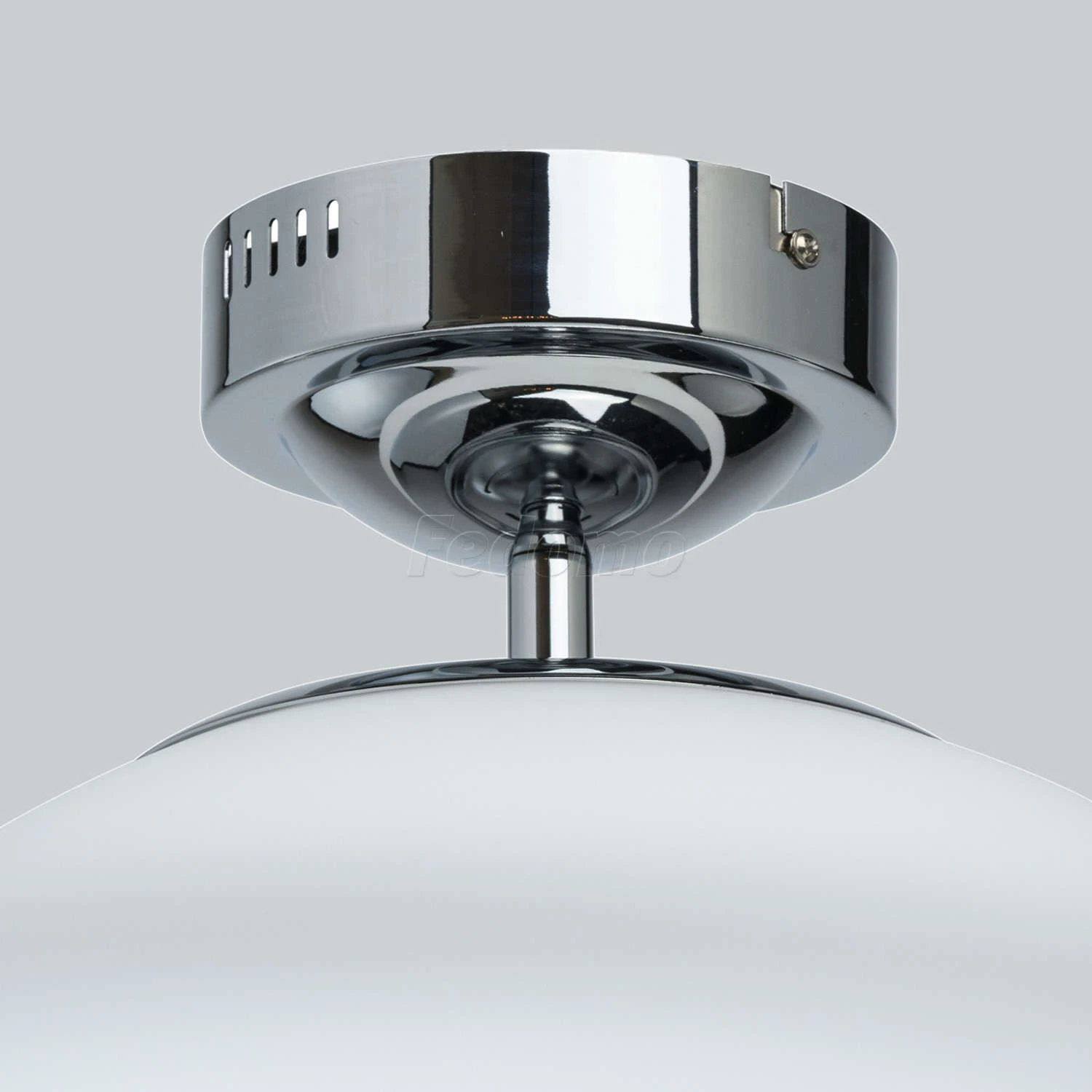 Минималистичный светильник из коллекции «Эрида» выполнен в космической стилистике. Хромированное металлическое основание создает гармоничный дуэт с закрытым плафоном из матового стекла освежающего белого оттенка. Помимо этого, модель прекрасно оснащена те