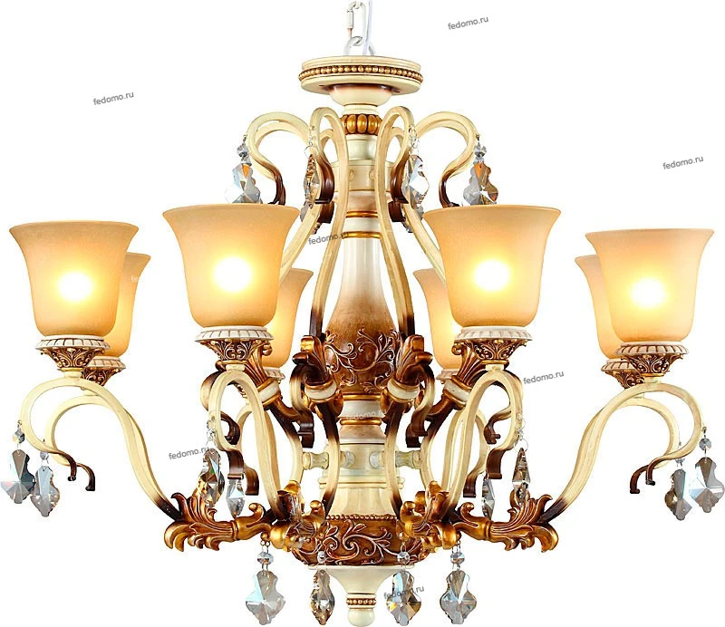 Люстра подвесная 708-08-02 ivory + amber из серии 708 от компании N-Light устанавливается на металлический крюк. Классическая люстра прекрасно подойдет в качестве источника основного света для гостиной, прихожей и коридора, кафе, кабинета, оформленных в стиле арт-деко. Основной цвет модели - бежевый, материал арматуры - металл. Люстра имеет 8 плафонов со свечением вверх, материал изготовления - стекло. Модель оснащена цоколем E27 (8хE27), имеет 8 лампочек с общей мощностью 480W и напряжением 220V. Светильник поддерживает подключение диммера. Габариты: высота - 630 мм. Лампочки в комплект не входят. Лучшая цена и условия доставки на N-Light 708-08-02 ivory + amber в интернет-магазине Fedomo.ru.